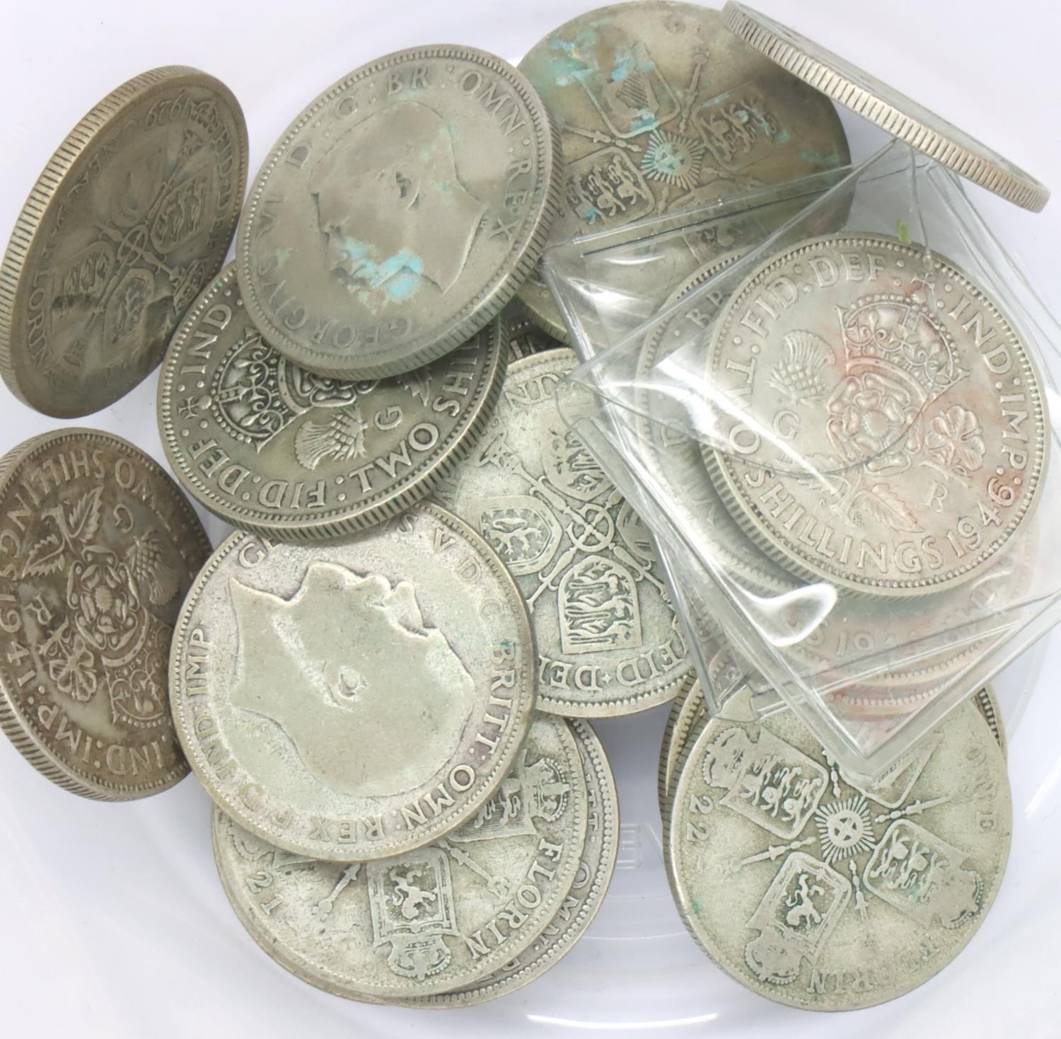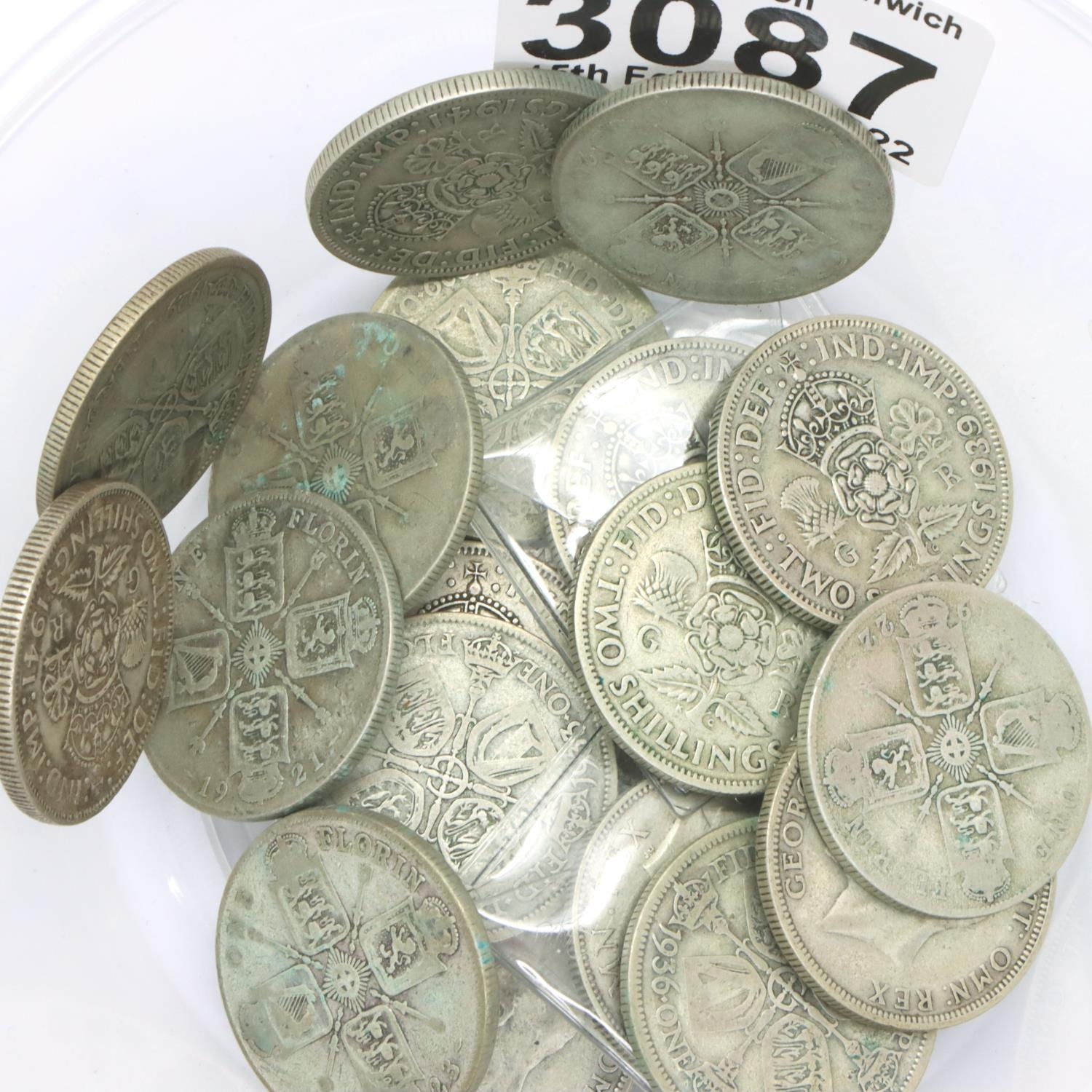 Twenty mixed pre 1947 florins. P&P Group 1 (£14+VAT for the first lot and £1+VAT for subsequent lots)