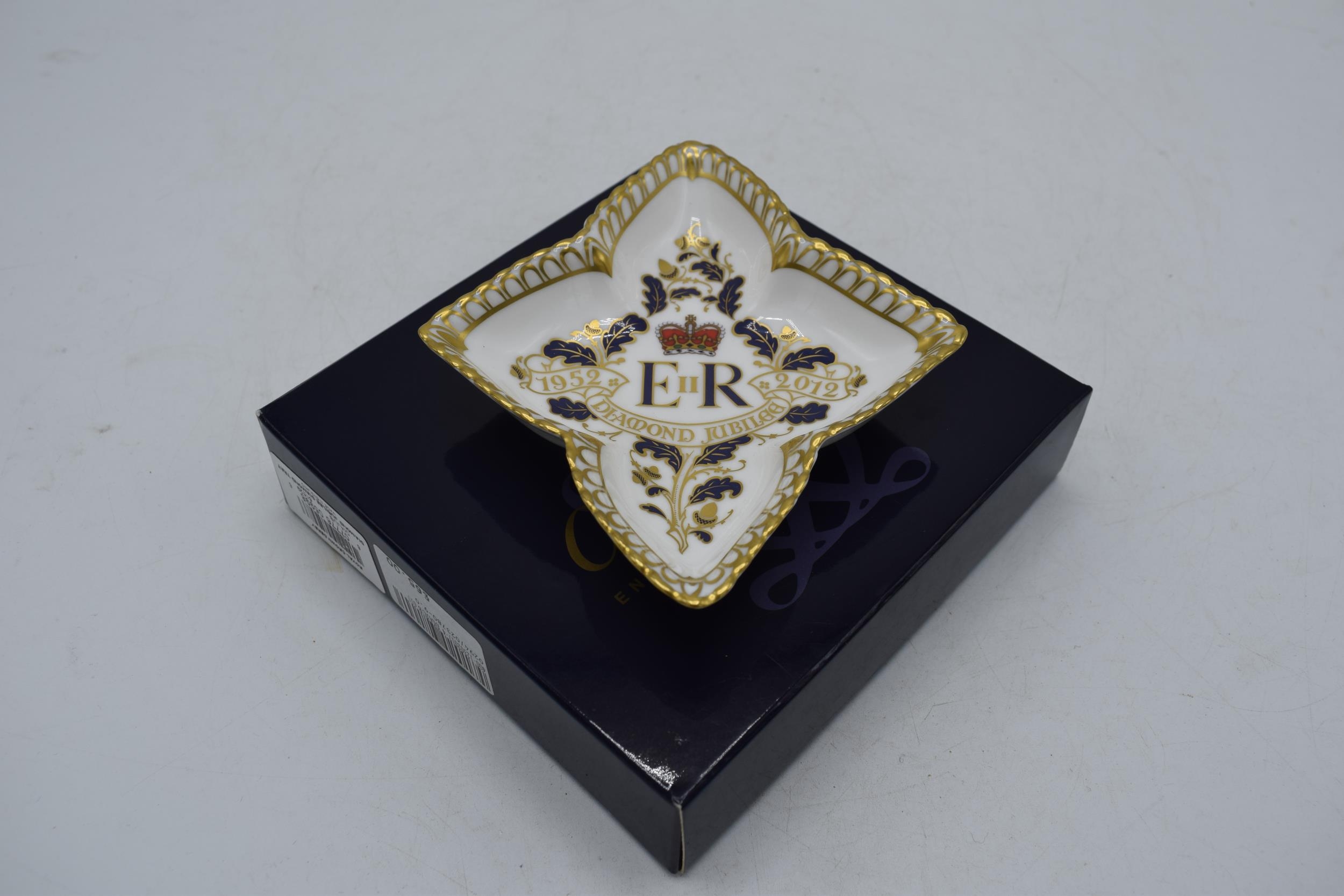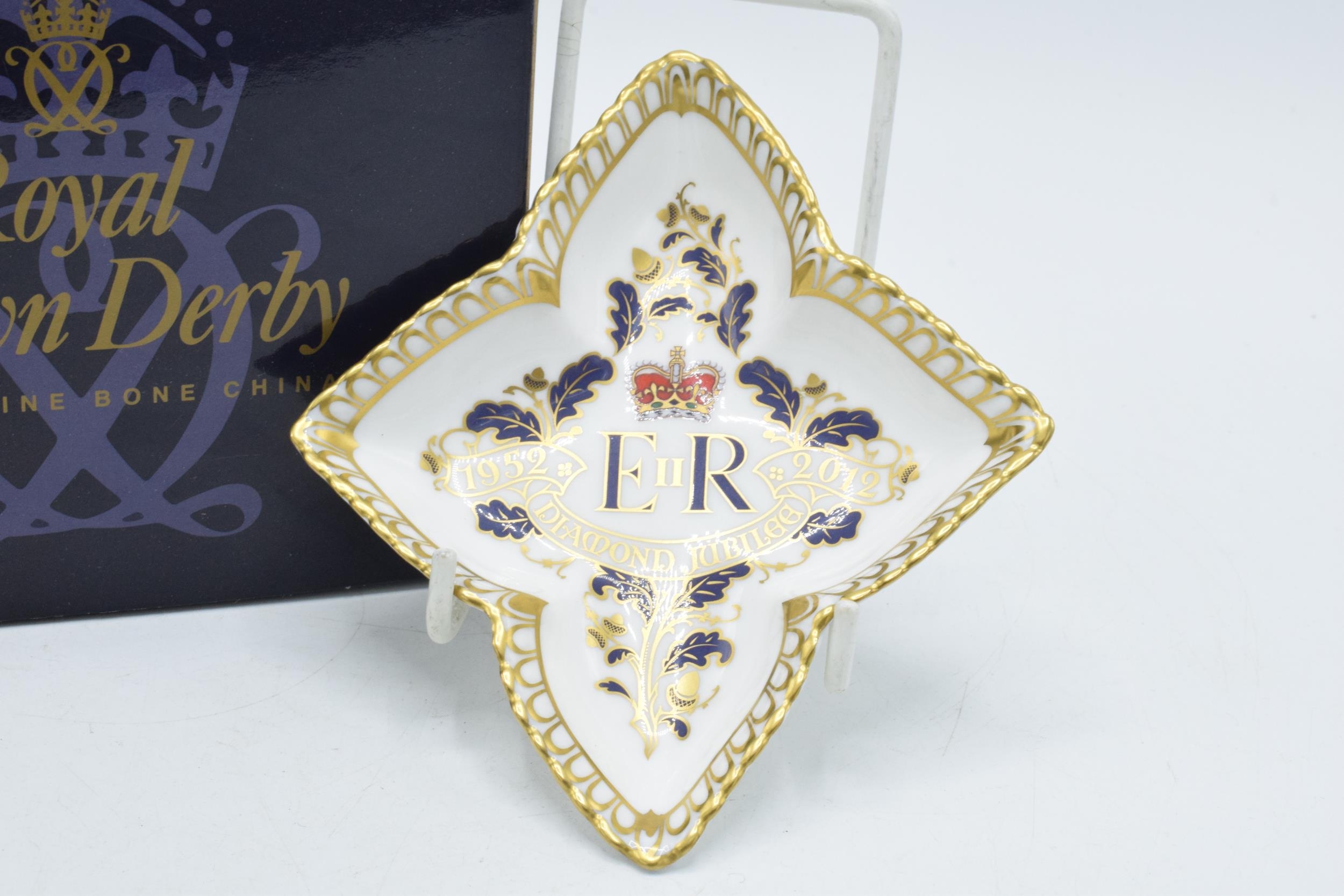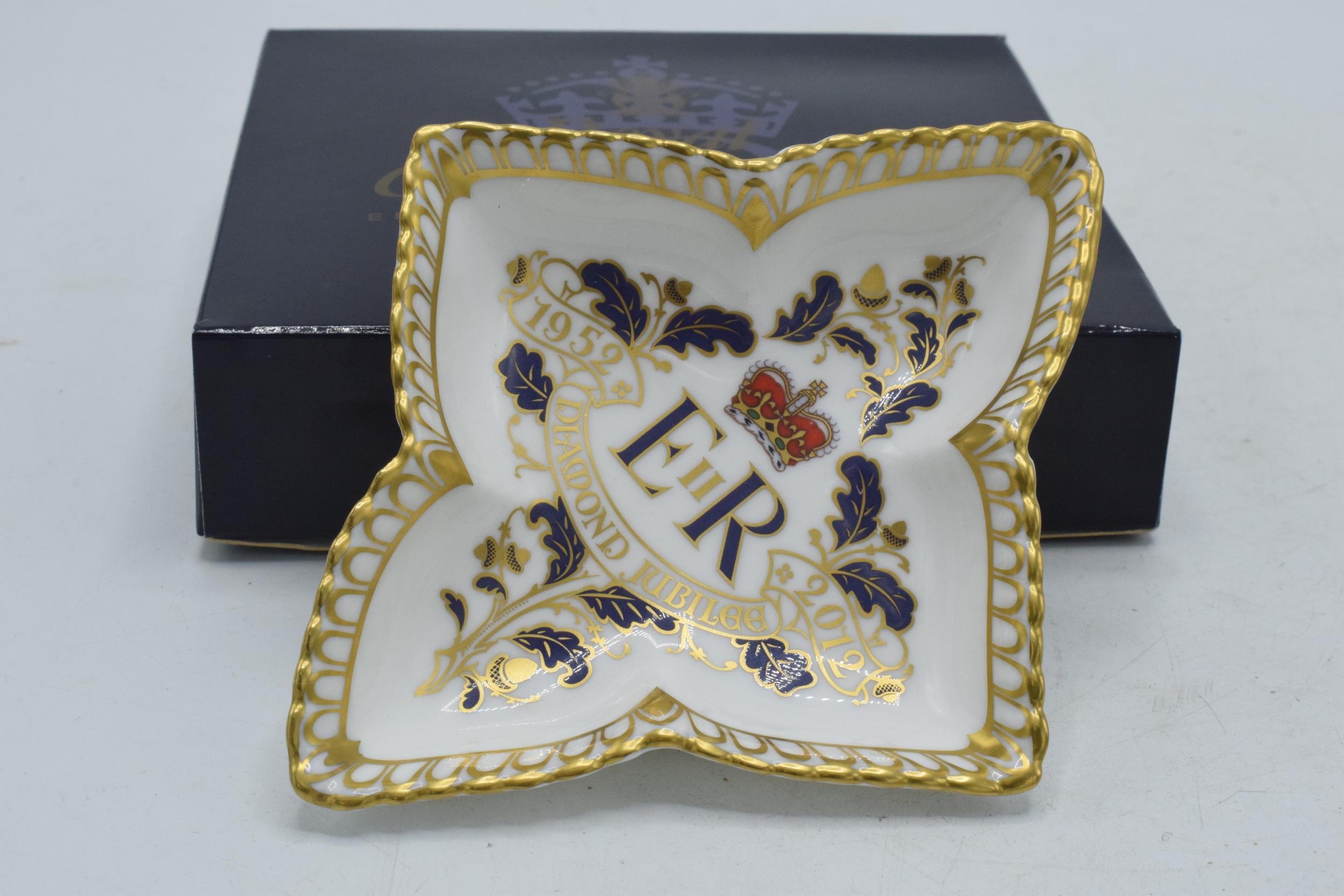 Royal Crown Derby star shaped pin tray decorated to celebrate the Diamond Jubilee of H. M. Queen Elizabeth II (1952-2012), boxed.