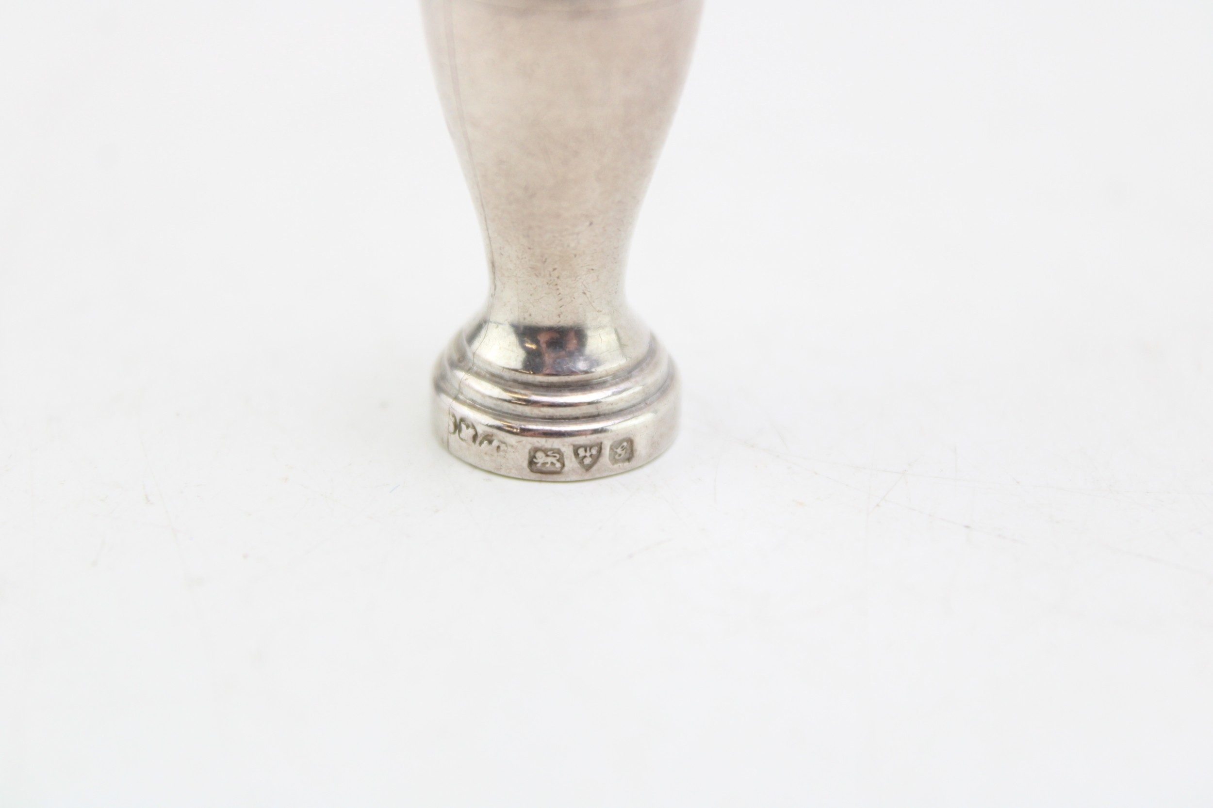 A silver seal, of simple baluster form with the letter 'M' to the plate, Sampson Mordan & Co Ltd, Chester 1907, 35.2mm high, 5.8g, 0.19toz.