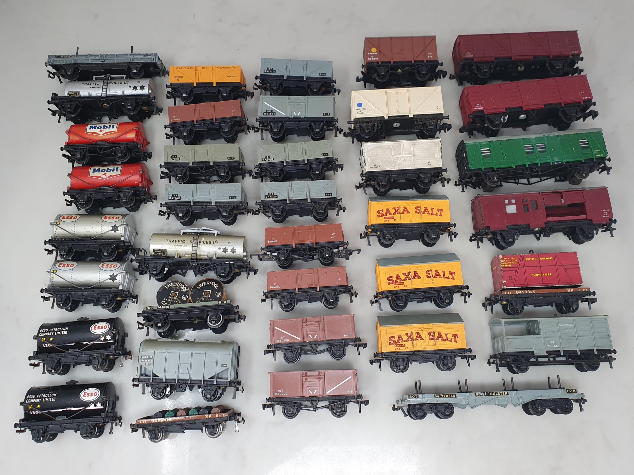 Thirty six unboxed Hornby Dublo 2-rail Wagons including 2x 4656 brown mineral, 2x 4680, condition varies