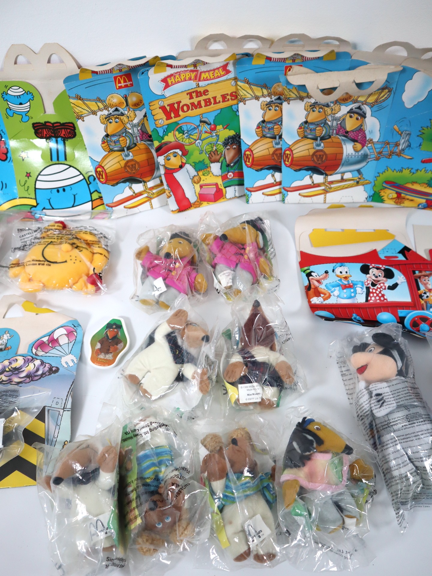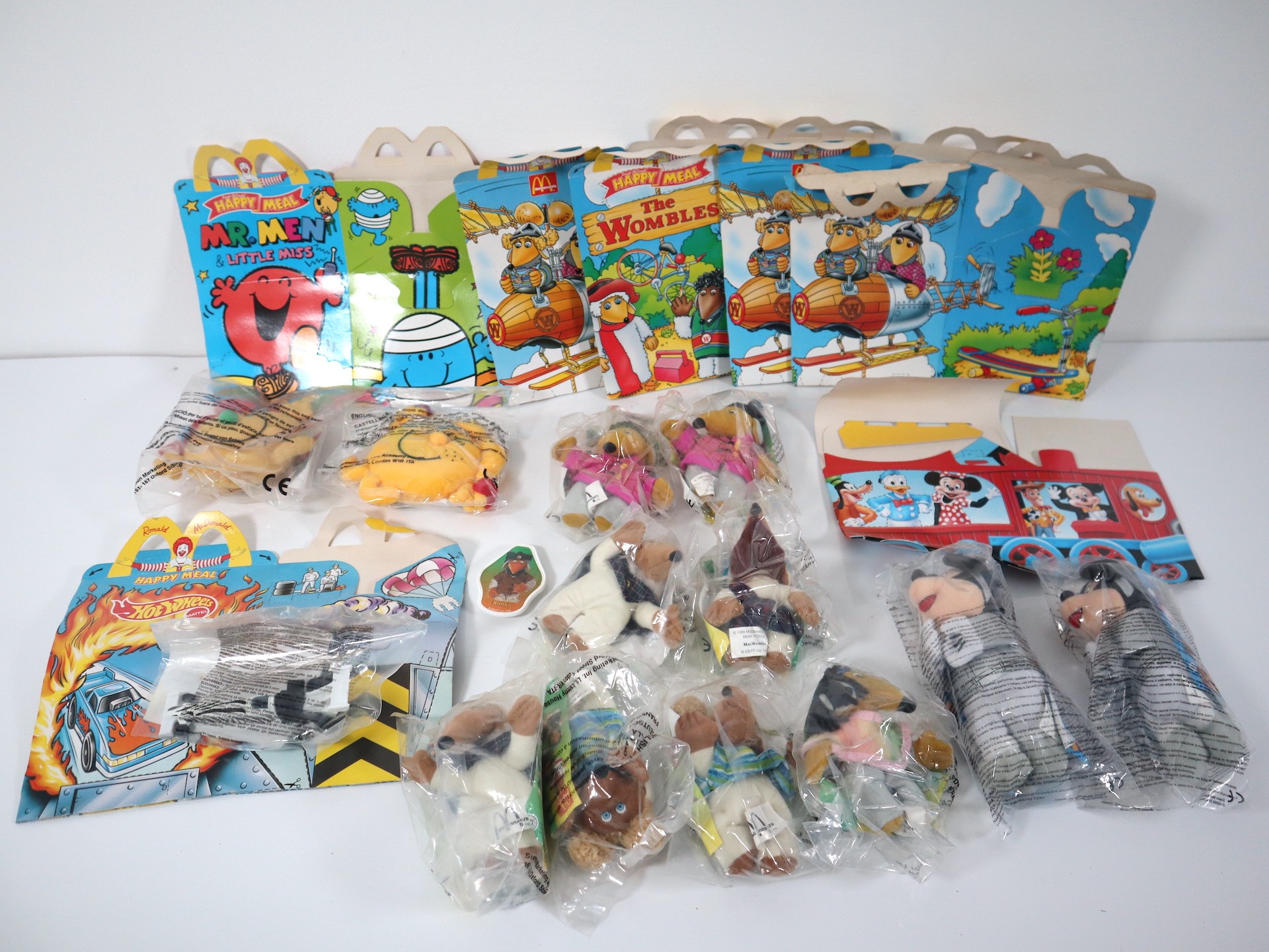 Collection of 1990's Sealed McDonalds Happy Meal Toys including original Happy Meal Boxes - mr Men, The Wombles, Hotwheels & Disney