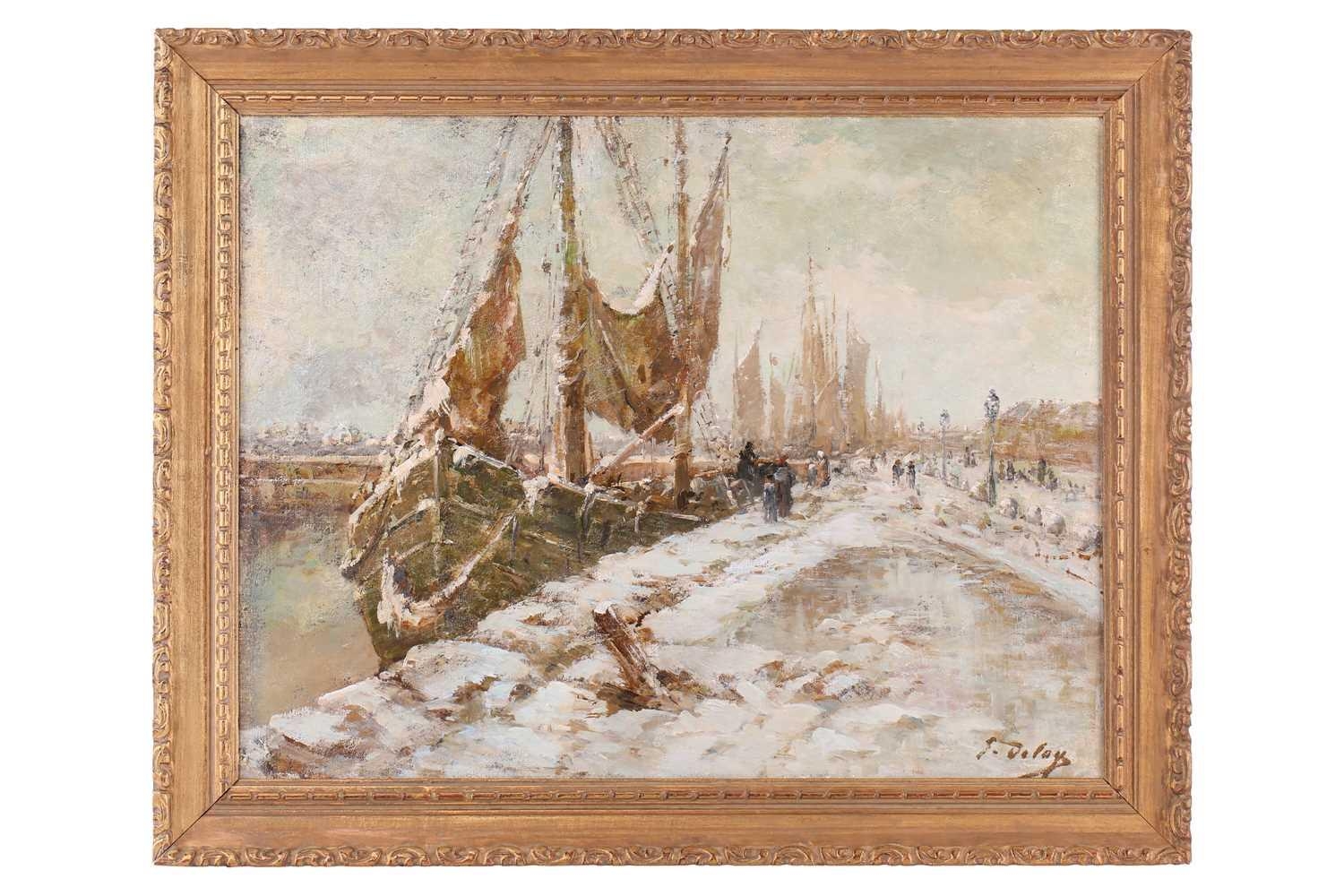 Georges Deloy (1856 - ?) French, Winter harbour scene (possibly Nice), signed, oil on canvas, 50 x 65 cm, framed 62 x 76.5 cm By family descent from the artist.