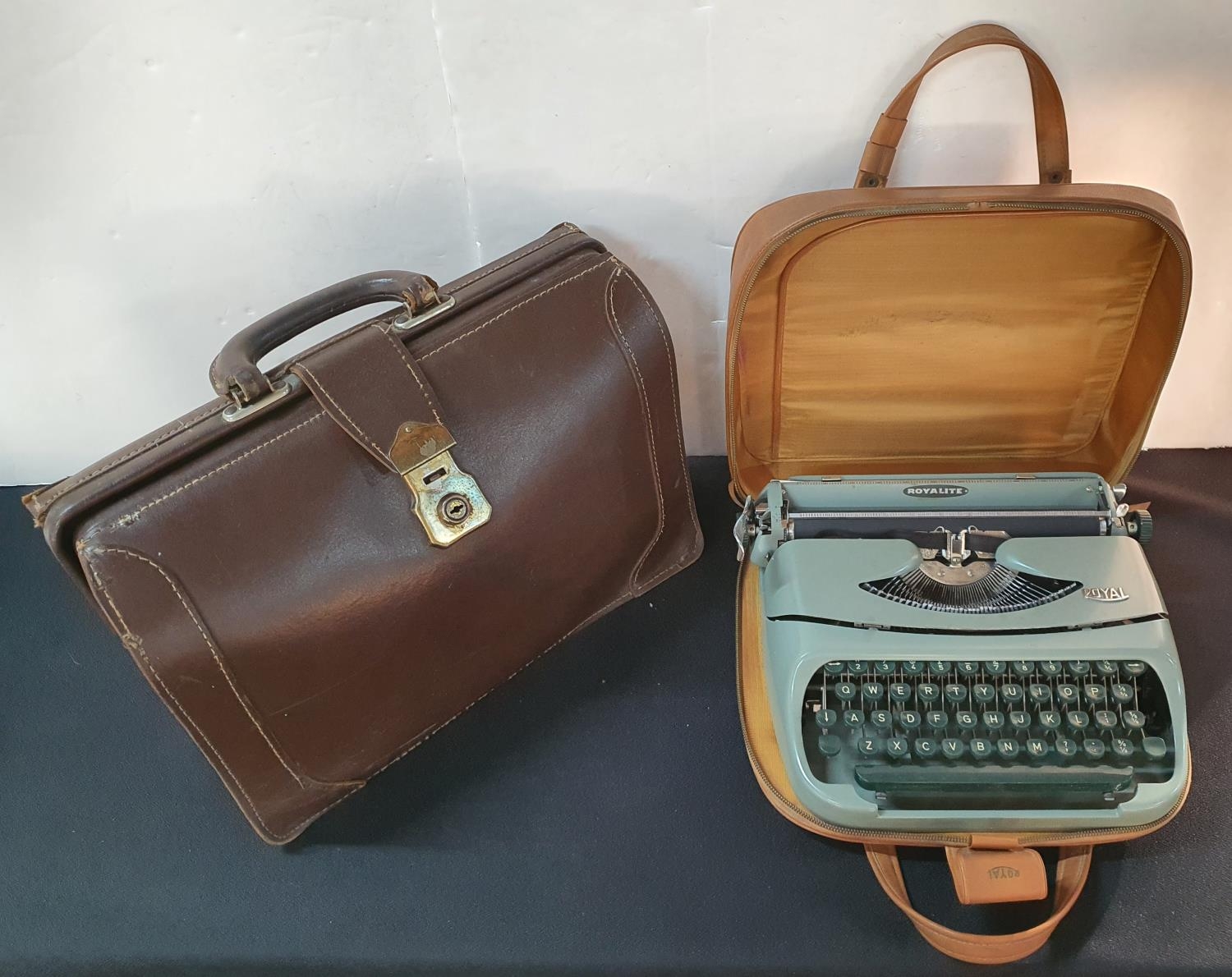Royalite portable typewriter in original case together with a vintage briefcase (2)