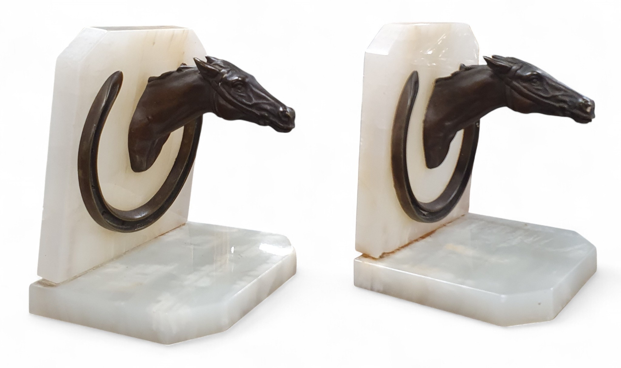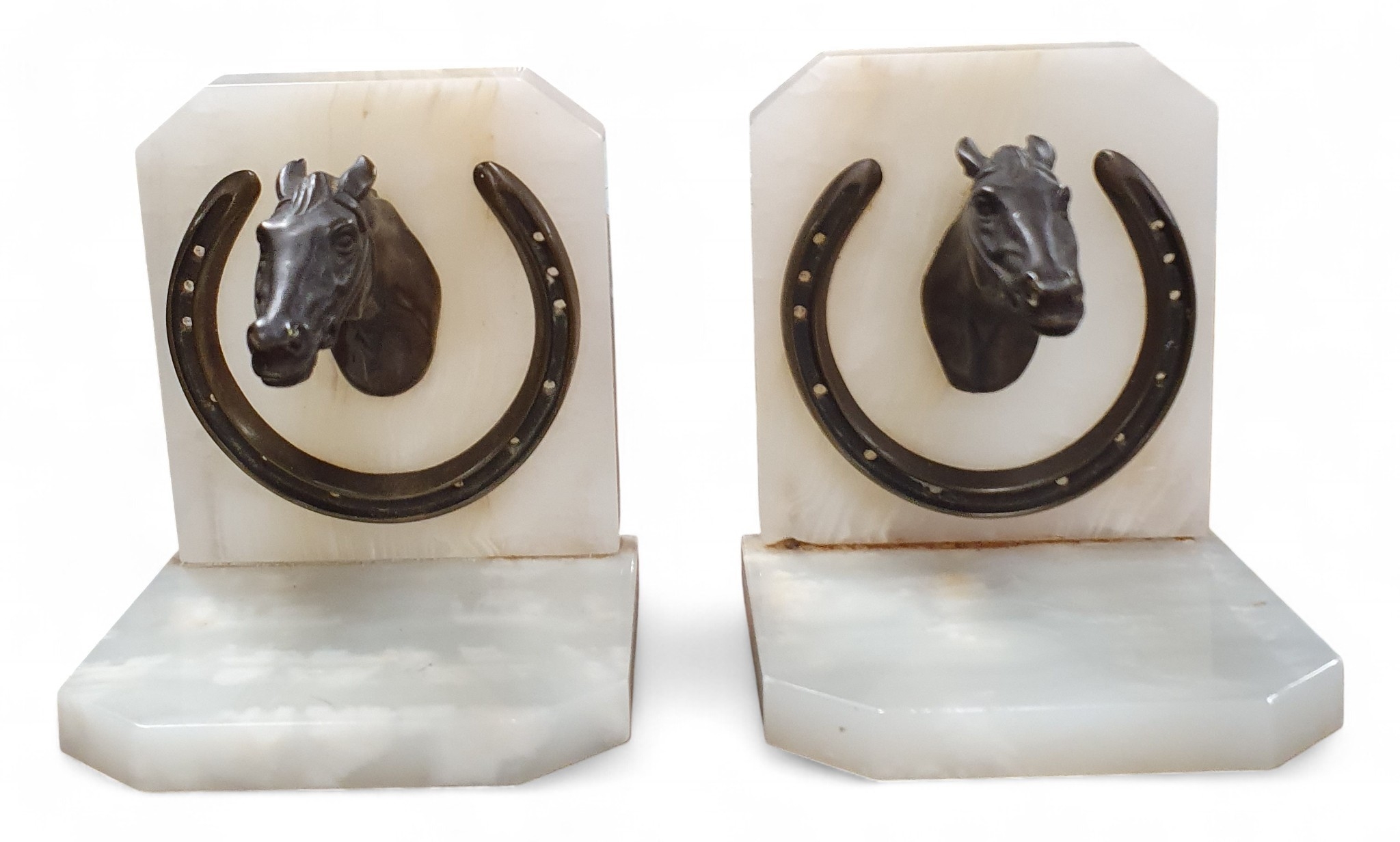A good pair of Marble and Bronze equestrian Bookends.