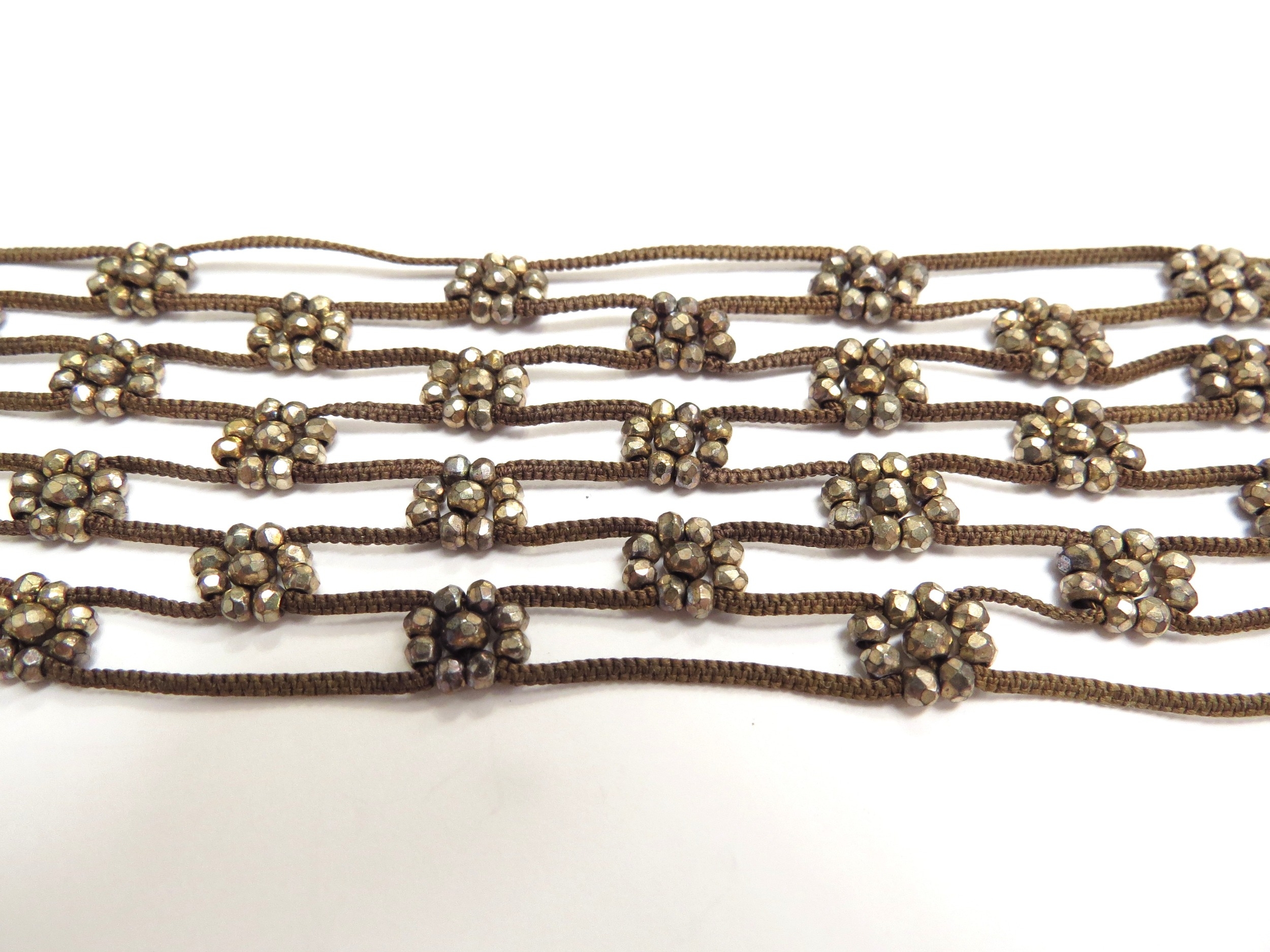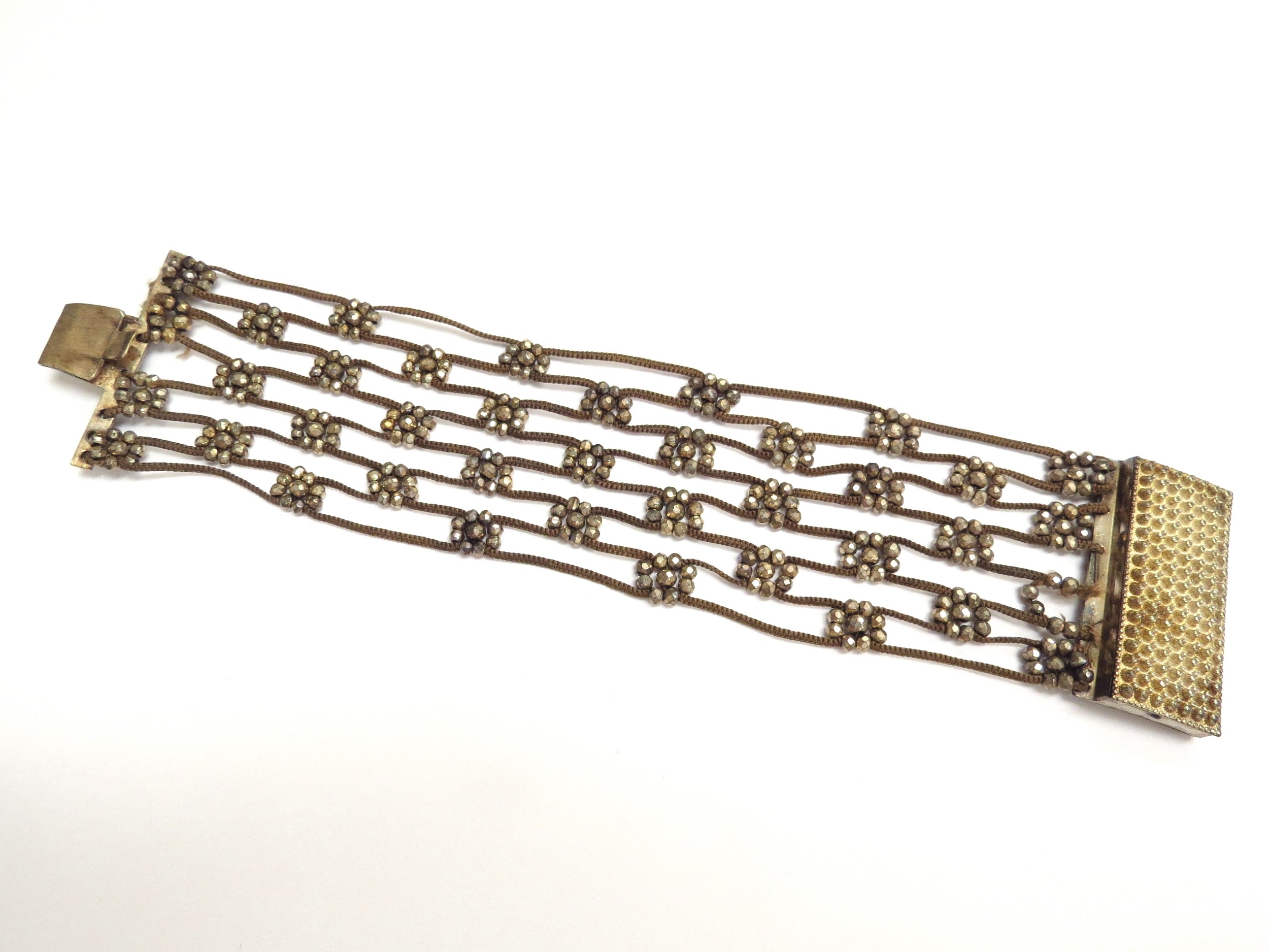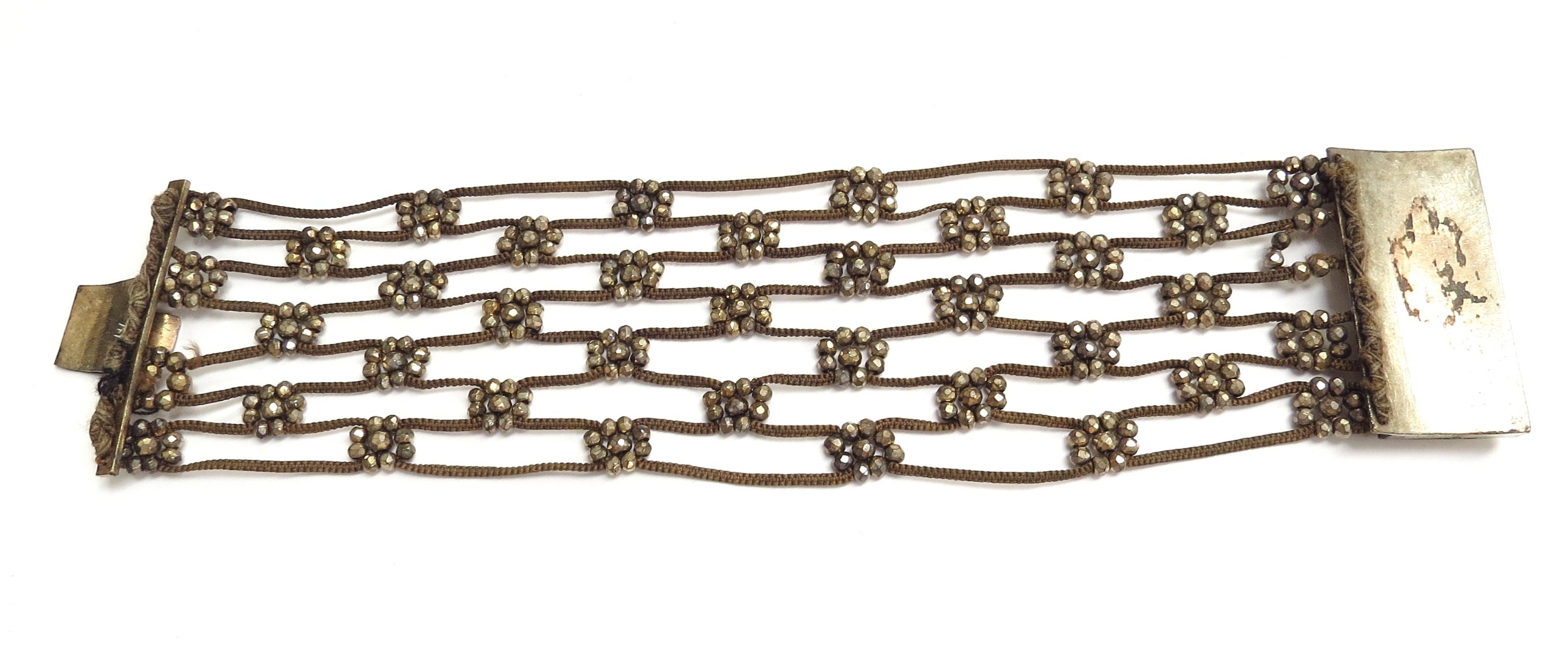 A Memorial bracelet made from finely woven hair and steel cut beads, 16.5cm long
