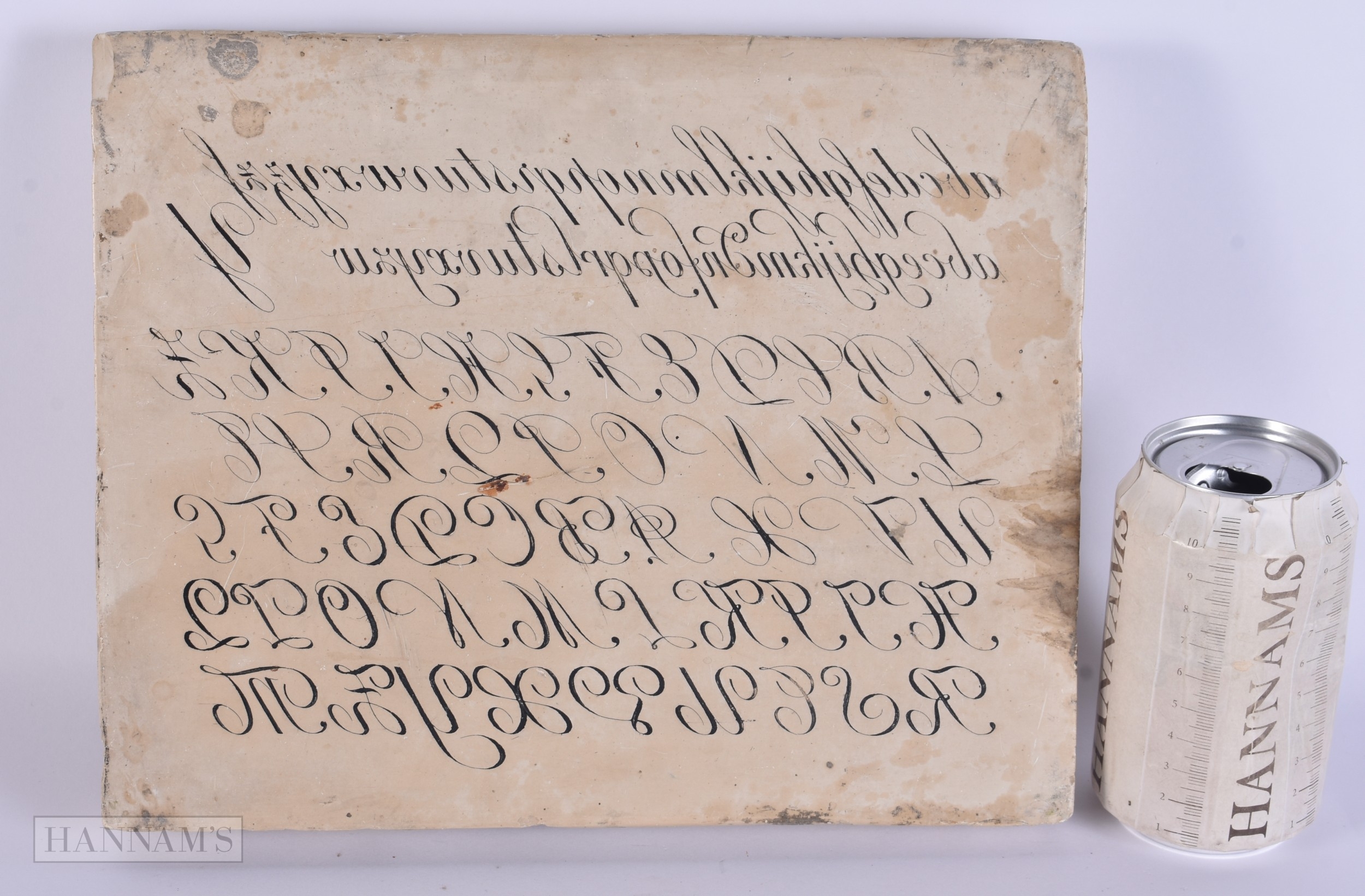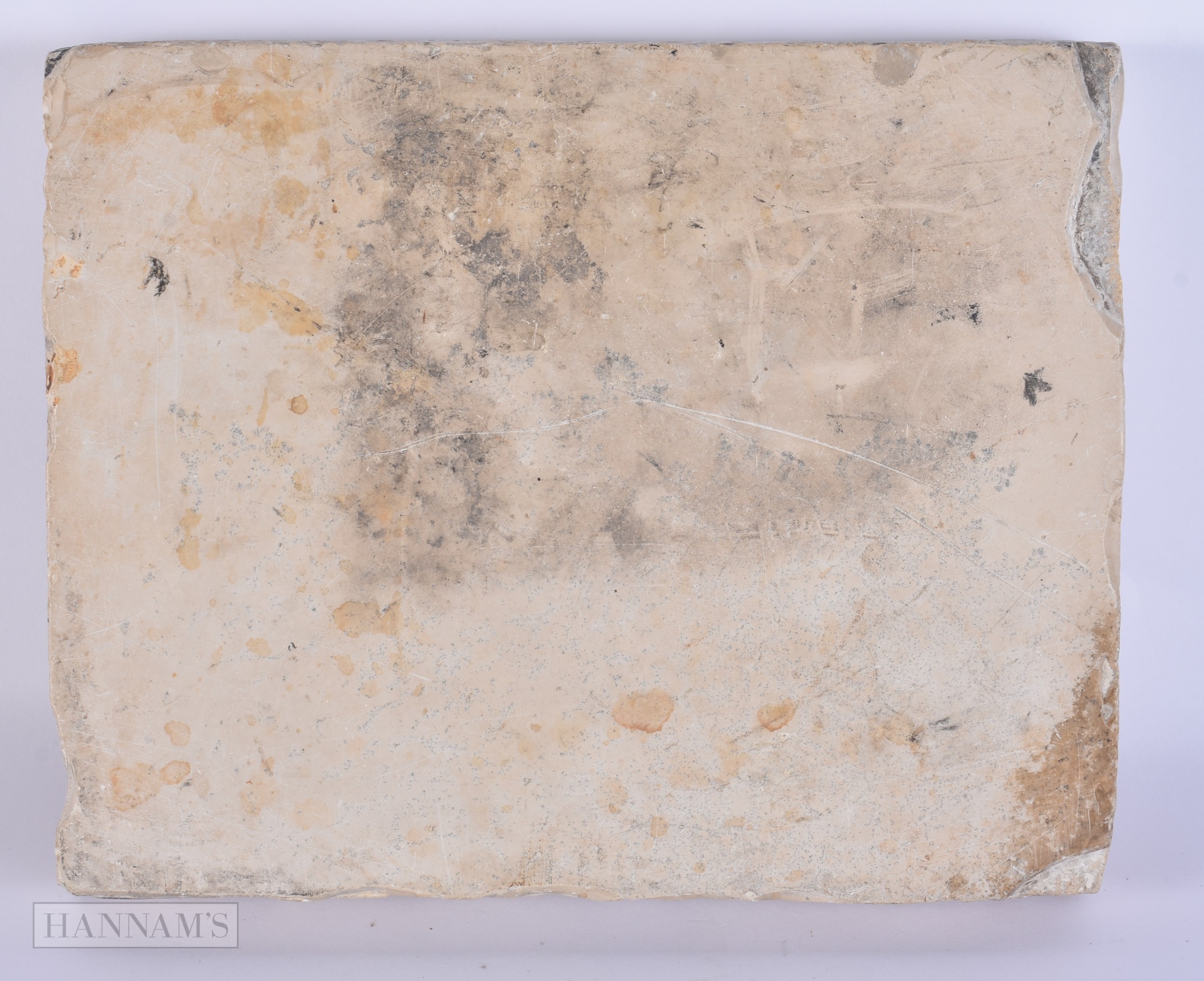 AN UNUSUAL 19TH CENTURY CARVED STONE CALLIGRAPHY BLOCK. 27.5 cm x 22 cm.