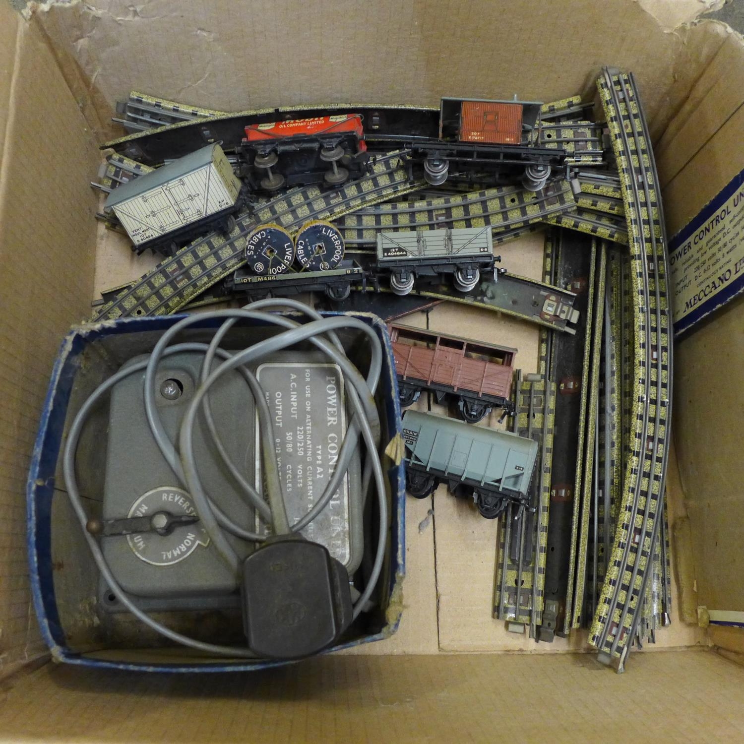 Tin-plate Hornby Dublo model rail, track and power control