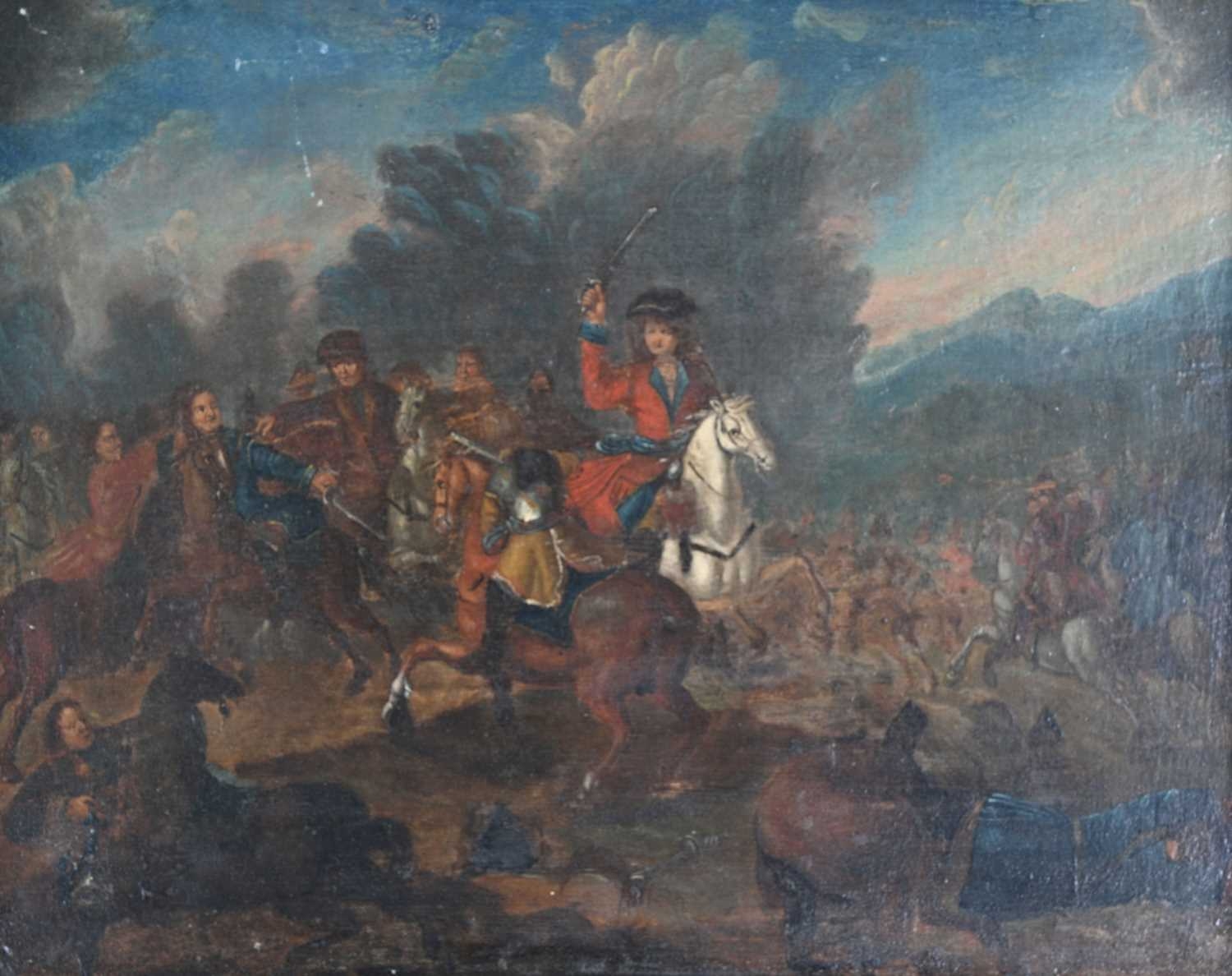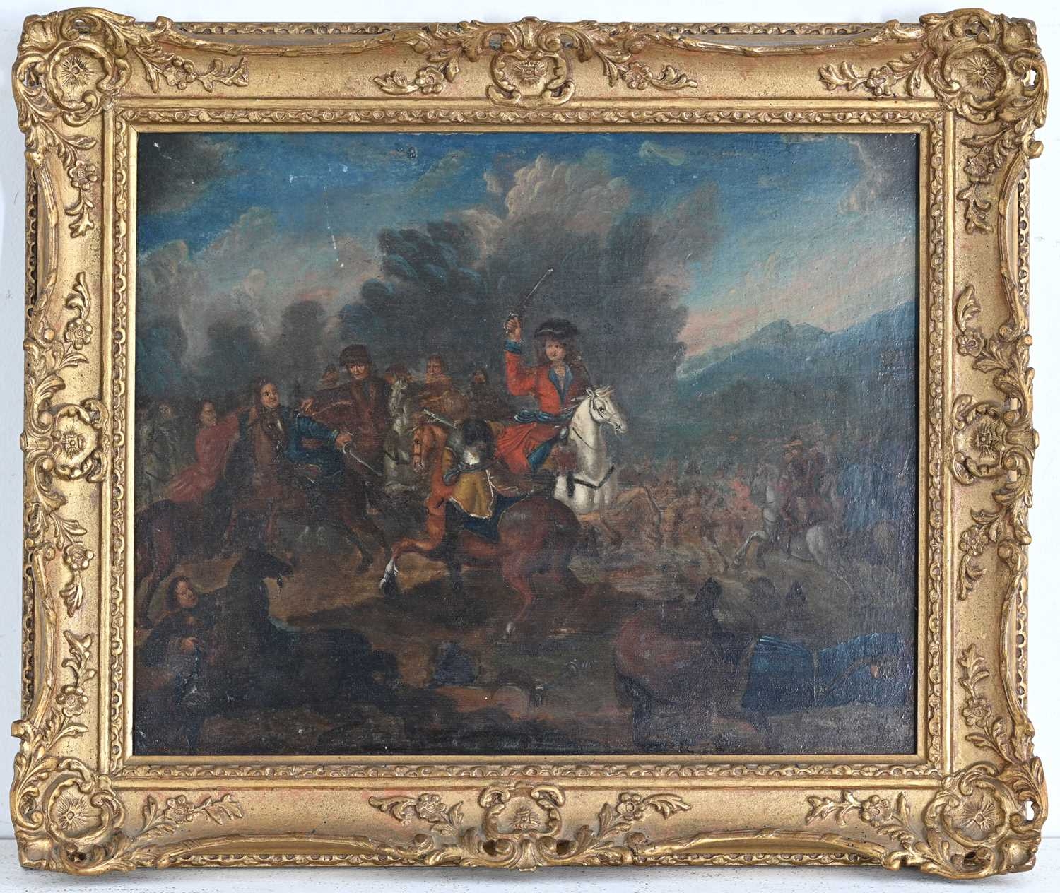 Dutch School, 18th Century, Battle Scene with Cavalry, oil on panel, 26 by 33cn, gilt frame