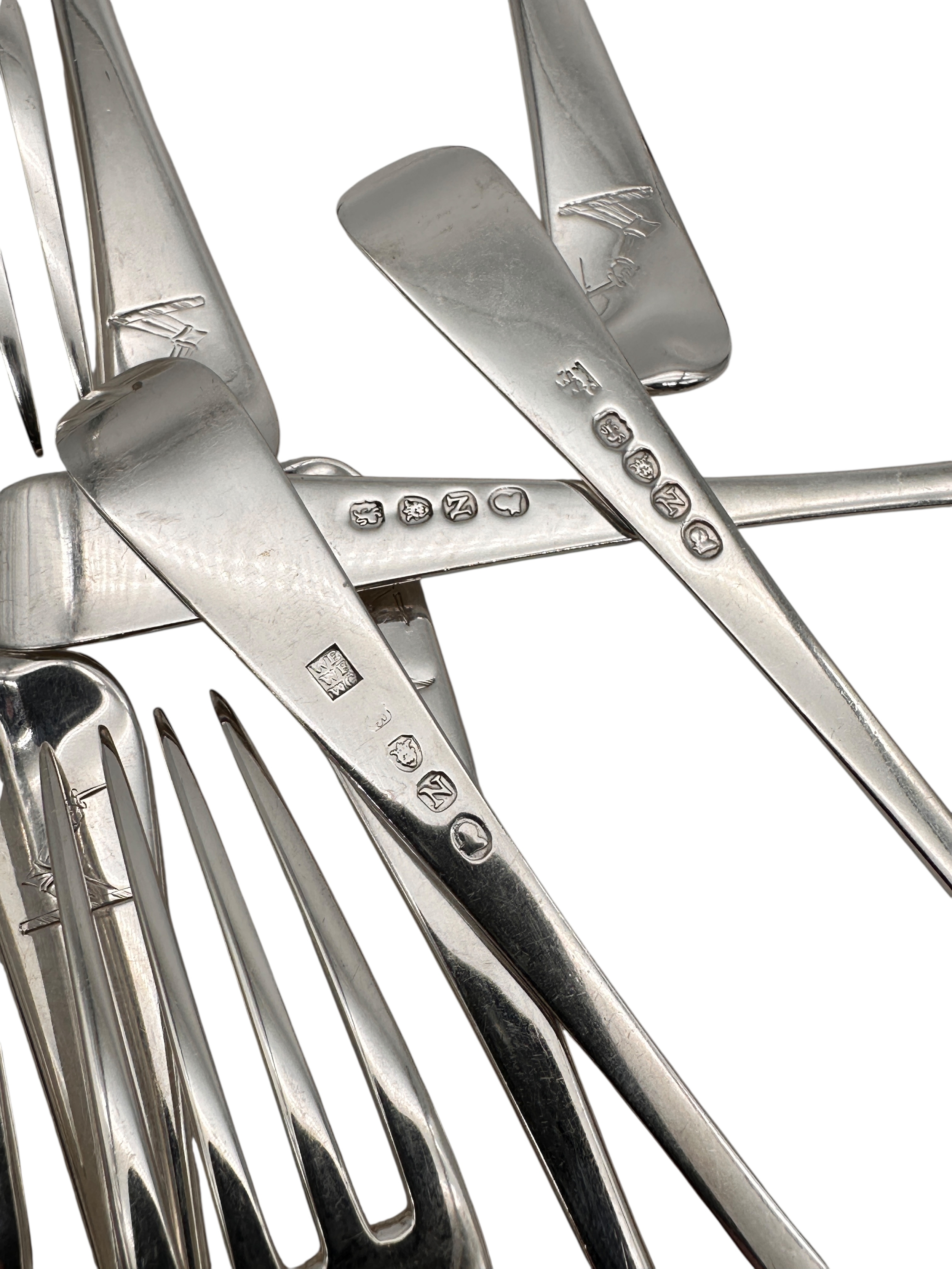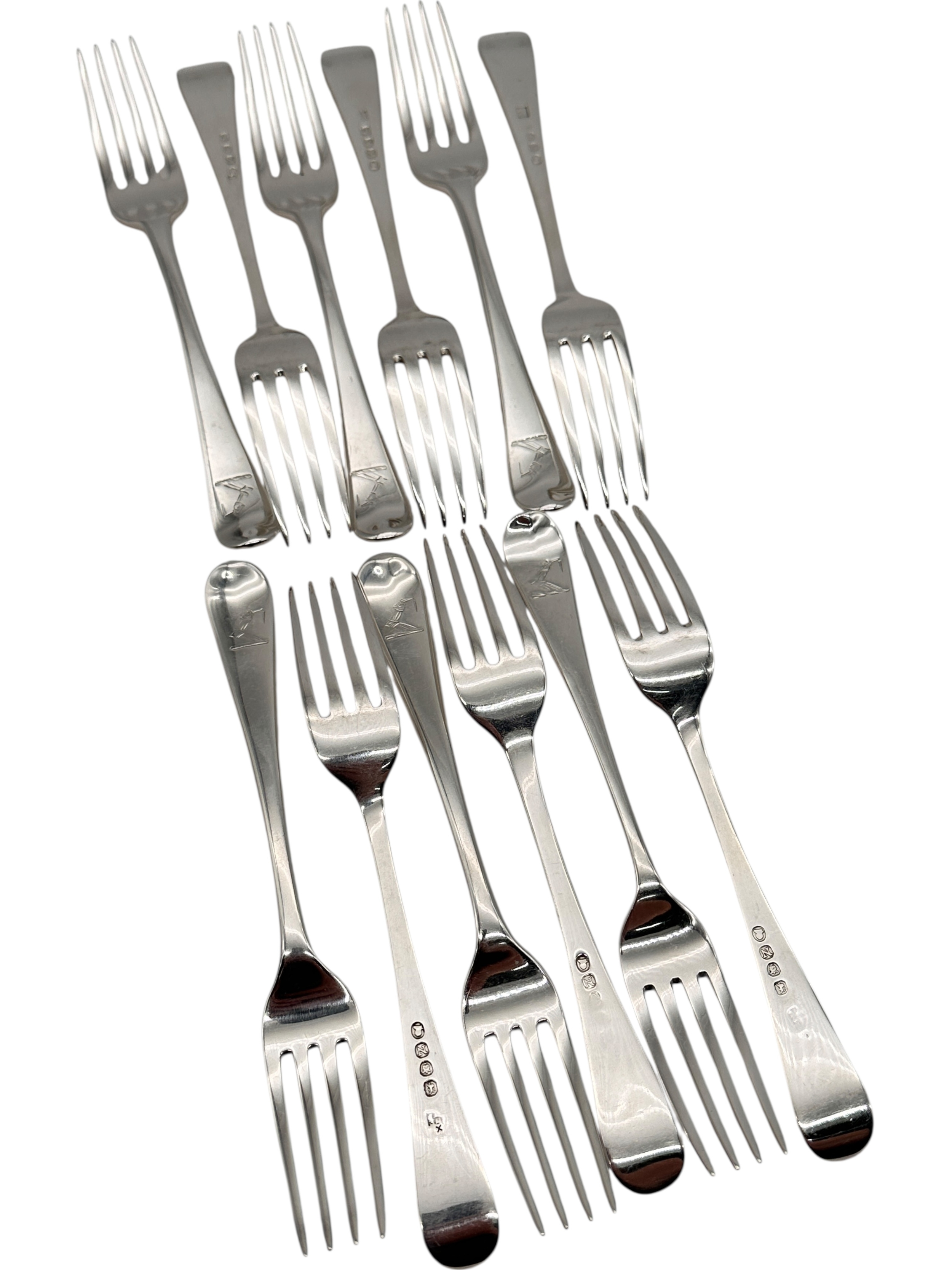 Set of Twelve Georgian Hallmarked Silver Dessert Forks. London 1808. 430g