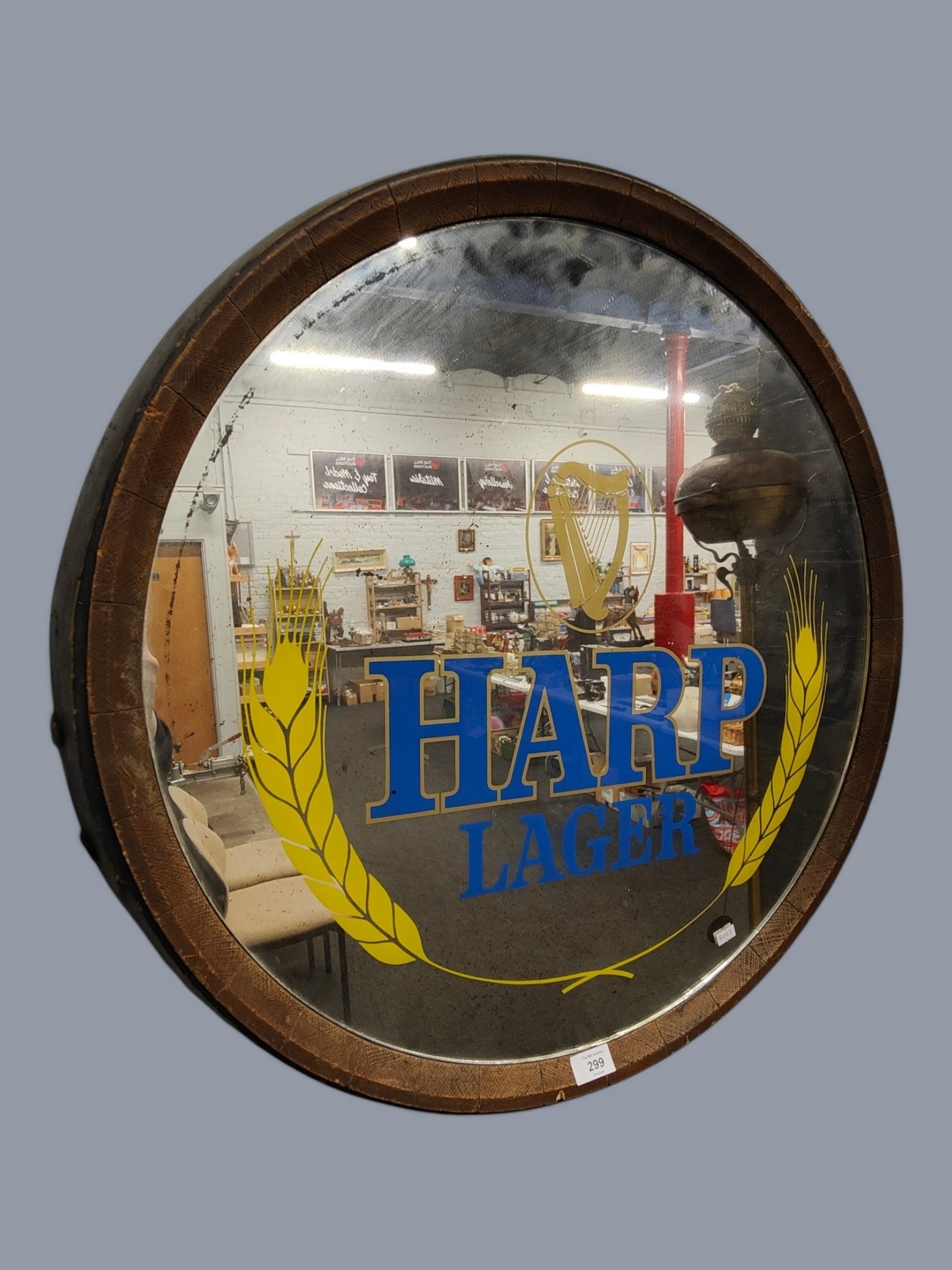 LARGE VINTAGE CIRCULAR HARP LAGER PUB MIRROR 72CM