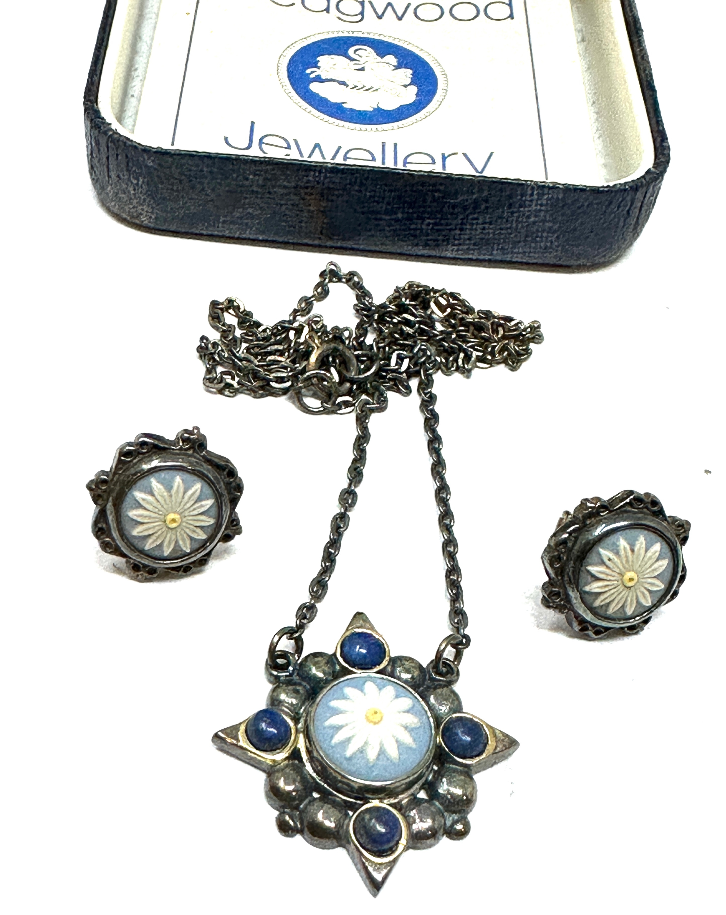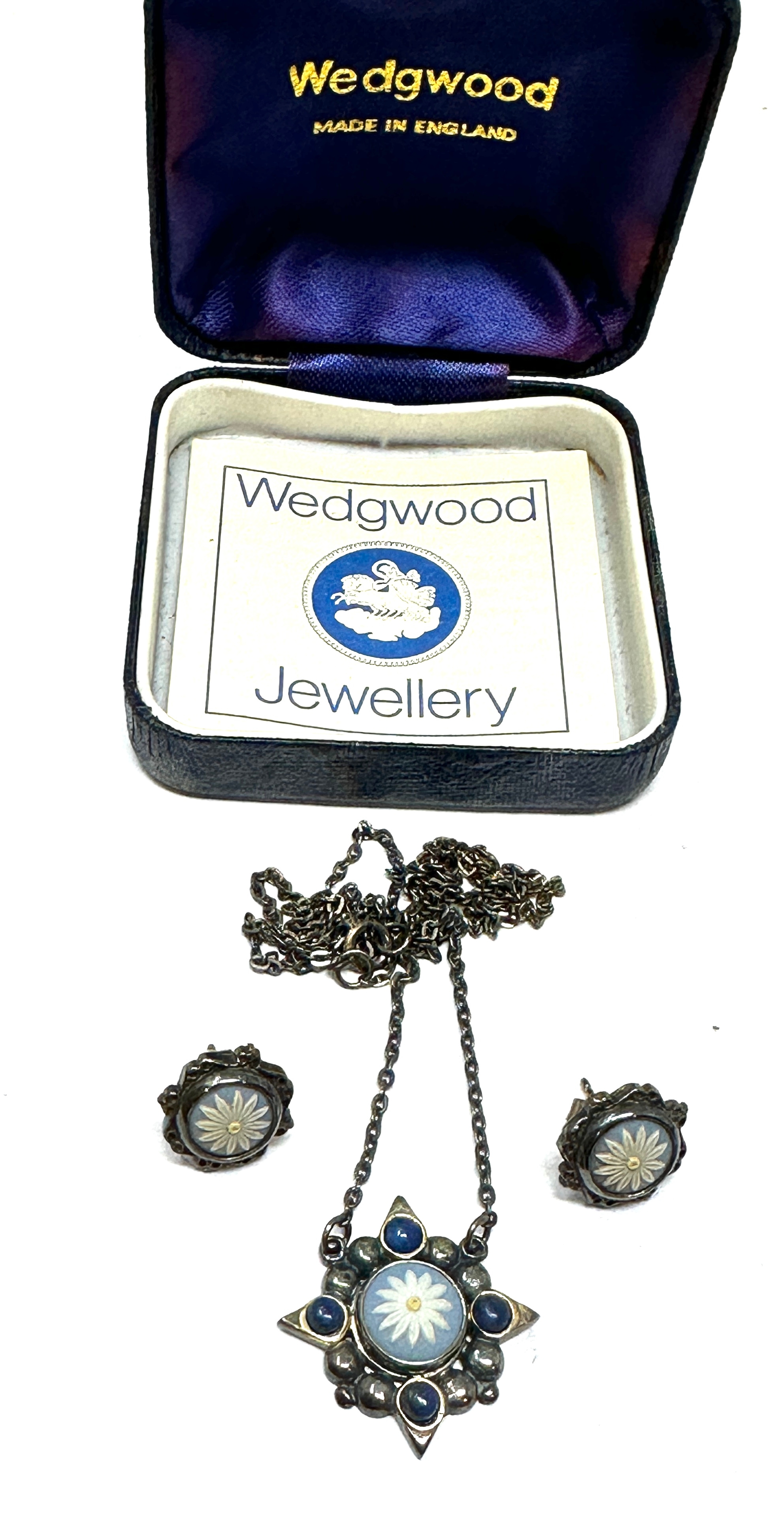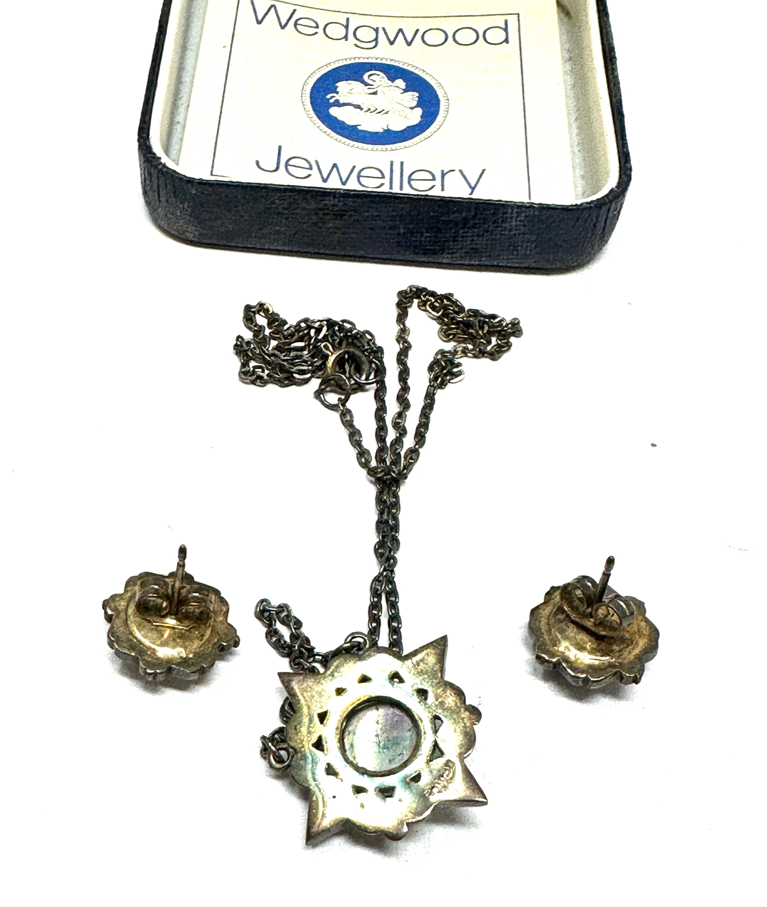 Boxed wedgwood jasperware silver pendant necklace & earrings