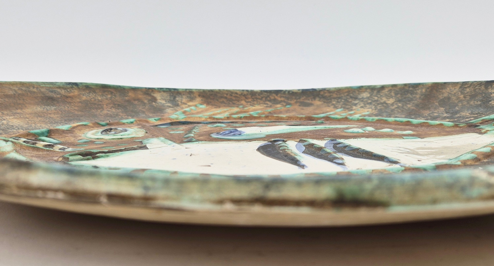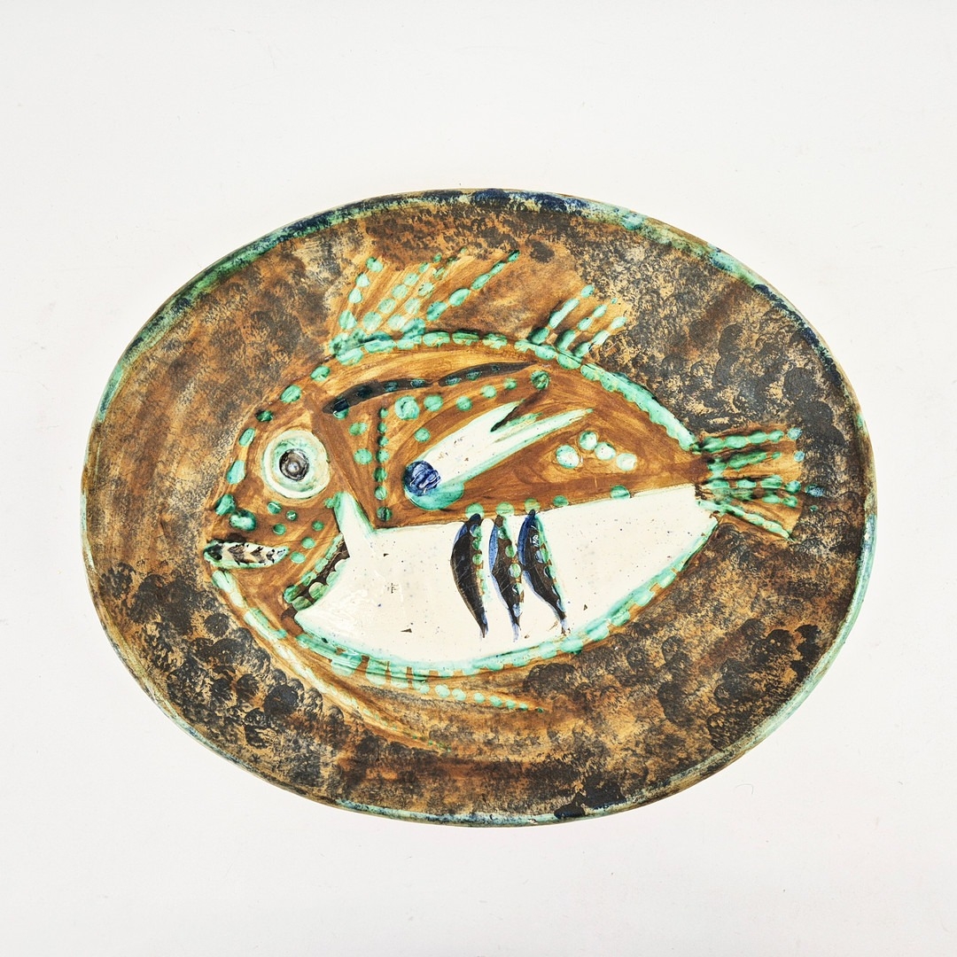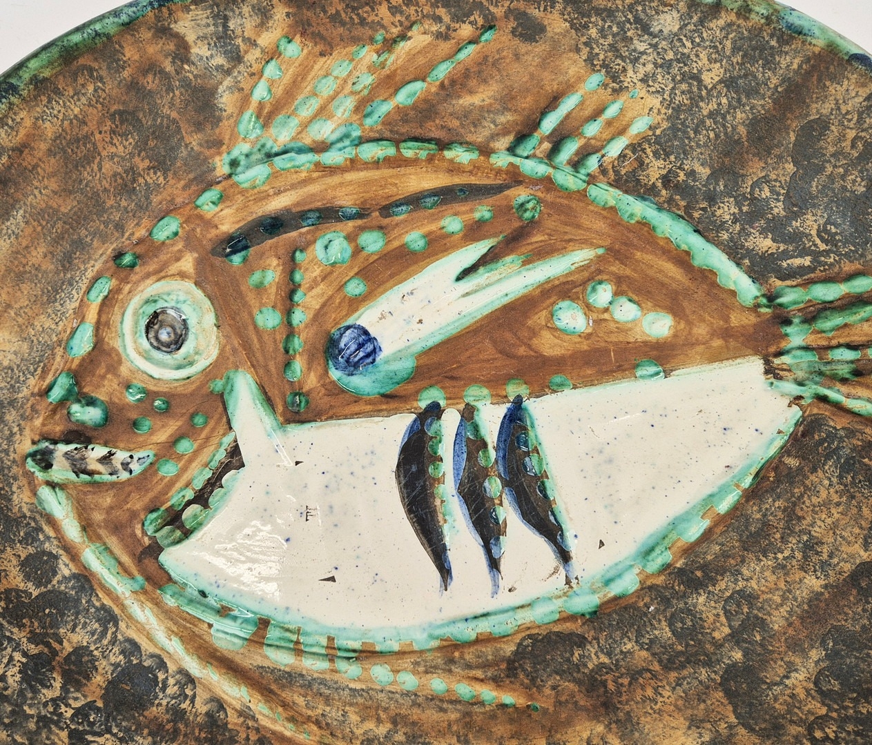 PABLO PICASSO. POISSON CHINÉ. (d) earthenware ceramic plate, stamped 'Madoura Plein Feu / Empreinte Originale de Picasso'. Conceived in 1952 and executed in an edition of 200, 42cm W x 35cm. (Subject to ARR – see Buyers Conditions)