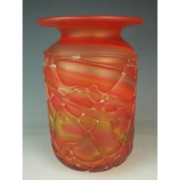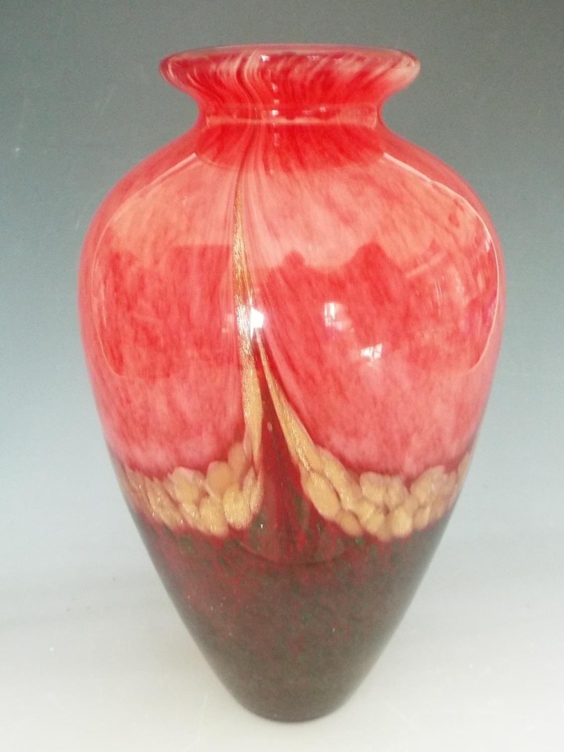 Large and heavy ovoid shaped glass vase with adventurine decoration set into the glass. 13 inches tall.