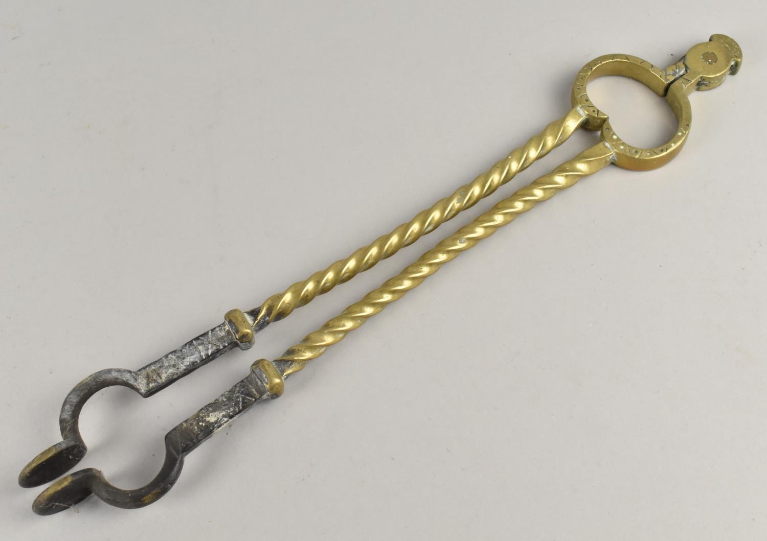 A Pair of 19th Century Brass Handled Fire Irons with Twisted Arms, 39cms Long