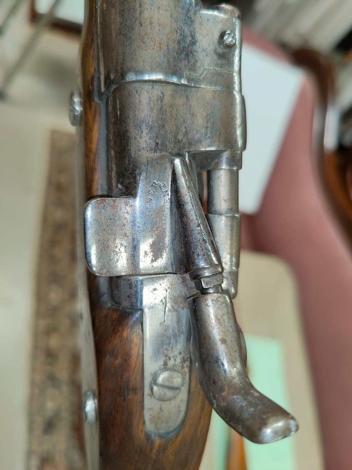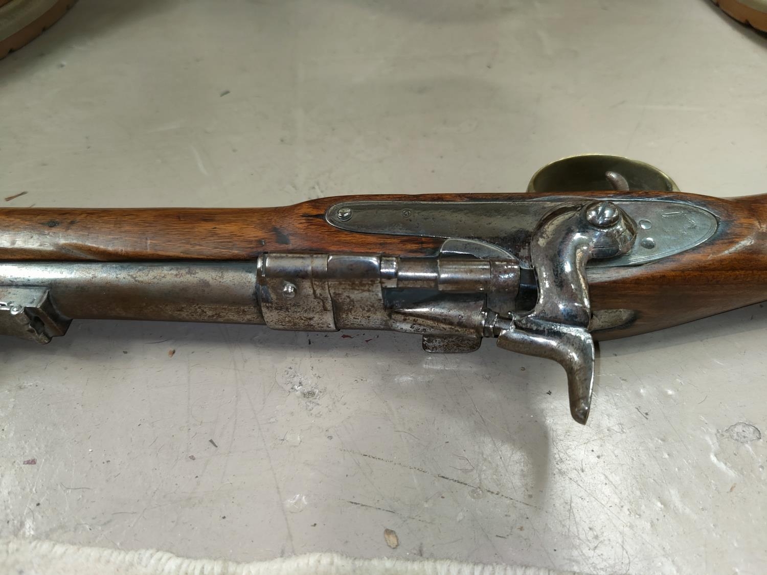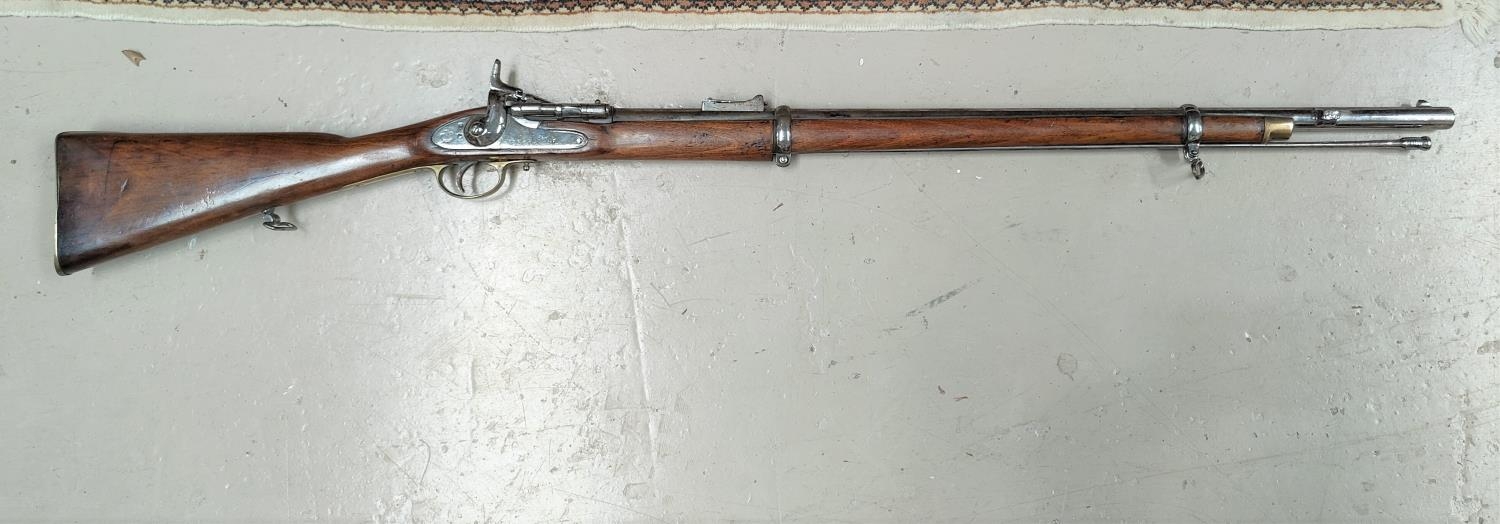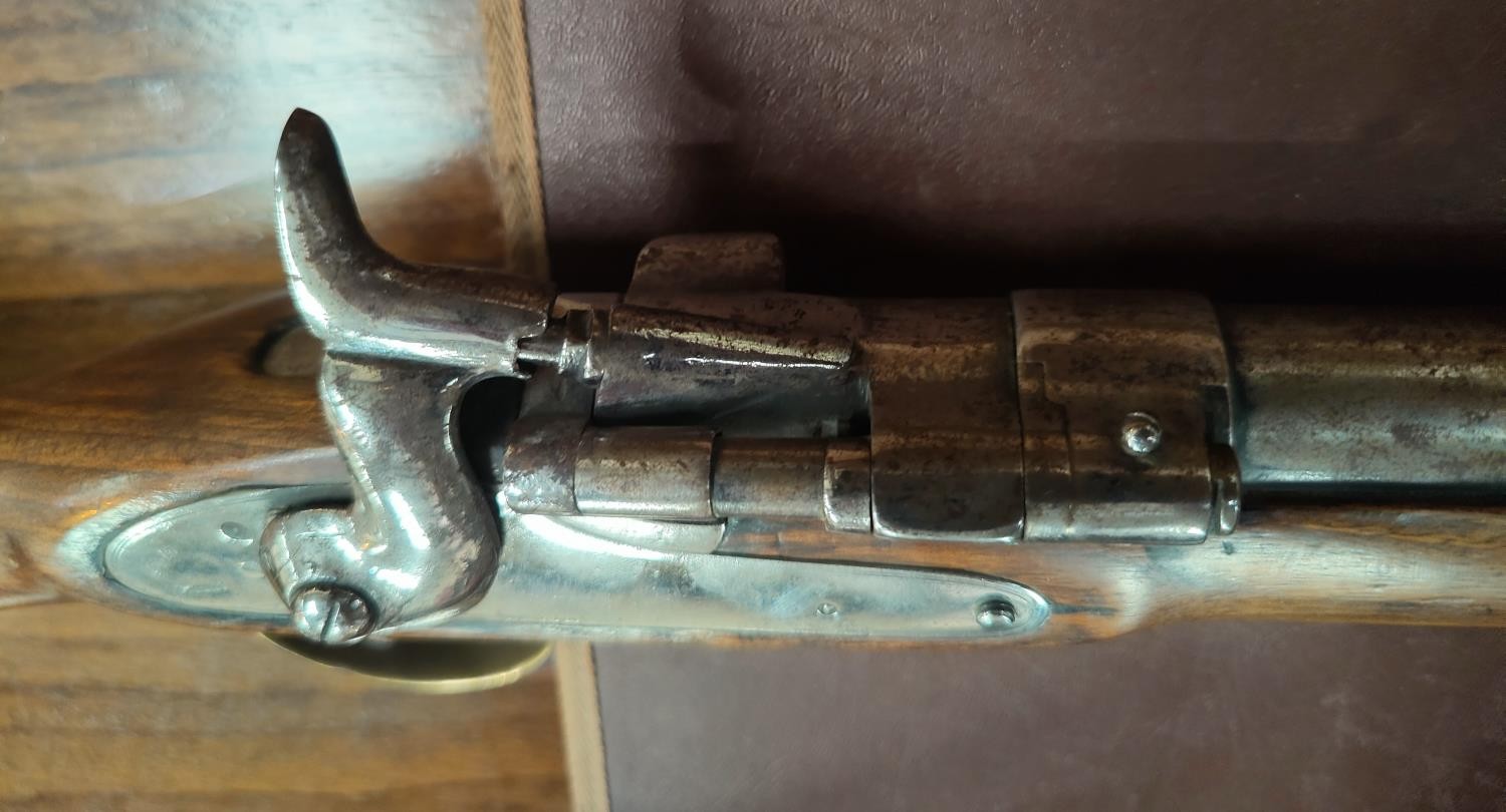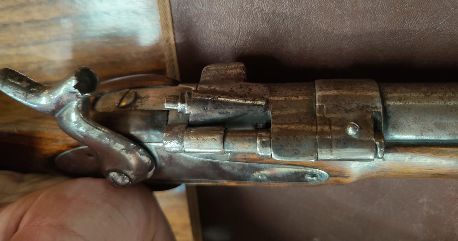 A 19th century Sniders-Patent breech loading percussion rifle, with crown mark to lock, double barrel, barrel length 84cm total length 125cm (The weapon is being sold as a display item only and could not be recommended for any other purpose)