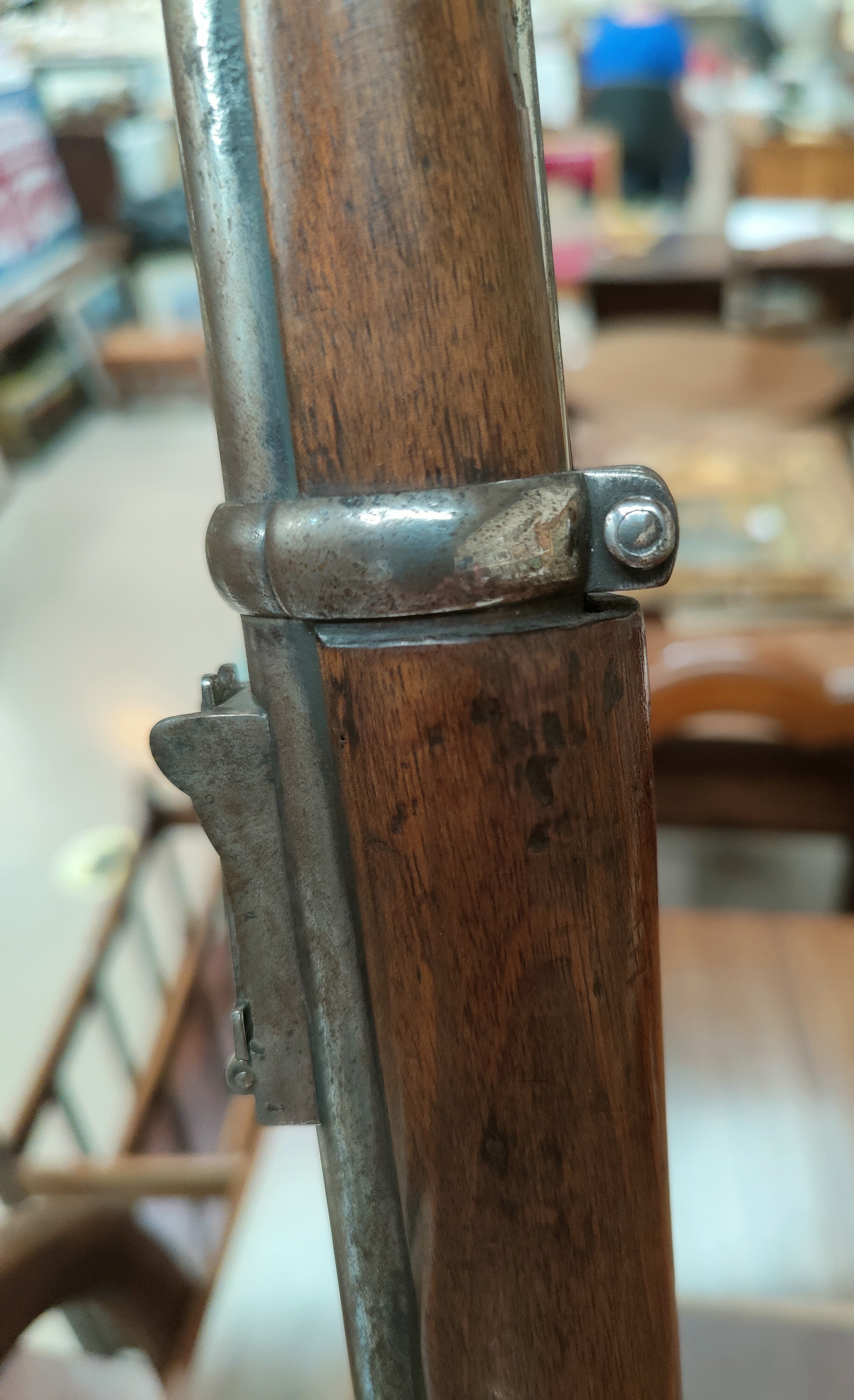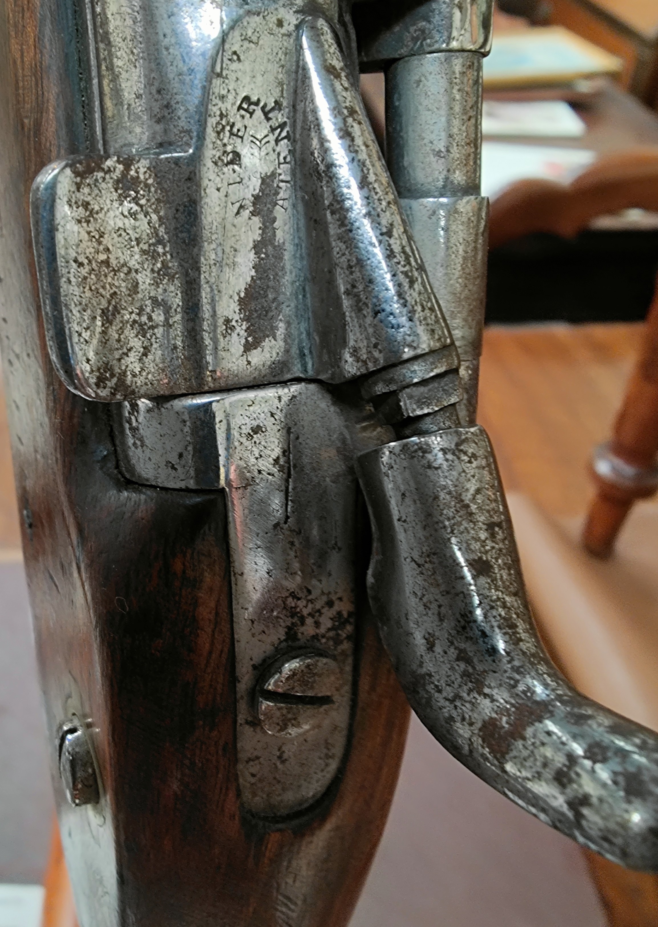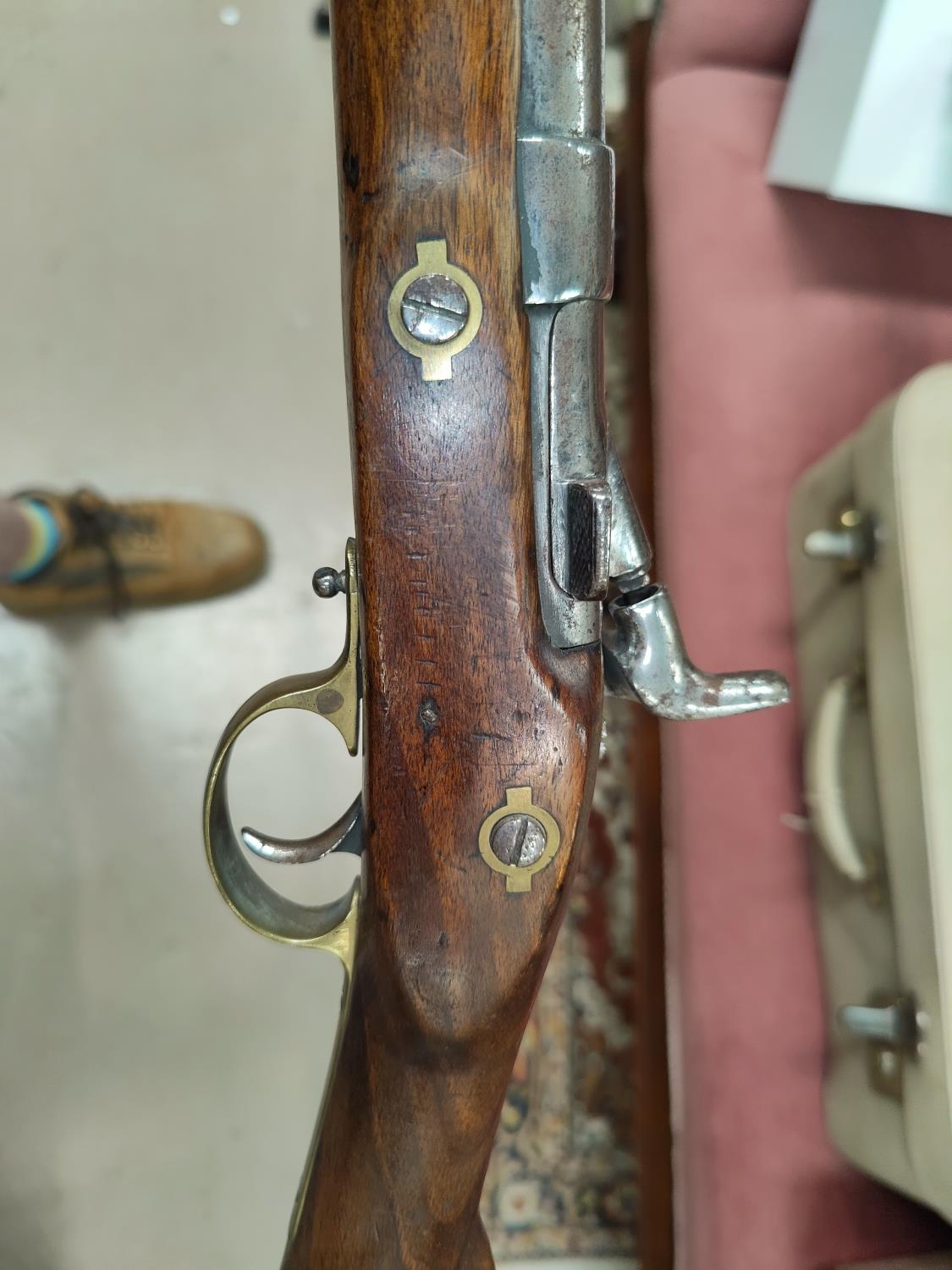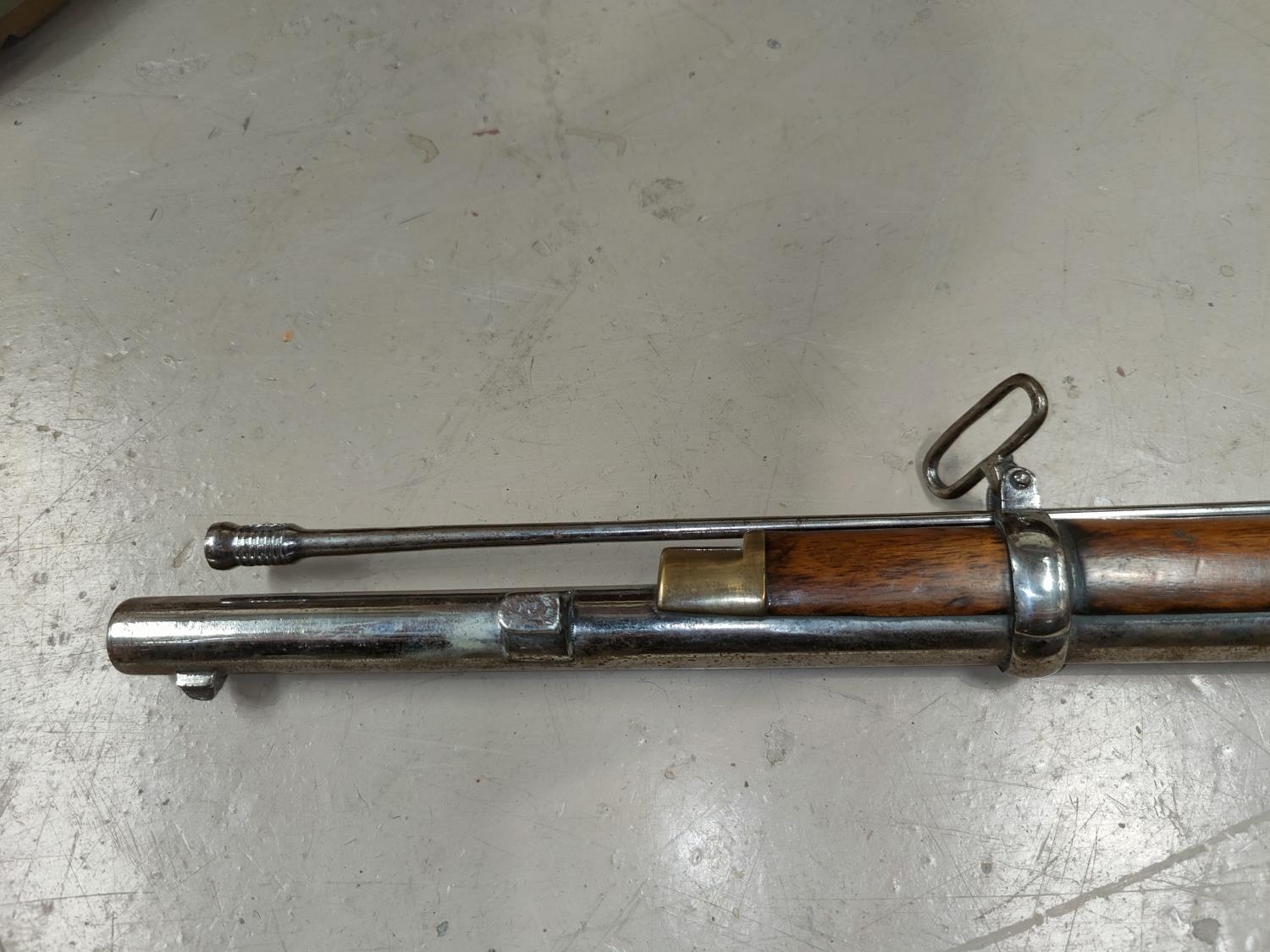 A 19th century Sniders-Patent breech loading percussion rifle, with crown mark to lock, double barrel, barrel length 84cm total length 125cm (The weapon is being sold as a display item only and could not be recommended for any other purpose)