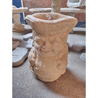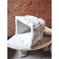 Tall concrete garden birdbath with 35cm square top with rose design in centre. A simple classical plinth. Approx 65cm tall