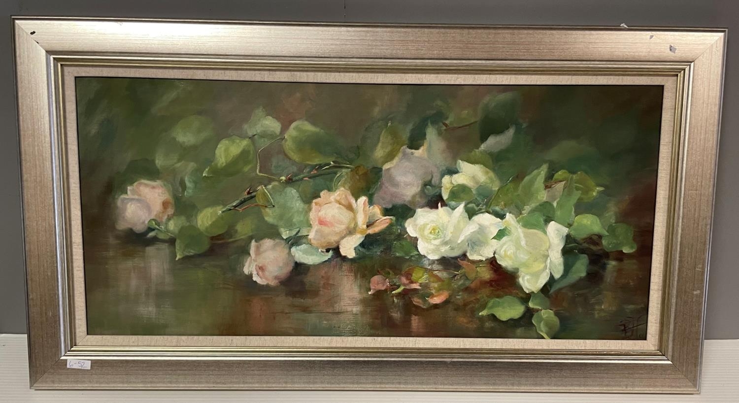 Framed oil on canvas Still Life 77cm wide x 42cm high