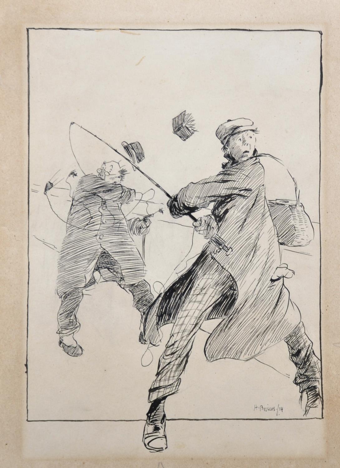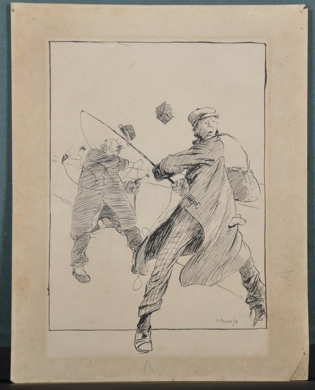 Arthur John Trevor Briscoe (1873-1943) British. Study of a Man Fishing, Ink, Signed and Dated ’14, Unframed, overall, 11.5” x 9” (29 x 23cm).
