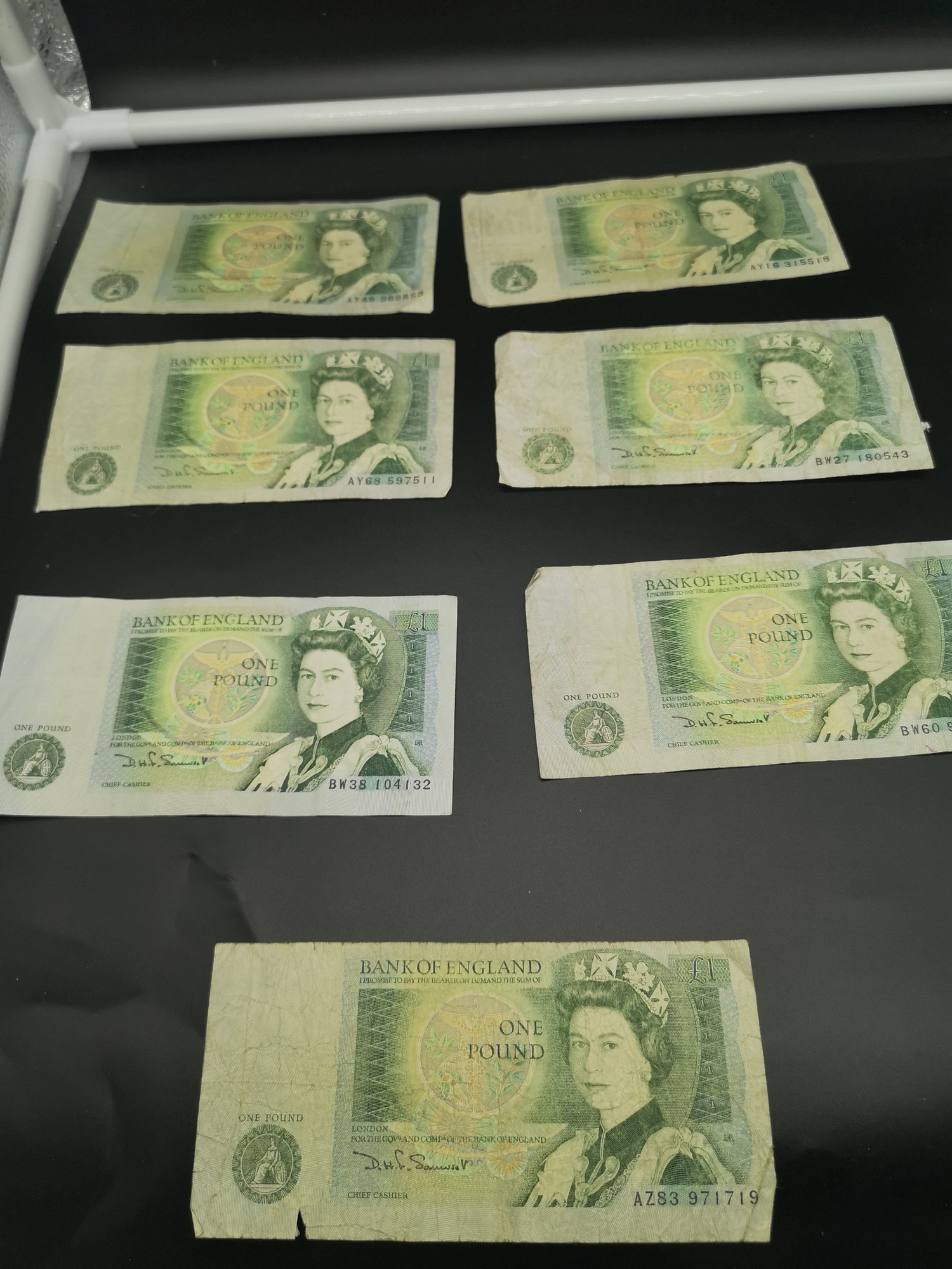 7 bank of England £1 pounds.
