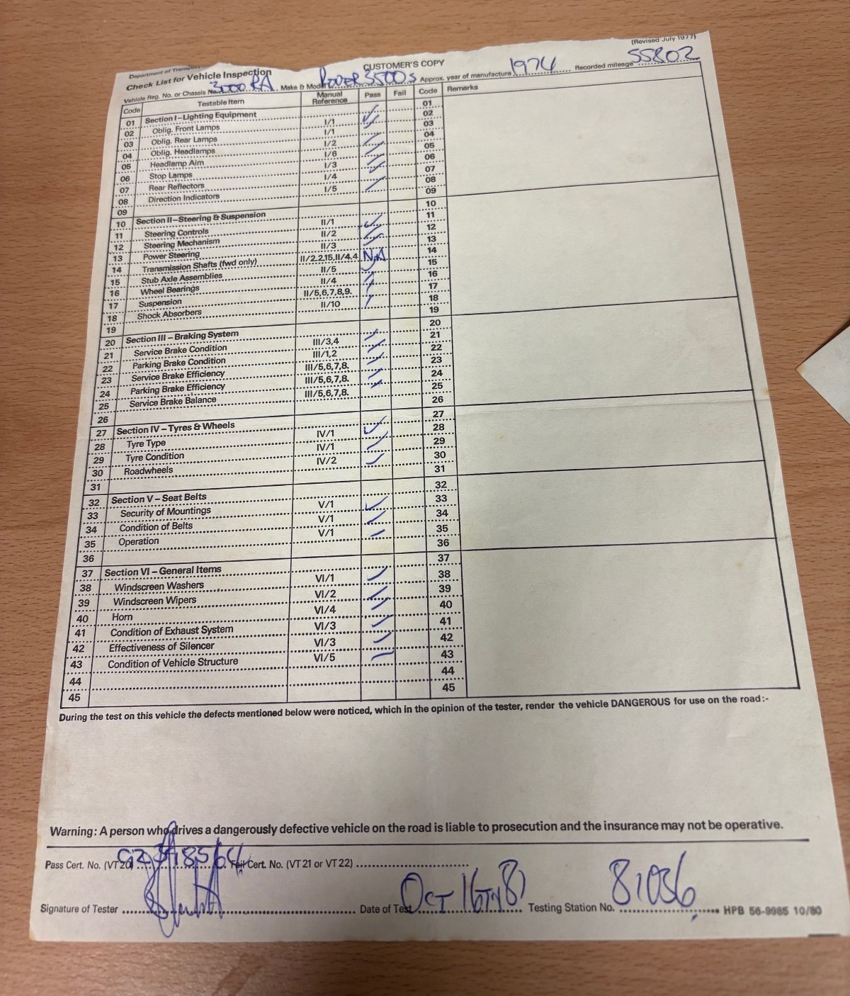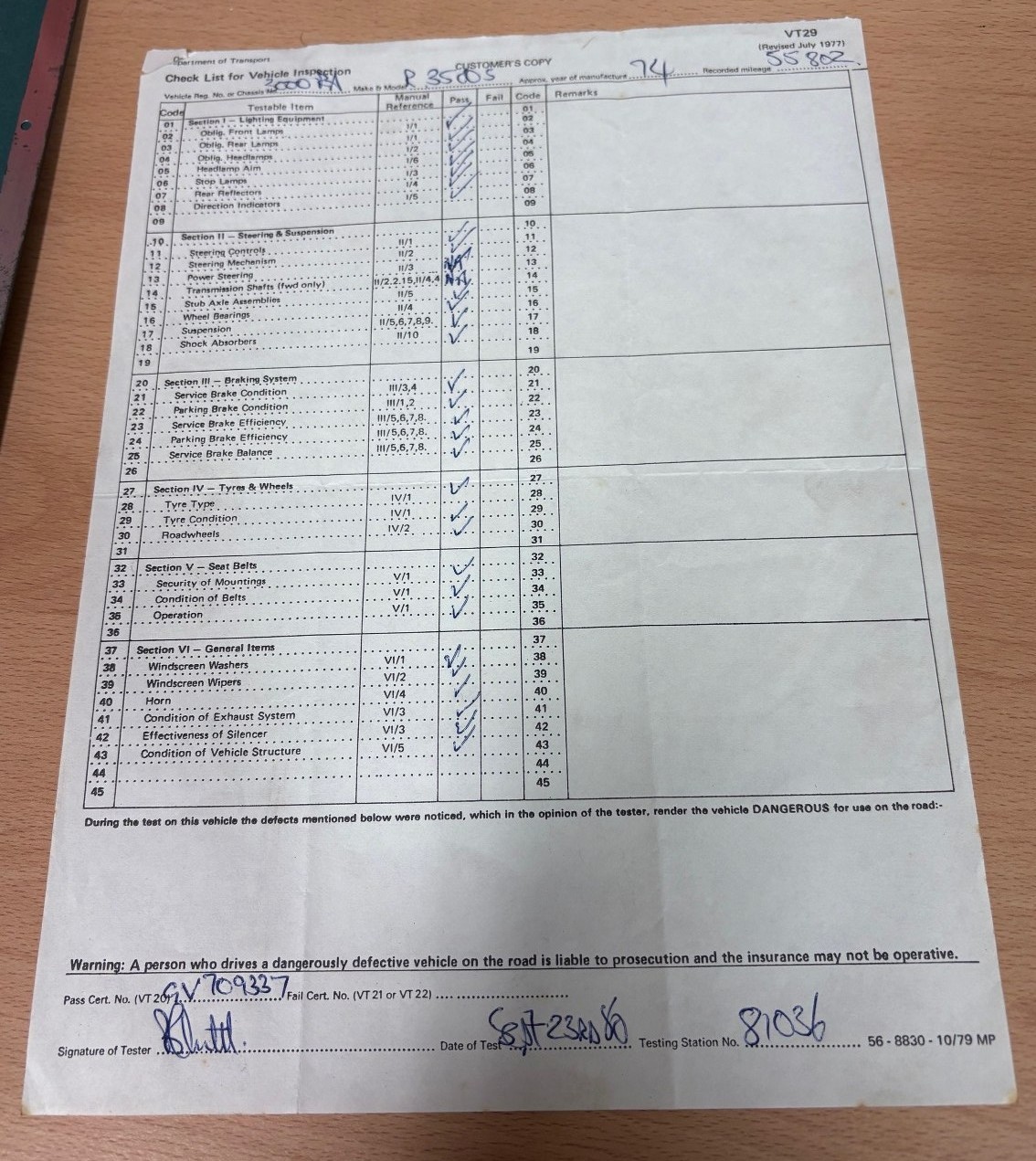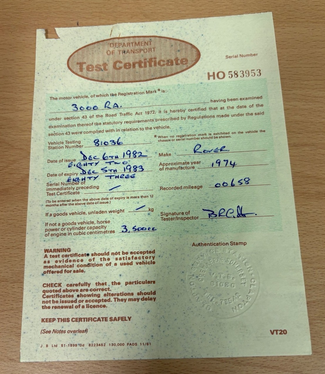 V5 (part only) and small group of paperwork including four previous MOT certificates (1979-1982)