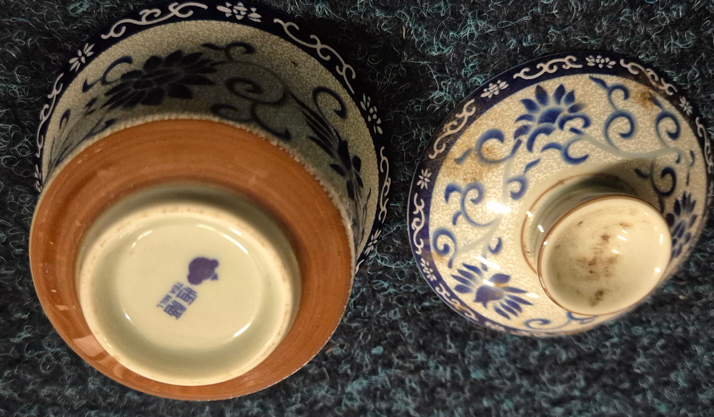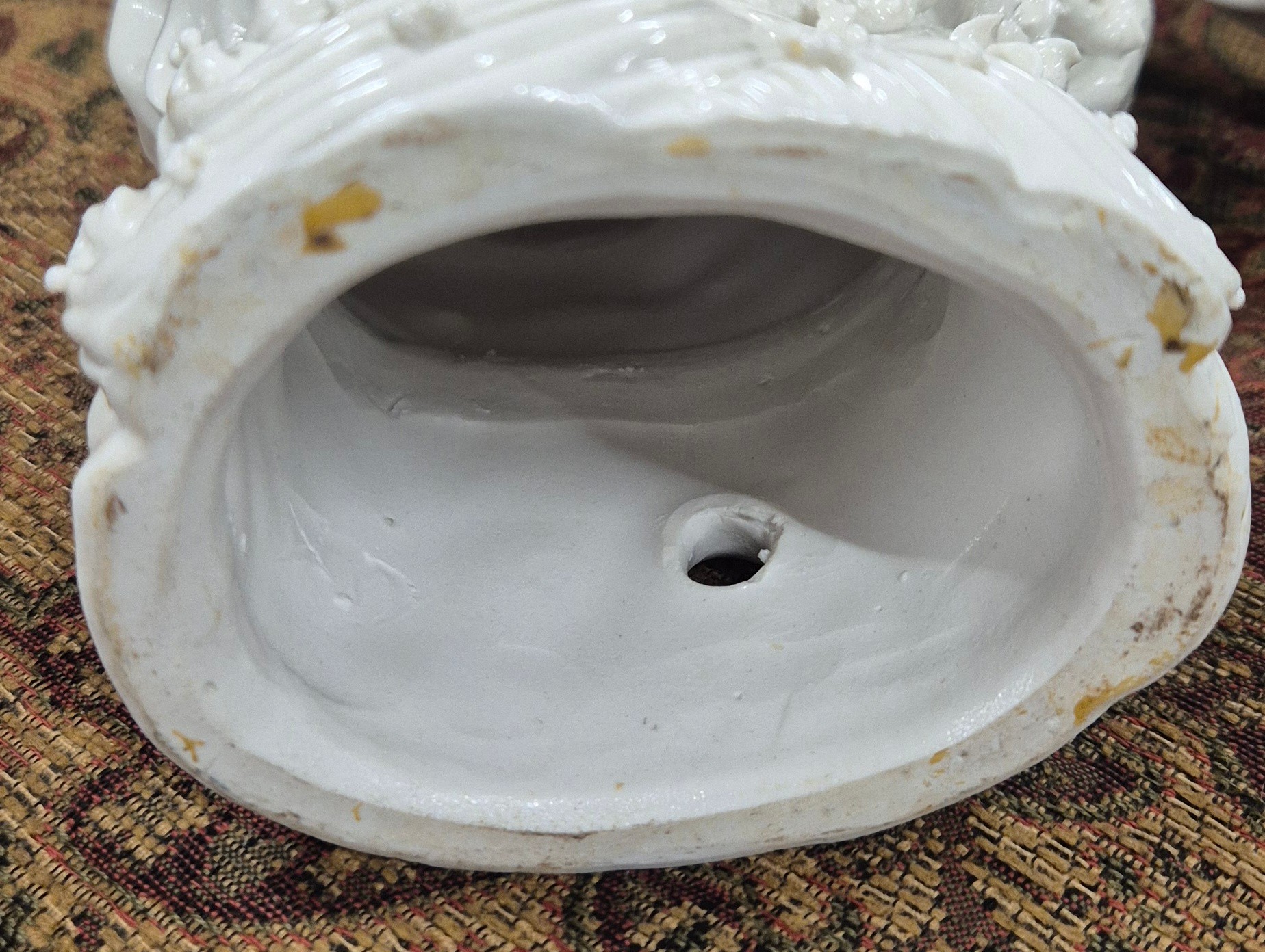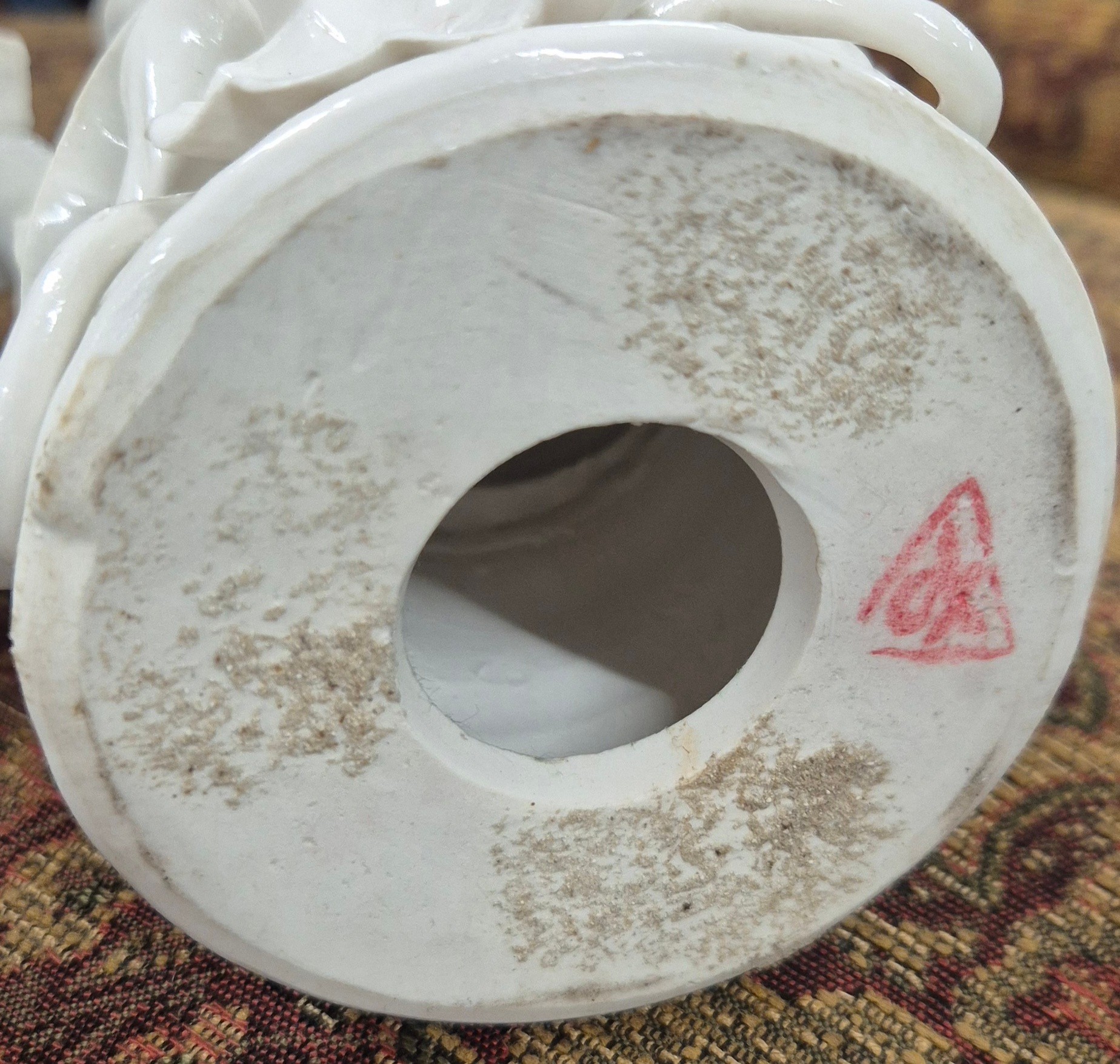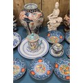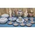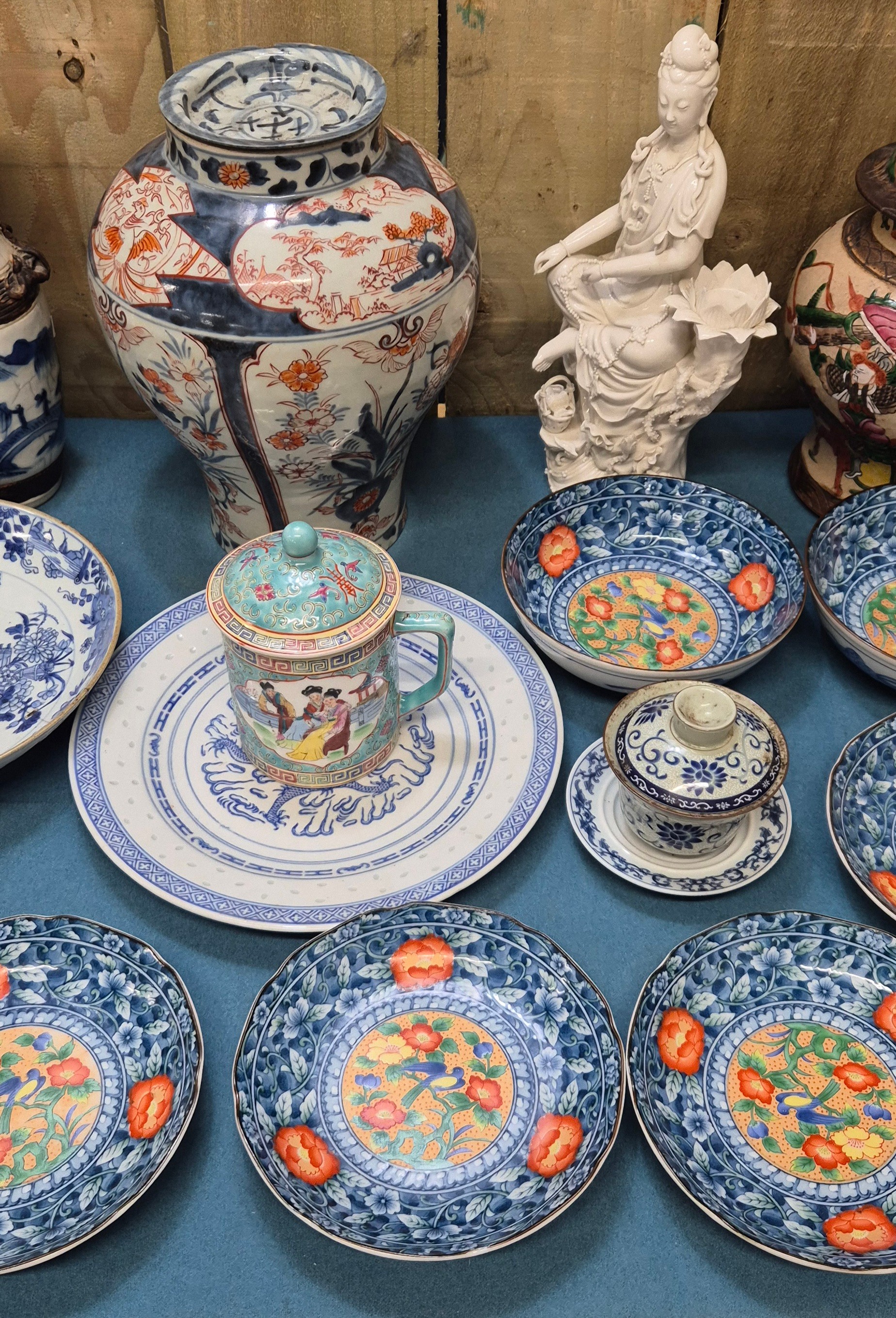 Collection of 19th & 20th century Chinese Porcelain; Pair of antique Blanc De Chine buddha sculptures, Chinese blue & white vase with brown relief design- reign mark to base, Plates & other items . 29.5cm in height.