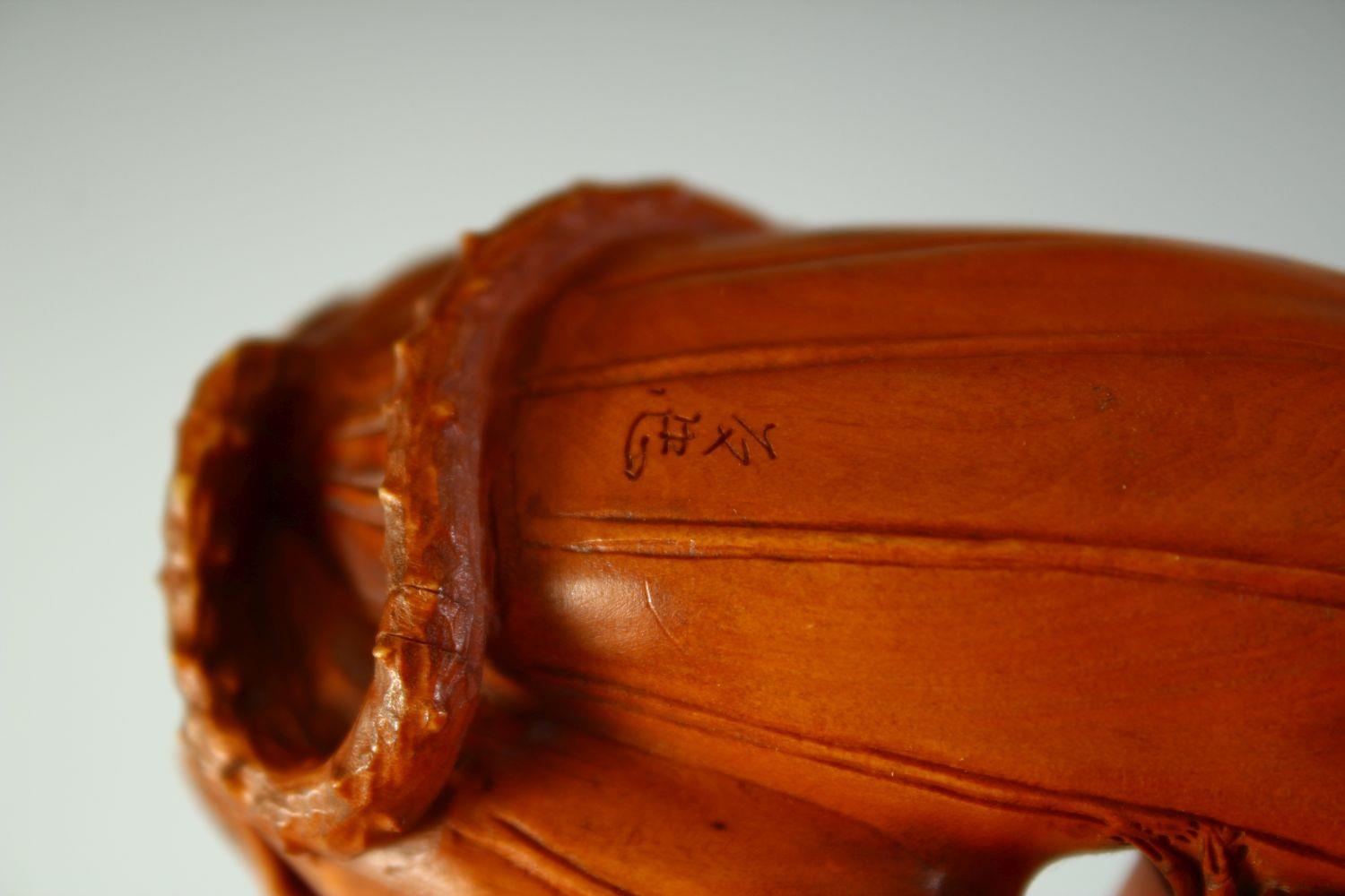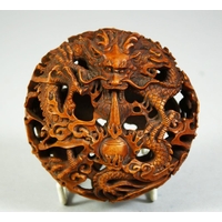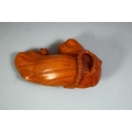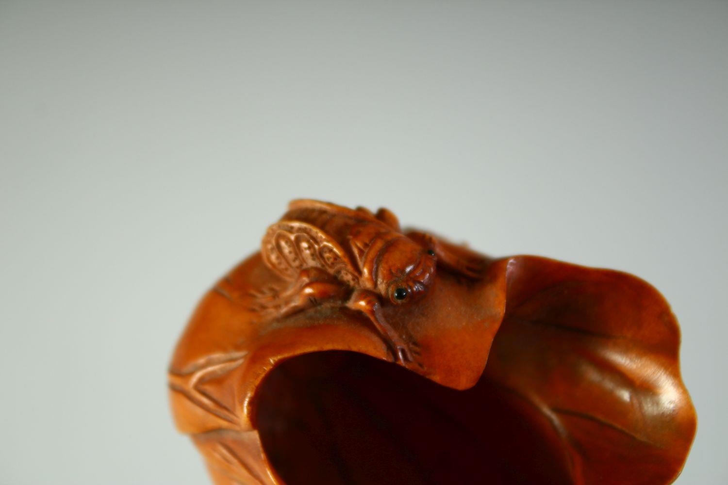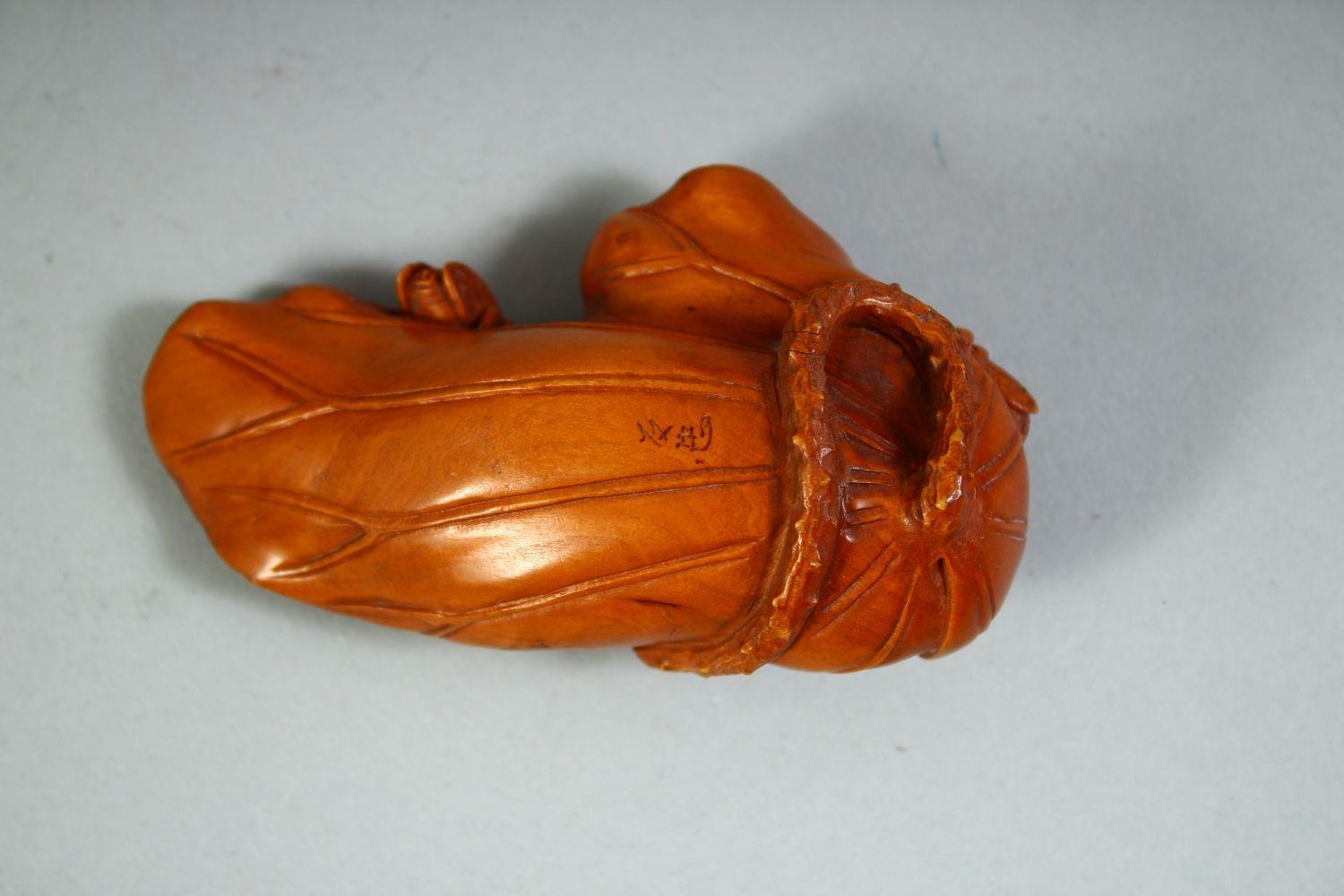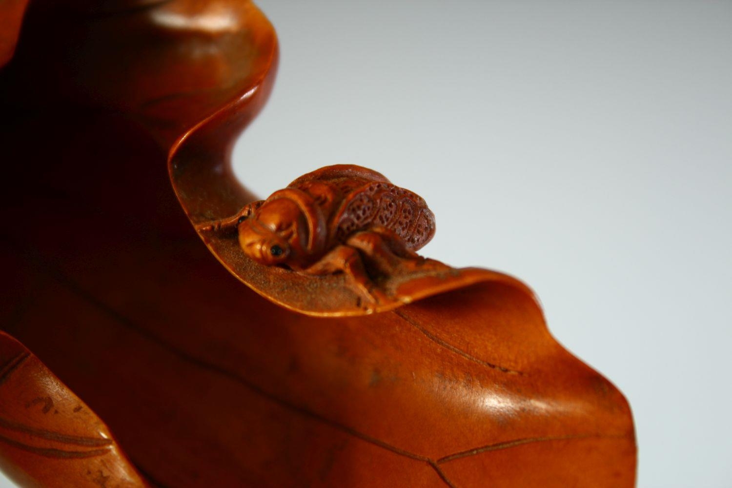A GOOD CHINESE BOXWOOD CARVING of insects on a leaf, signed to the underside, 9cm long.