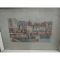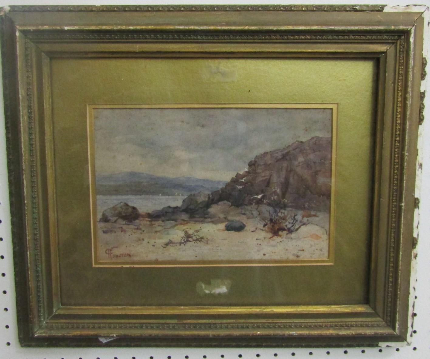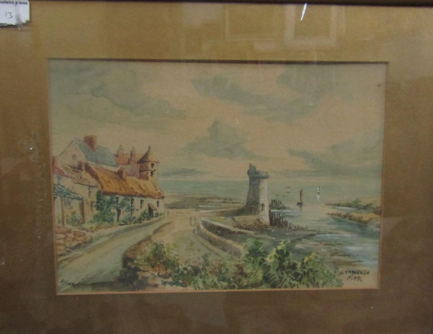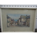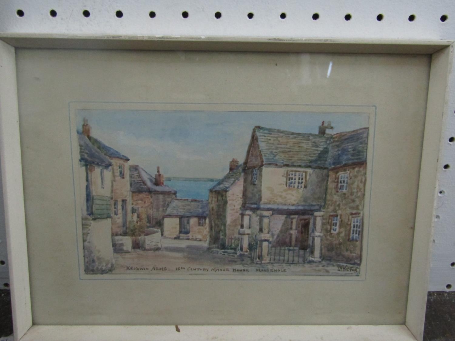 C Houston (late 19th century British school) - Coastal scene with distant yachts, watercolour and bodycolour on paper, signed, 15 x 23.5cm approx, together with T H Victor (20th century British) - three watercolours of Cornish scenes including Newlyn Harbour, 23 x 34cm, Mousehole Harbour, 10 x 17cm, Keigwyn Arms, Mousehole, 10 x17.5cm approx, all signed and inscribed, together with a study of Lamorna Cove, signed Wyatt, but possibly also by T H Victor, together with two other watercolours of coastal landscapes, all framed (7)