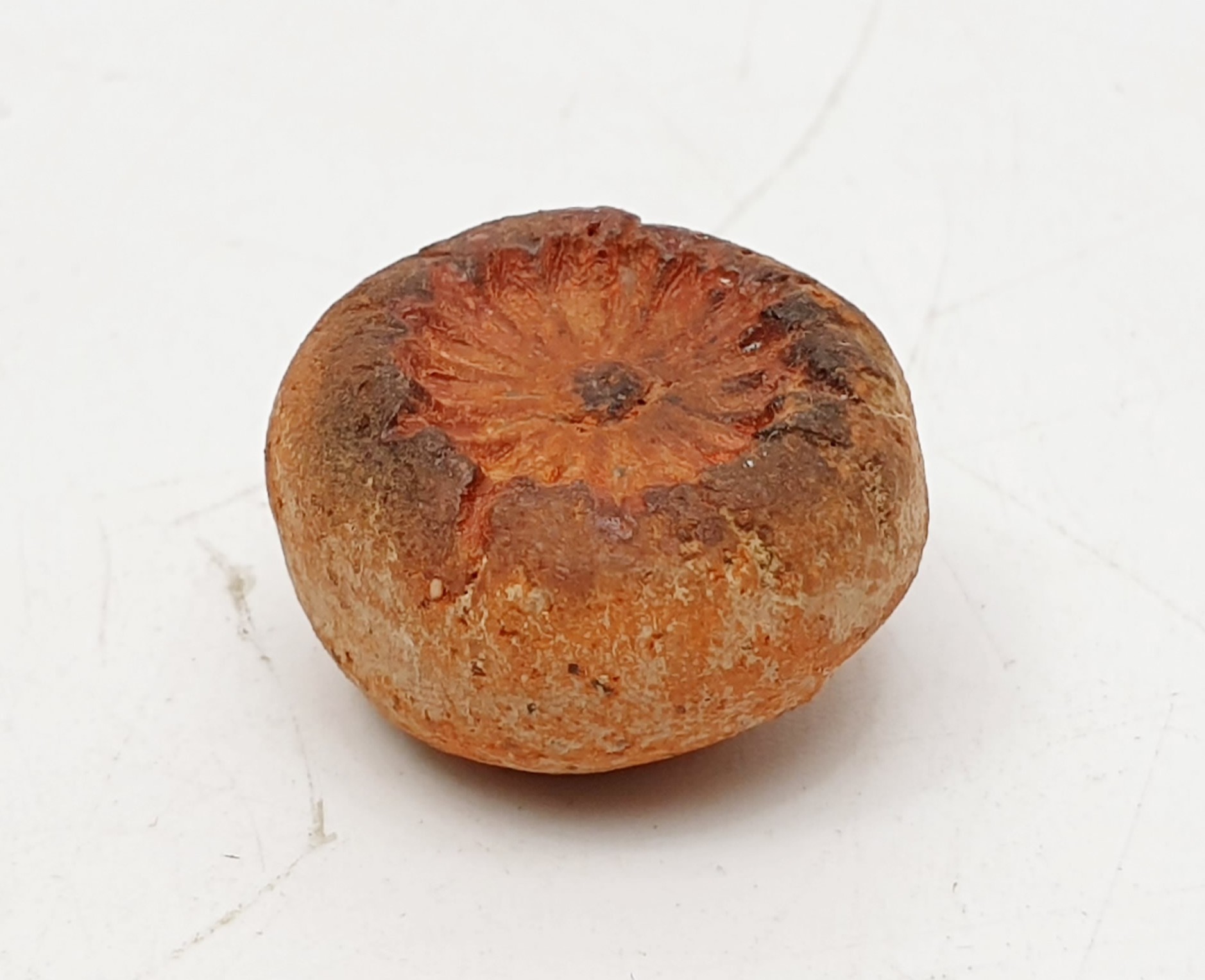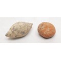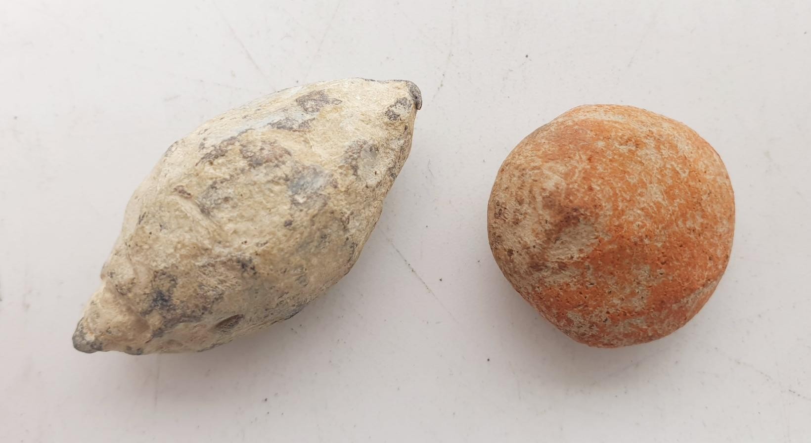 A metal Roman sling shot, length 4cm together with a Roman terracotta artifact. No shipping. Arrange collection or your own packer and shipper, please. Electricals are sold as scrap.