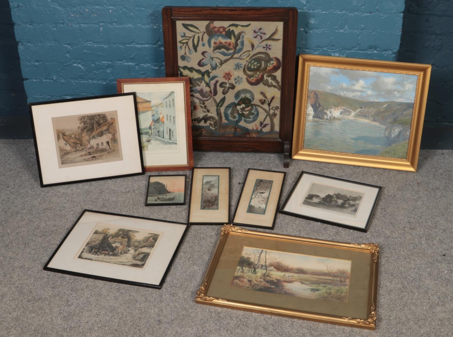 A quantity of mostly paintings & engravings. Including I.E Sykes watercolour, fire screen, oriental watercolours, etc.