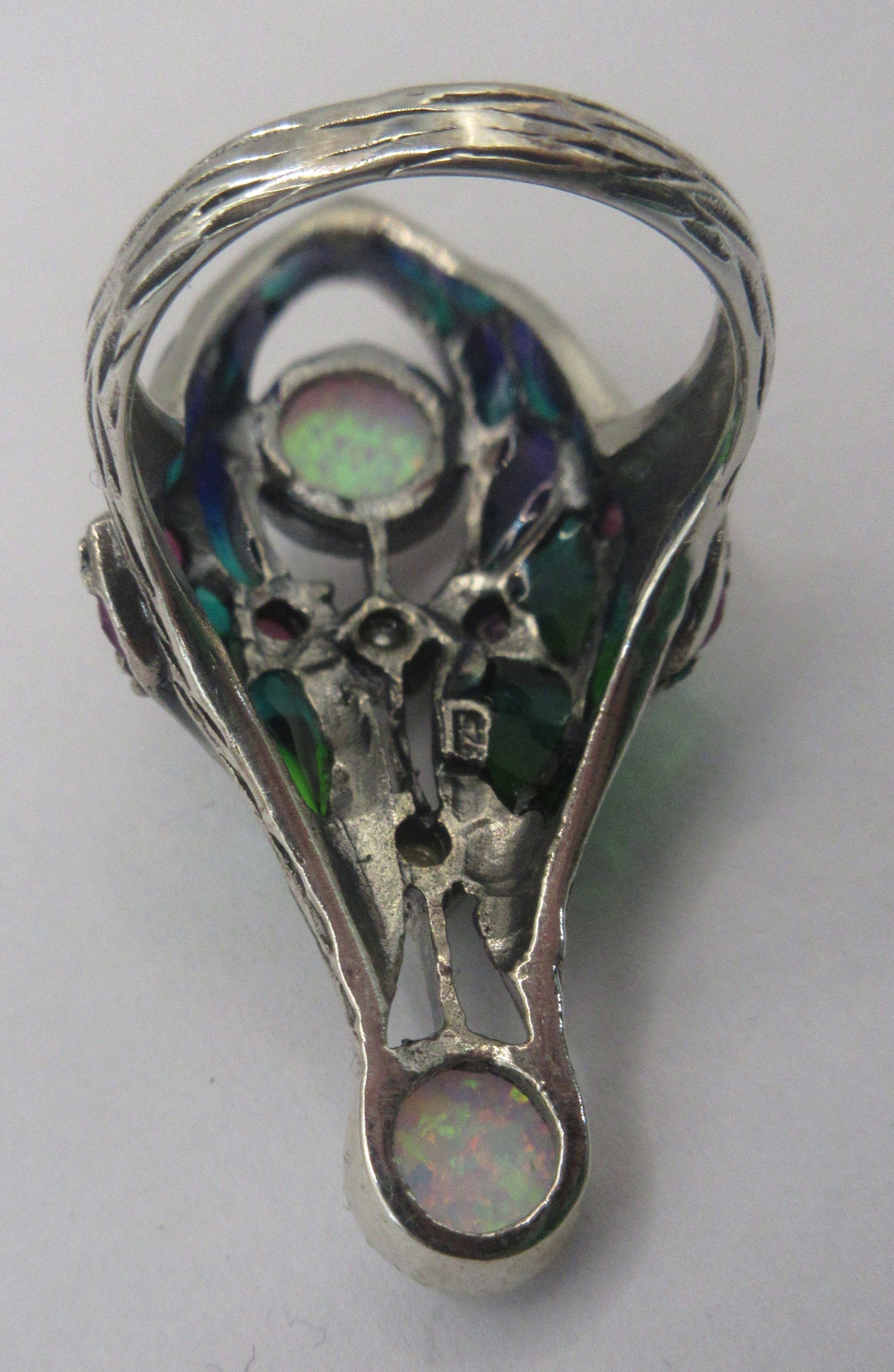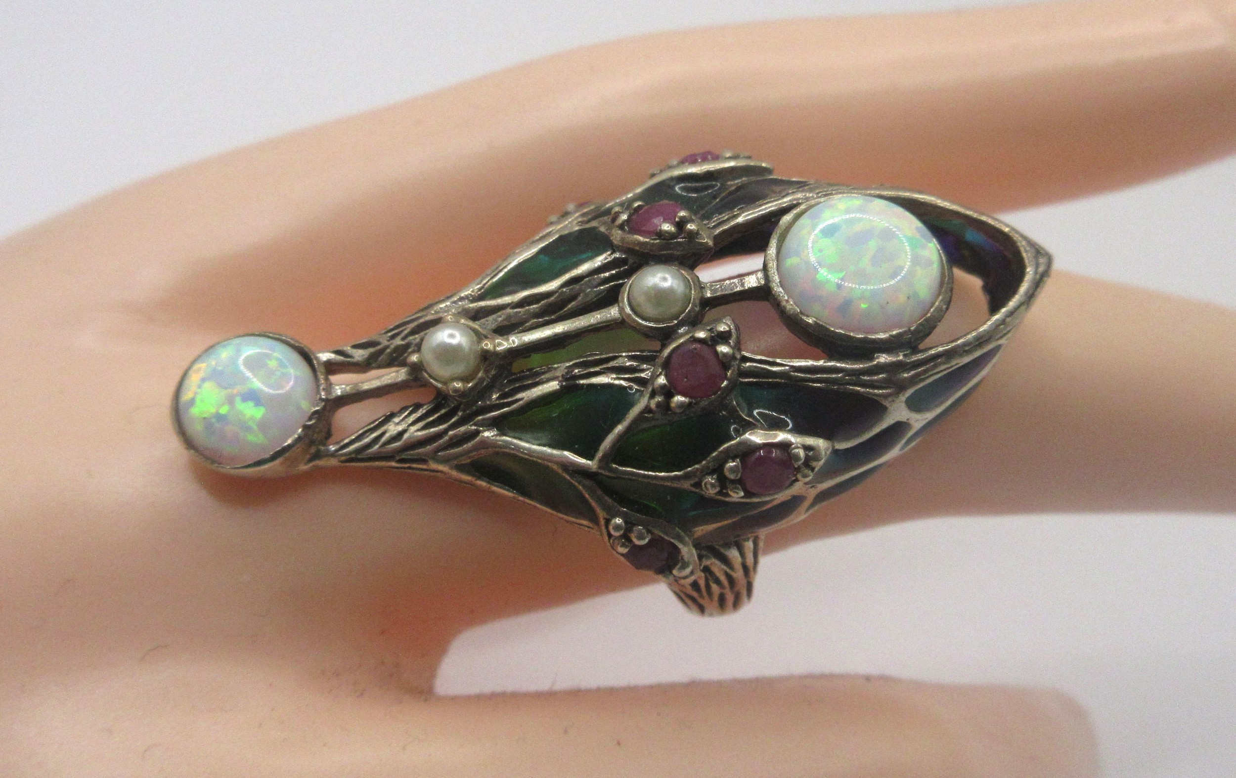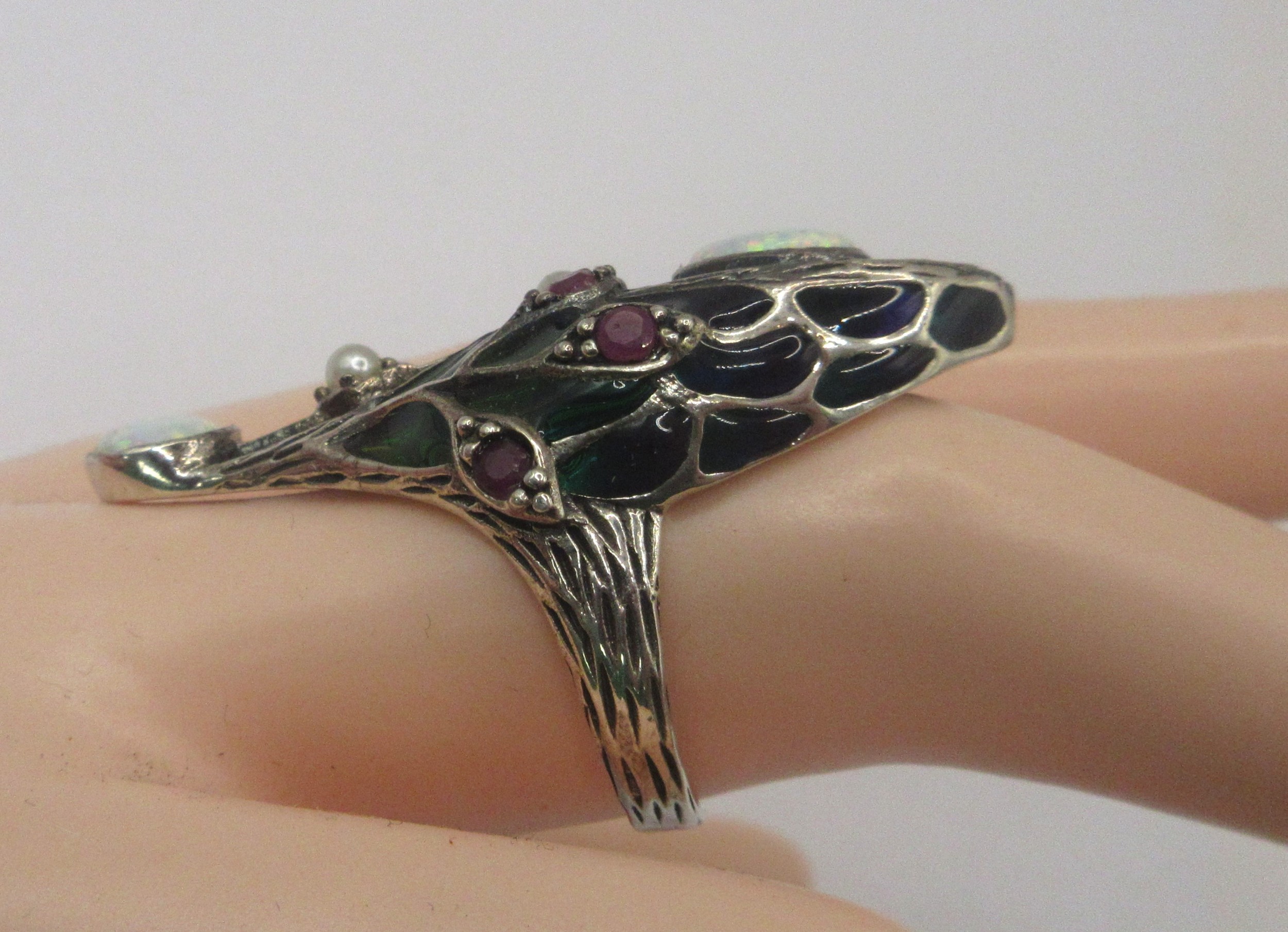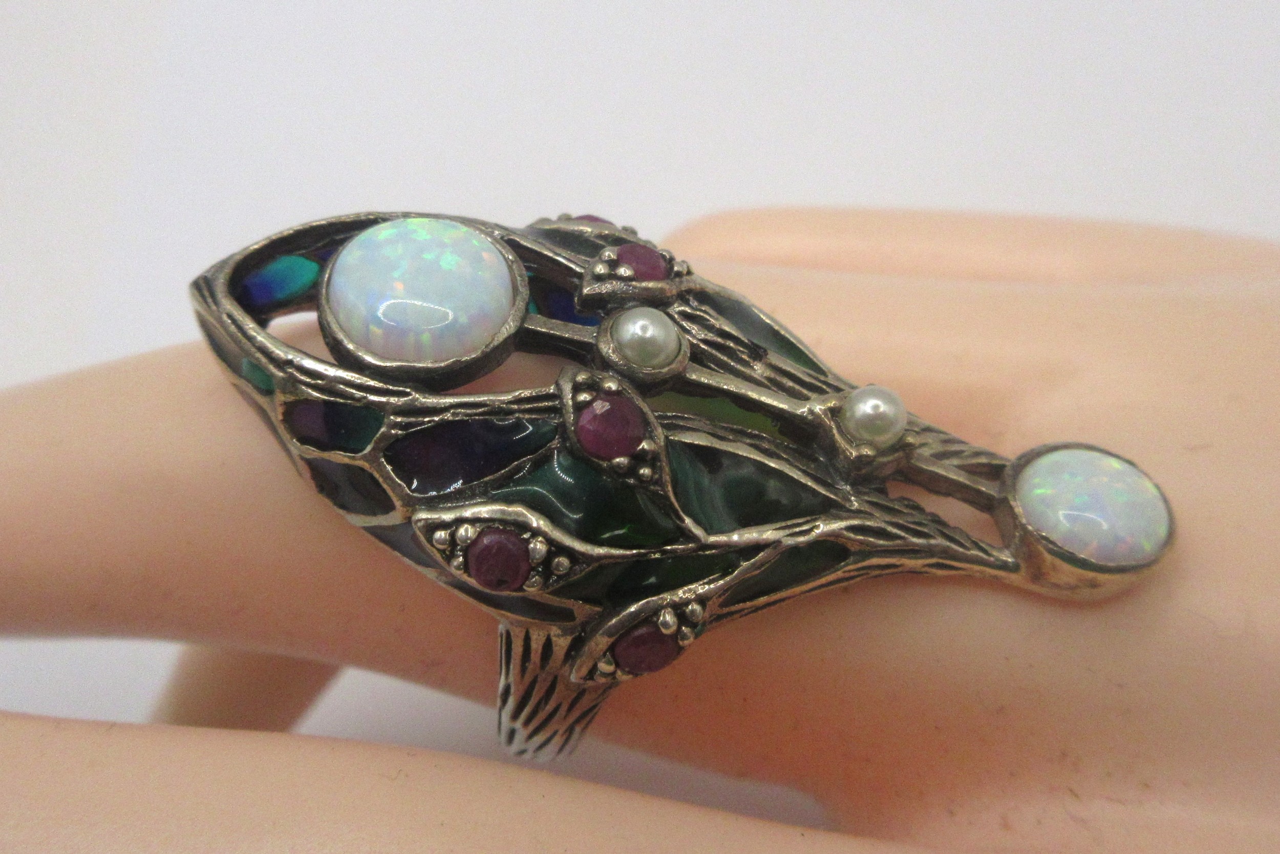 A sterling silver ring with impressive arrangement of faux- and semi-precious gemstones, ring size R approx weight 9.17g
