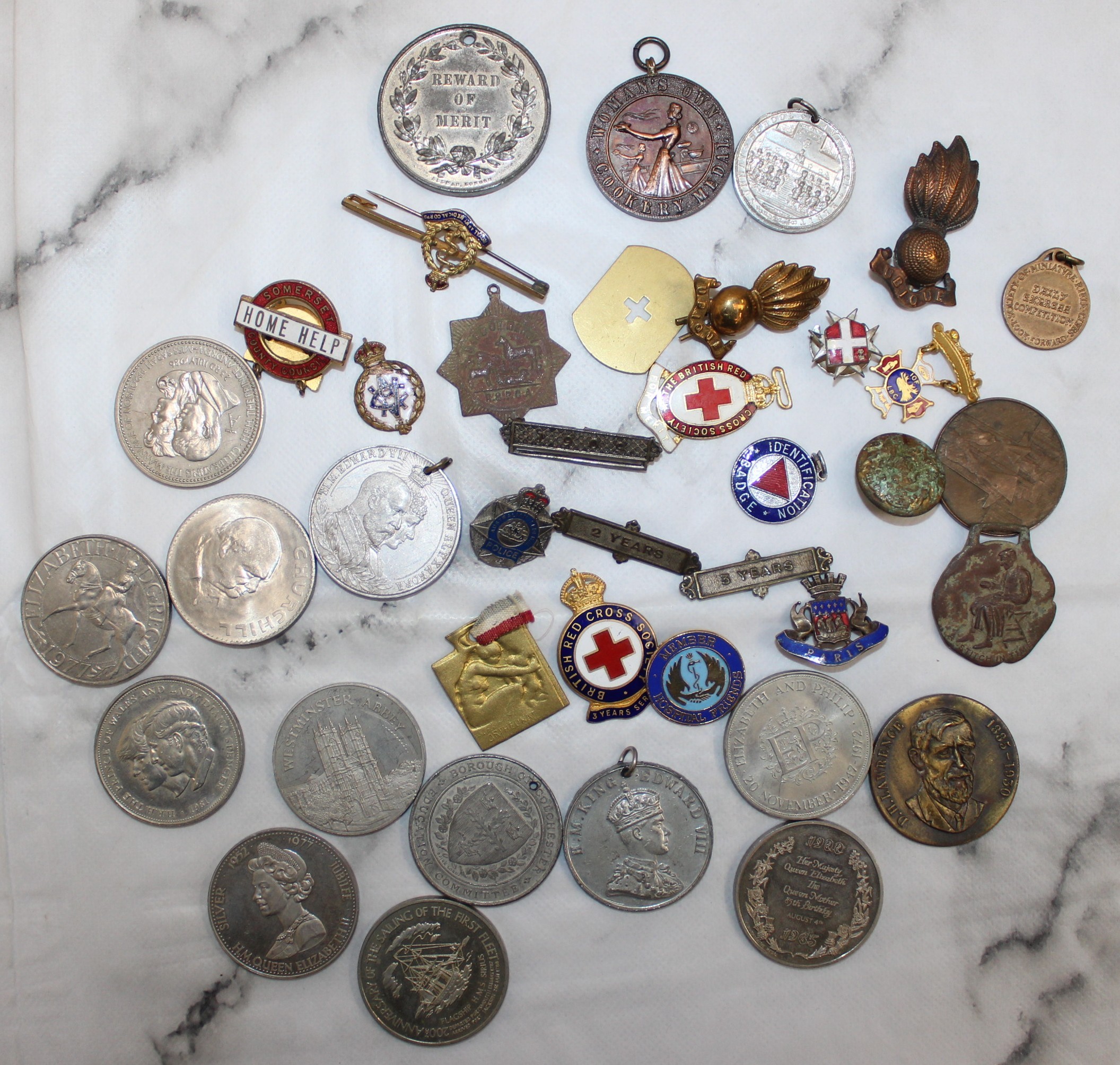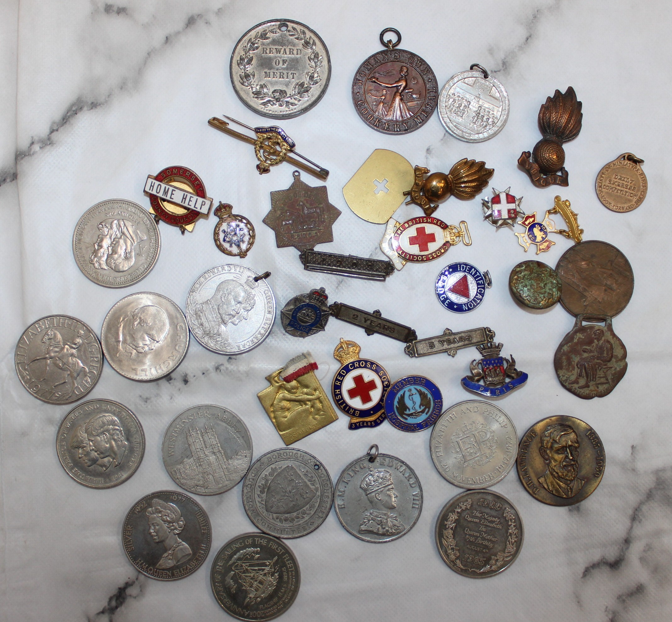 Collection Of Badges ( Military & Red Cross ) plus Commemorative Coins