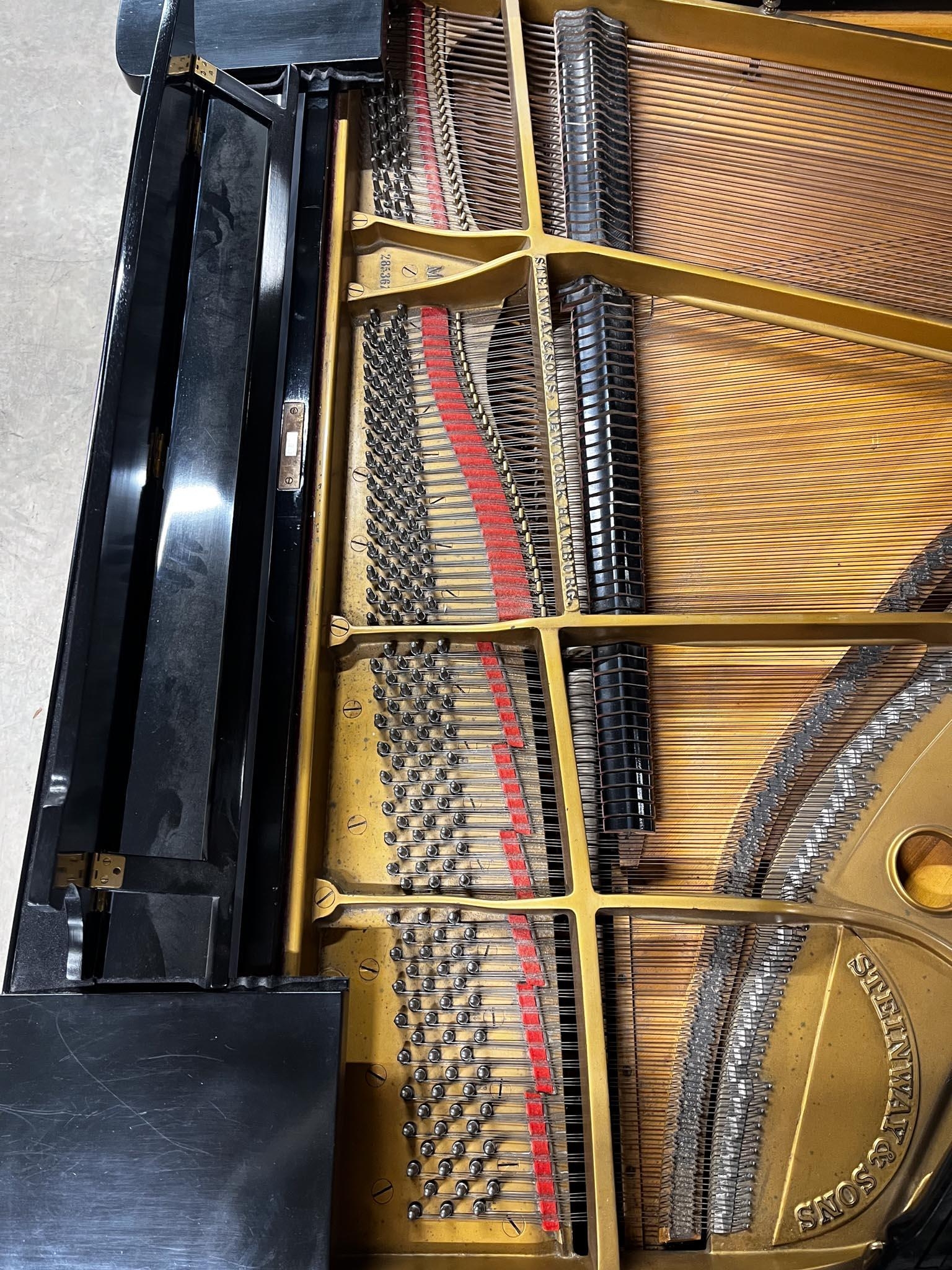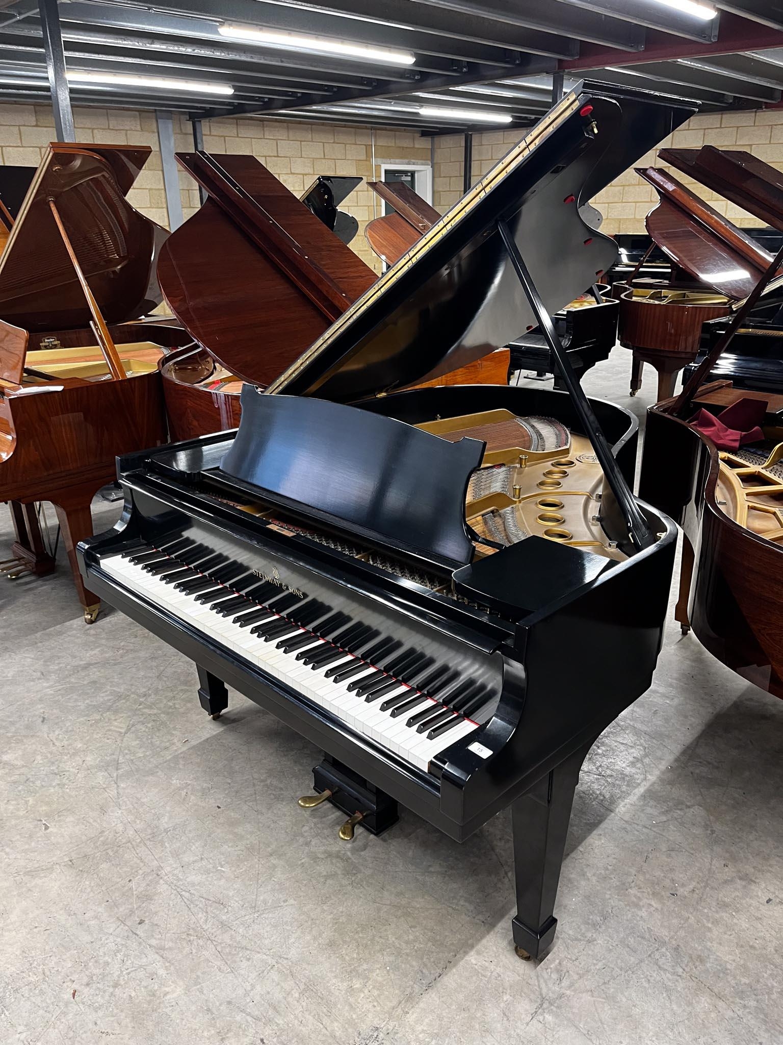 A 5ft 7in Model M grand piano in an ebonised case on square tapered legs; together with a leather upholstered adjustable stool. IRN: EAG7TFZZ