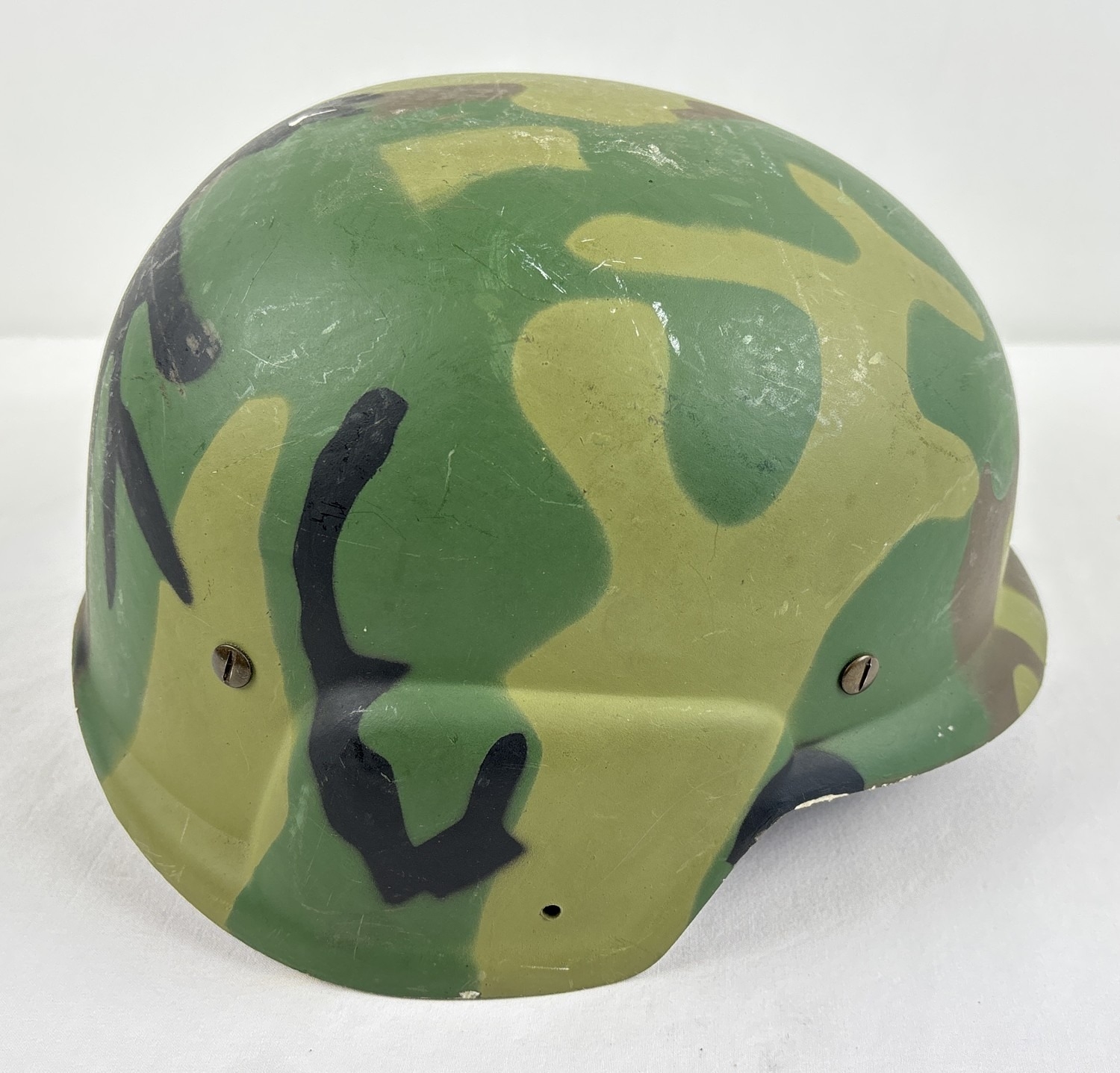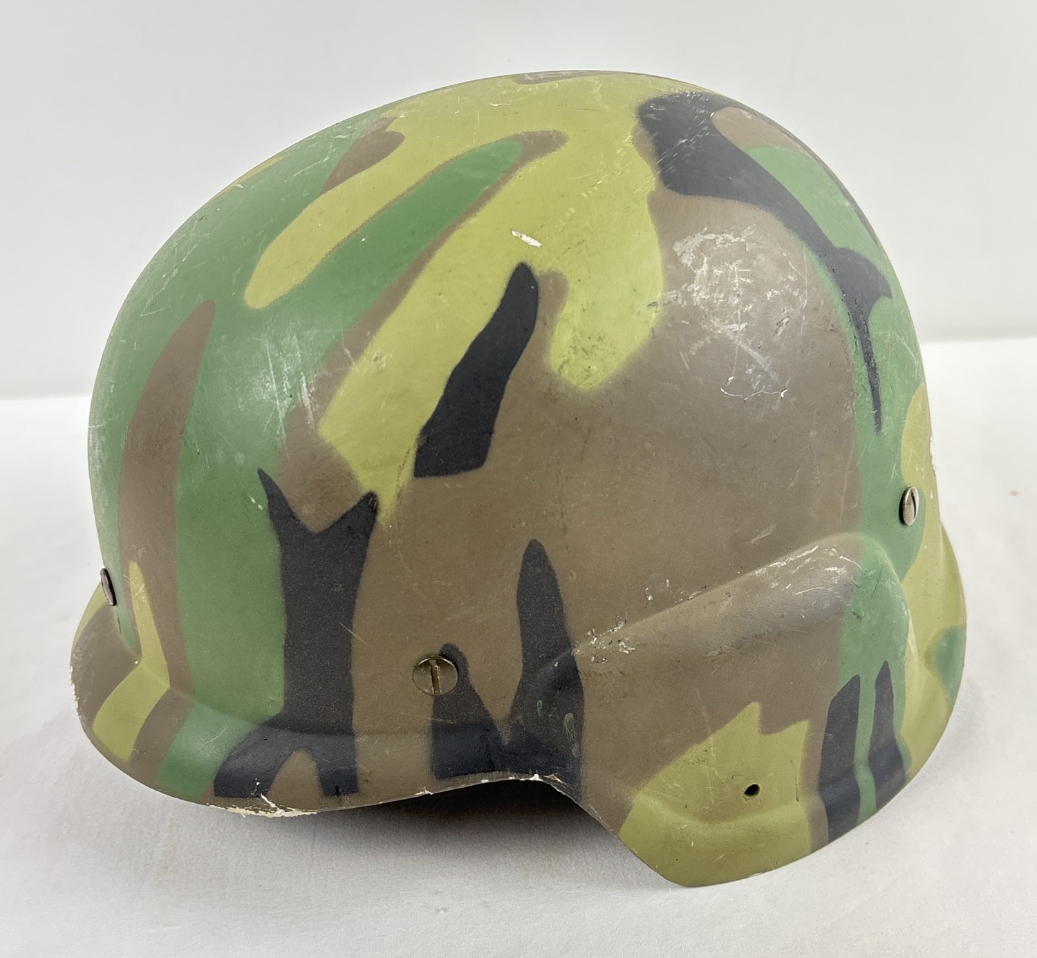 Rare prototype experimental US PASGT helmet in camouflage paint finish, made of GRP by Consolidated Molded Products 1976. Complete with cradle.
