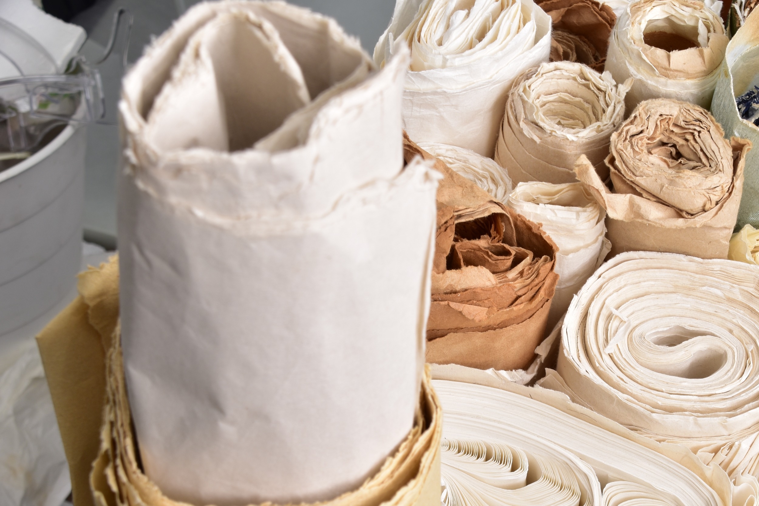 A large collection of Chinese xuan rice Paper, of various colours and textures, for writing and painting, together with a book of poems and illustrations and a stamp collection.