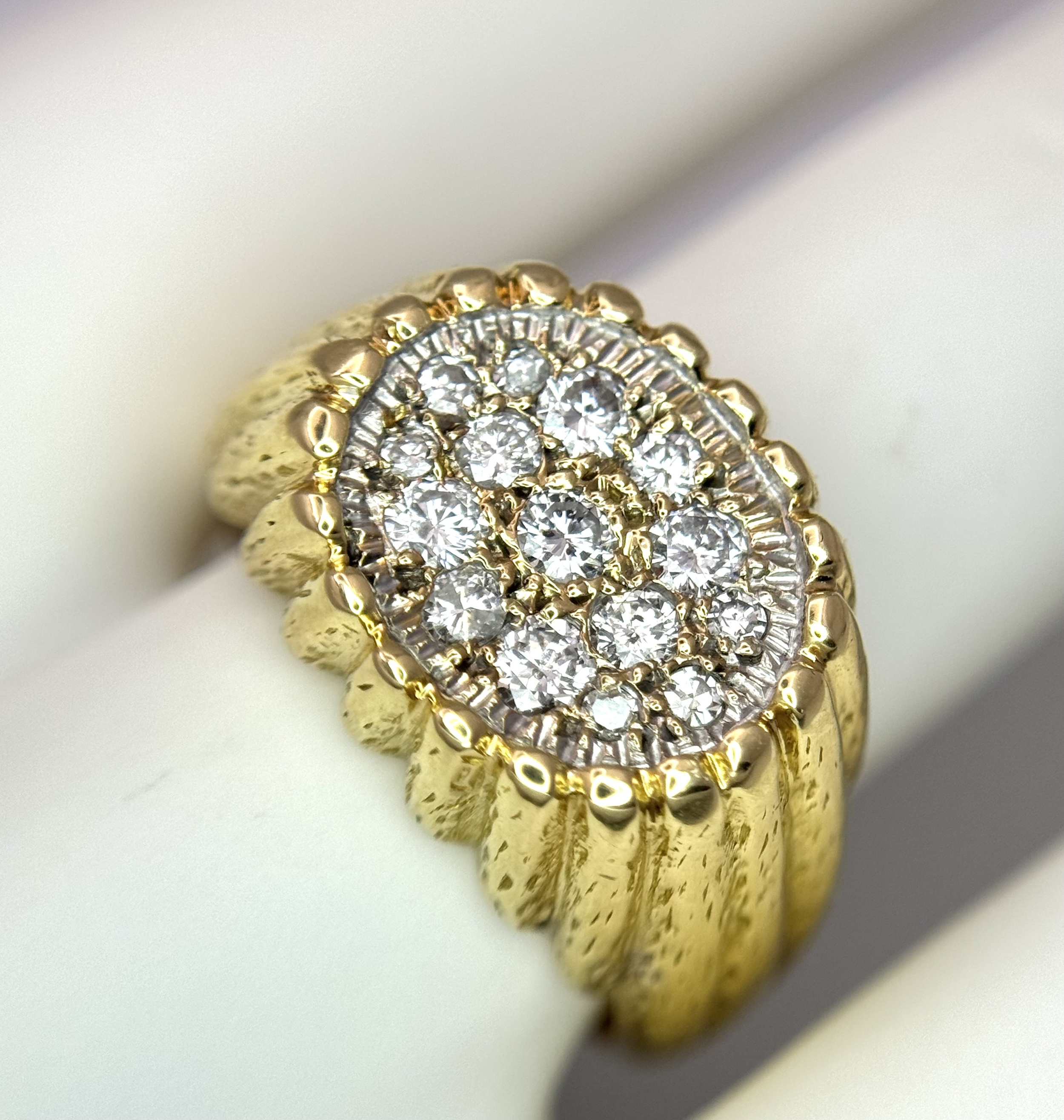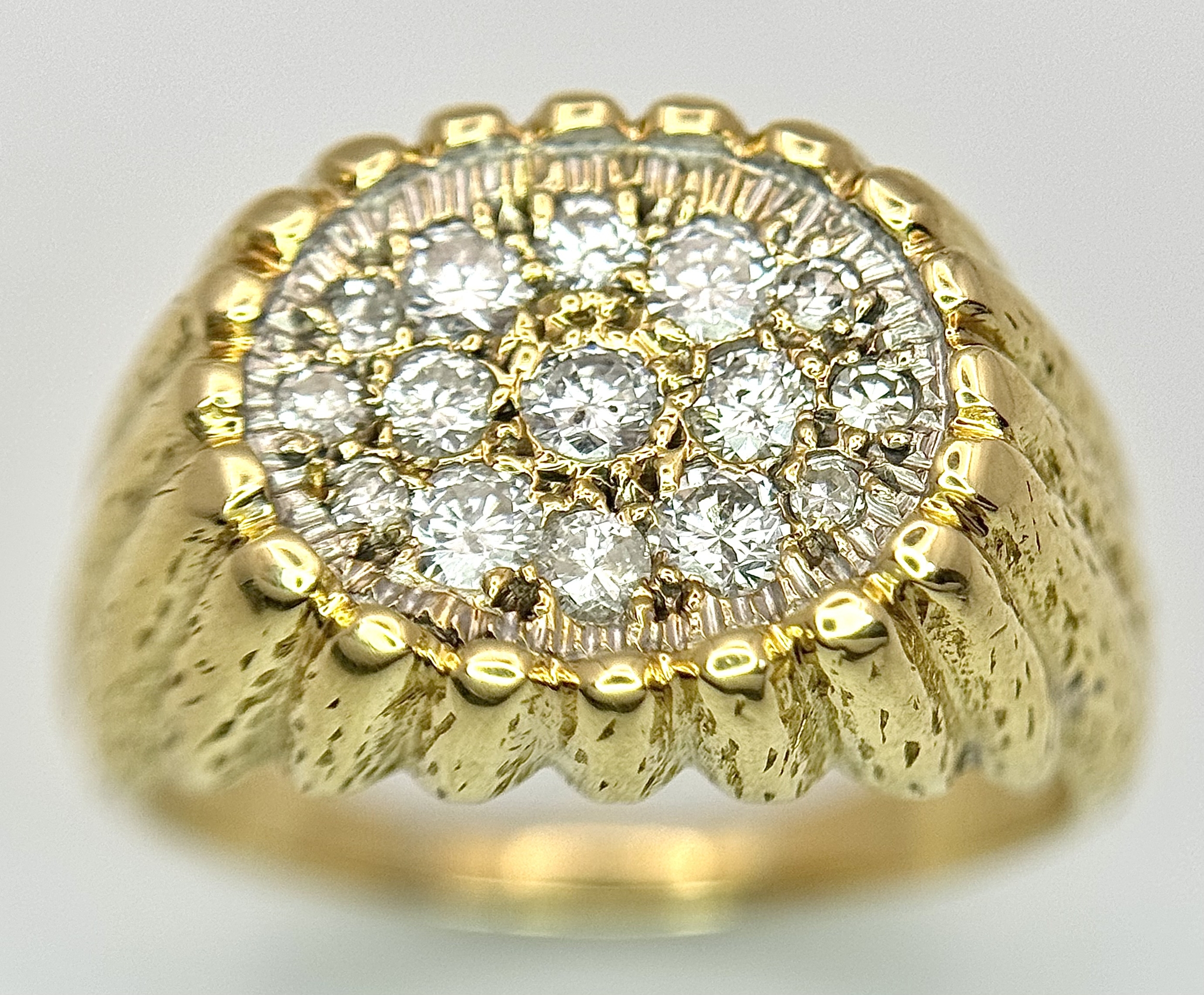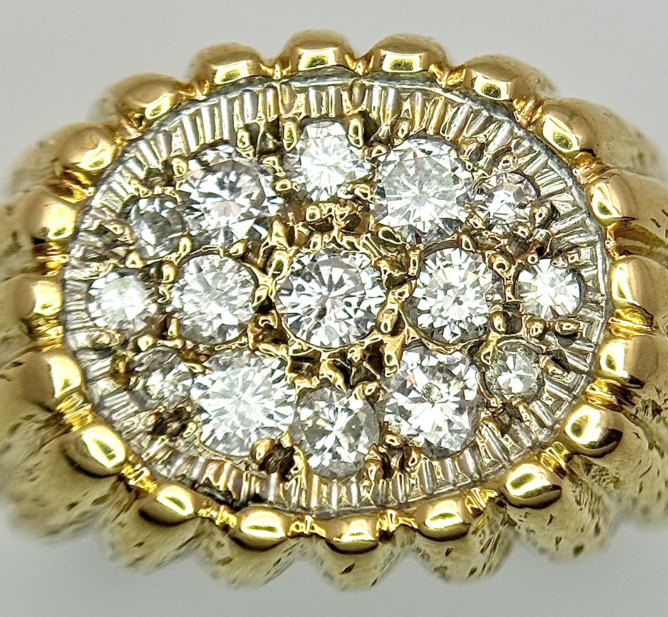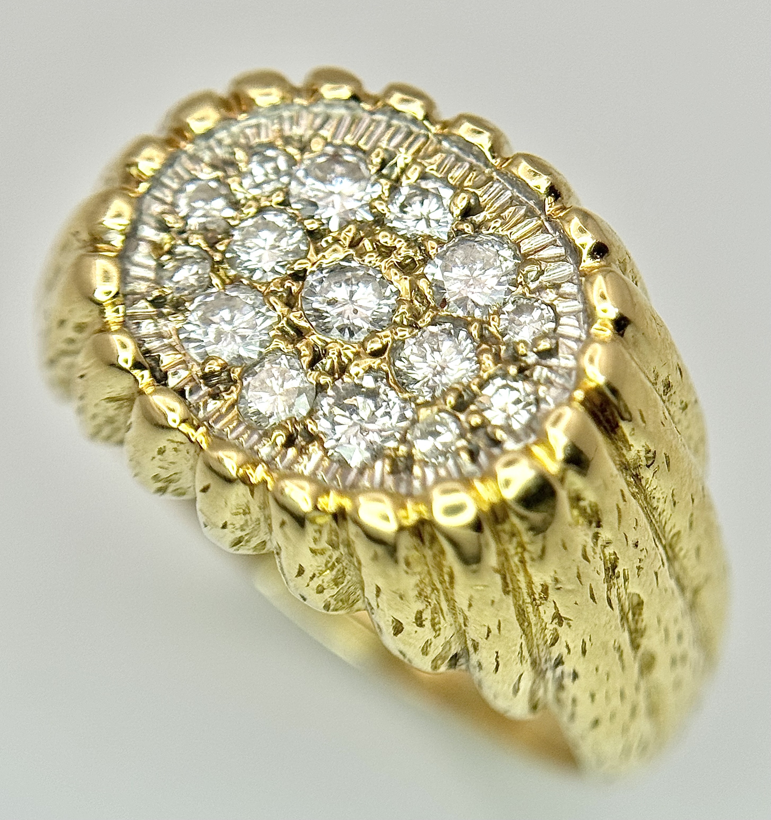 An 18K Diamond Pave Signet Ring. c.1ctw of round brilliant cut diamonds. Size R 1/2. 13.3g total weight.