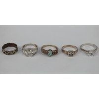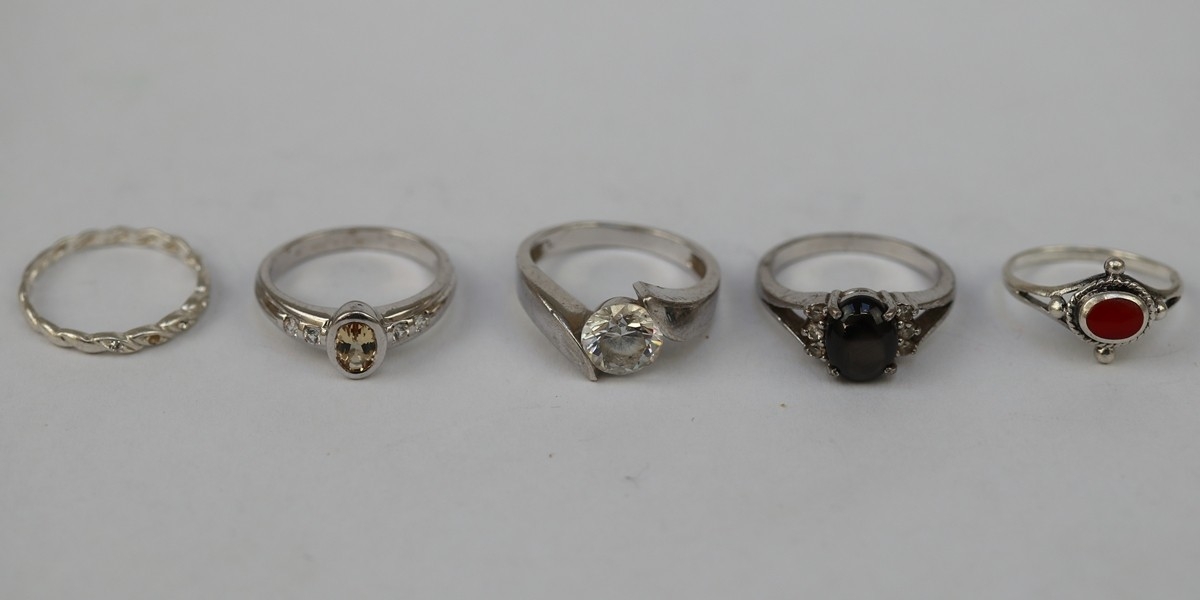 5 silver stone set rings