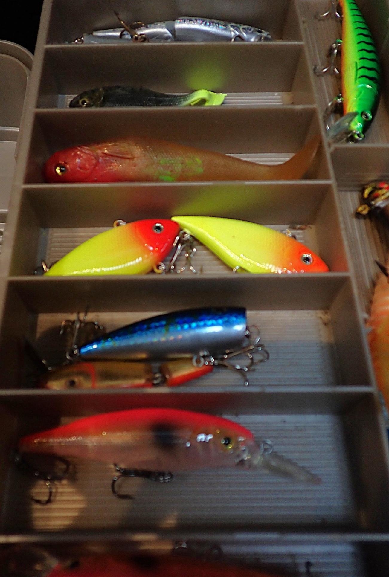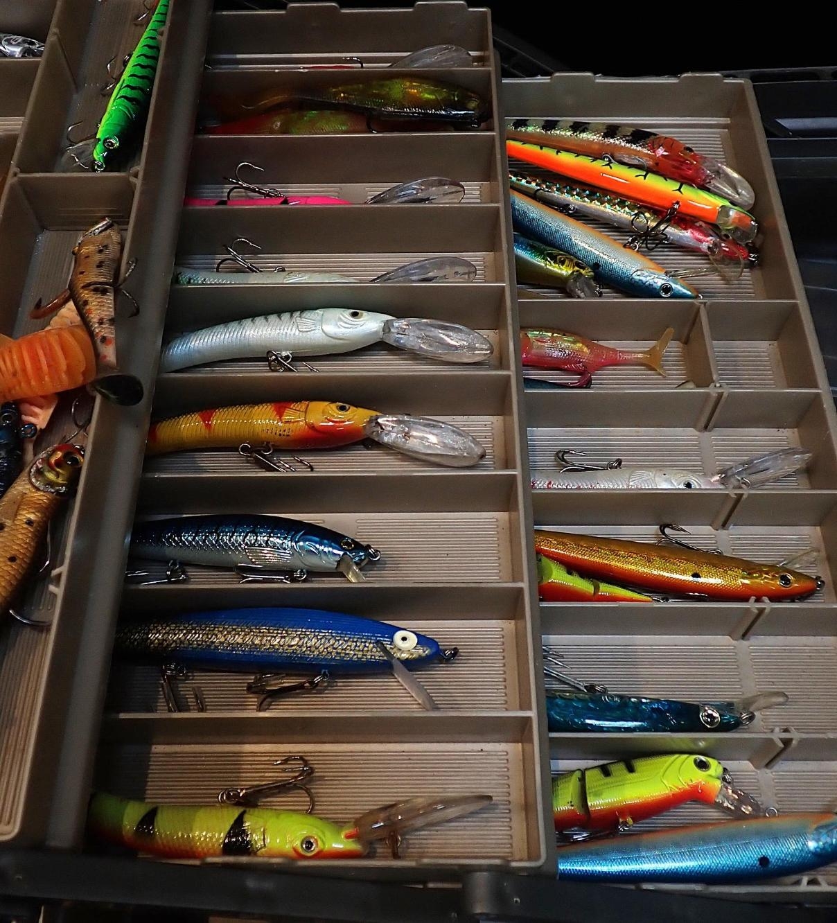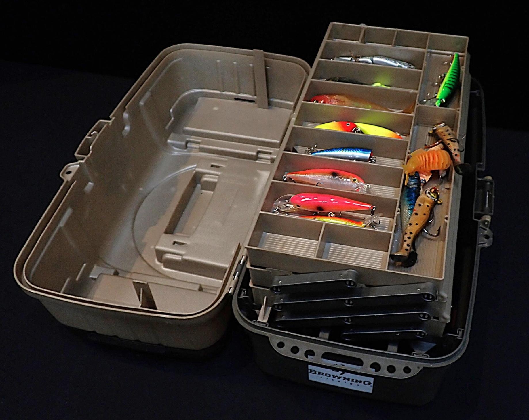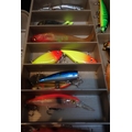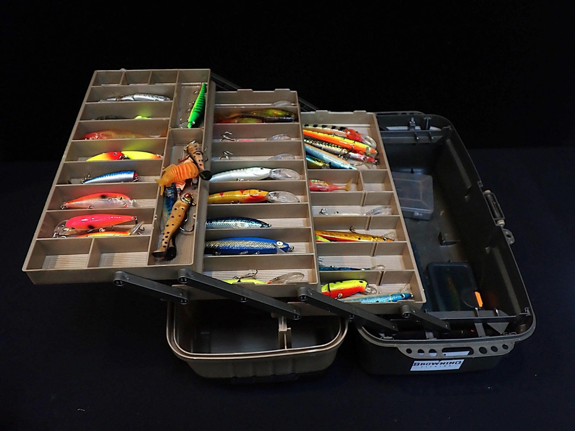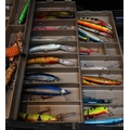 A FISHING TACKLE BOXcontaining various fishing lures and jigs (a lot)