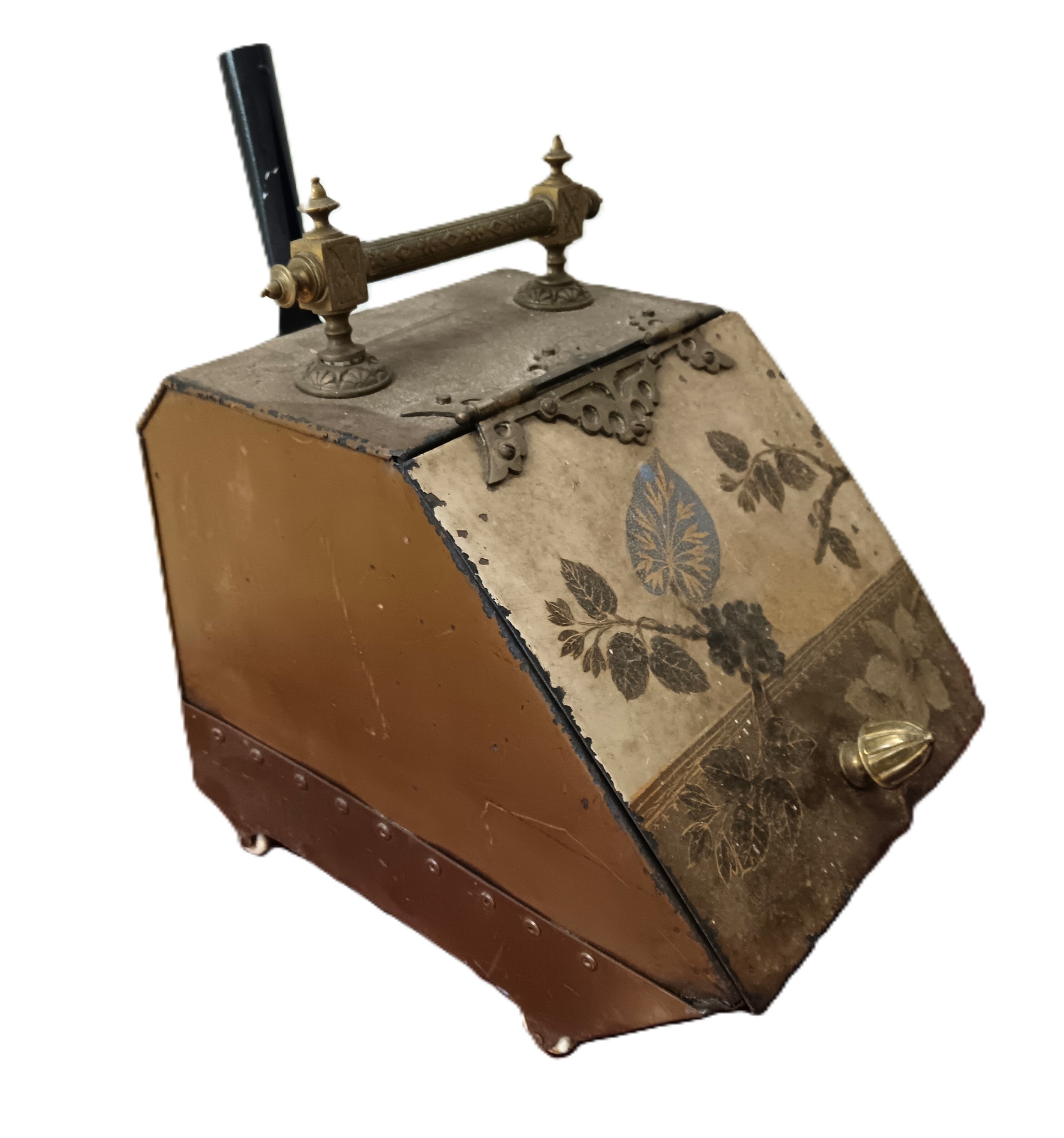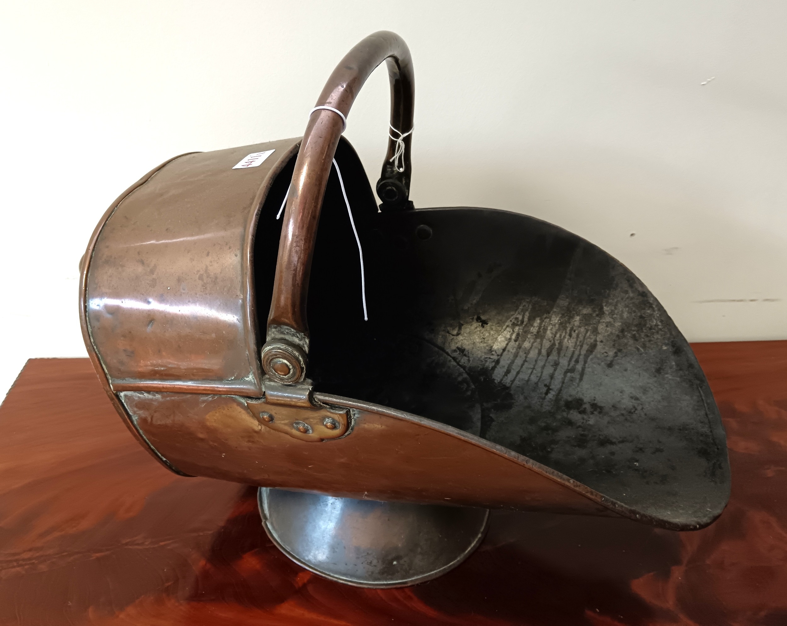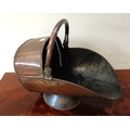 A copper helmet coal scuttle, together with another, each of traditional form with swing handles (2)
