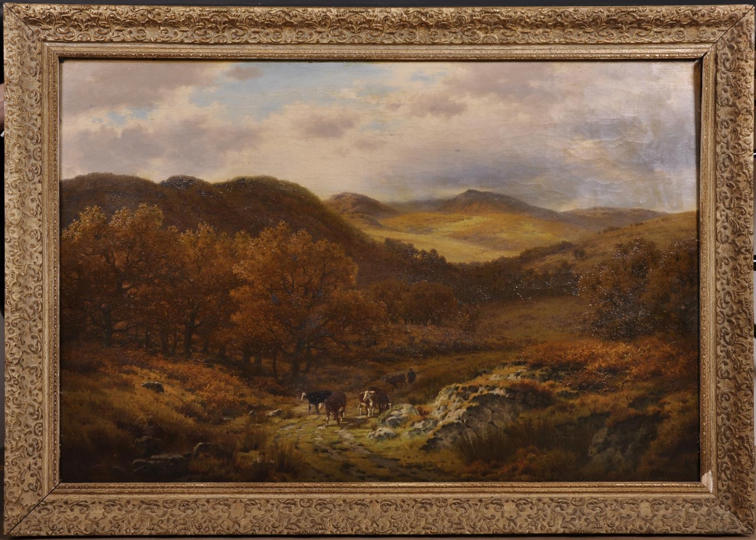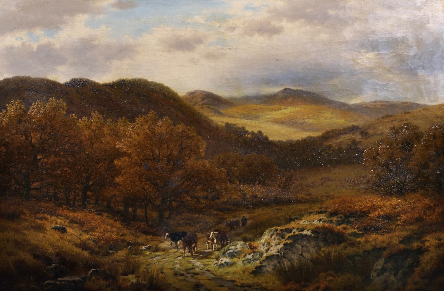 Henry Cheadle (1852-1910) British. A Highland Landscape, with Drover and Cattle, Oil on Canvas, Signed and Dated ’86, 24” x 36” (61 x 91.5cm)