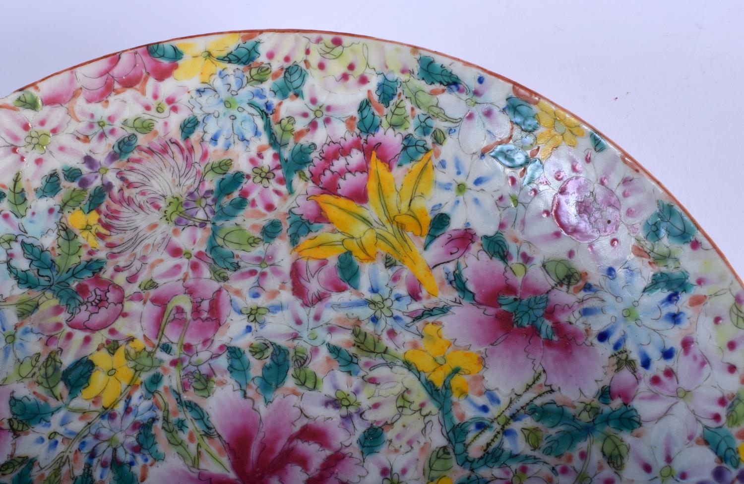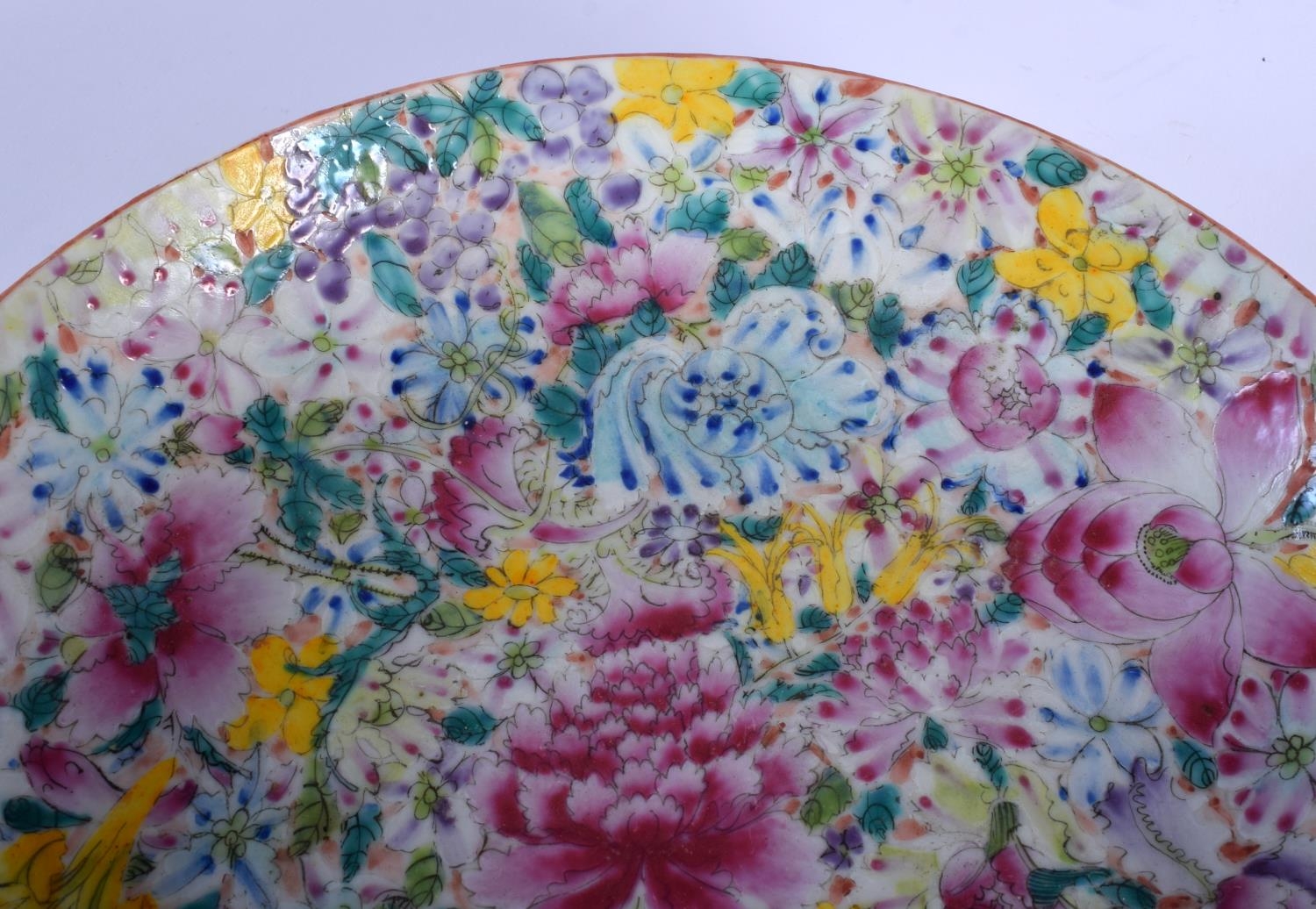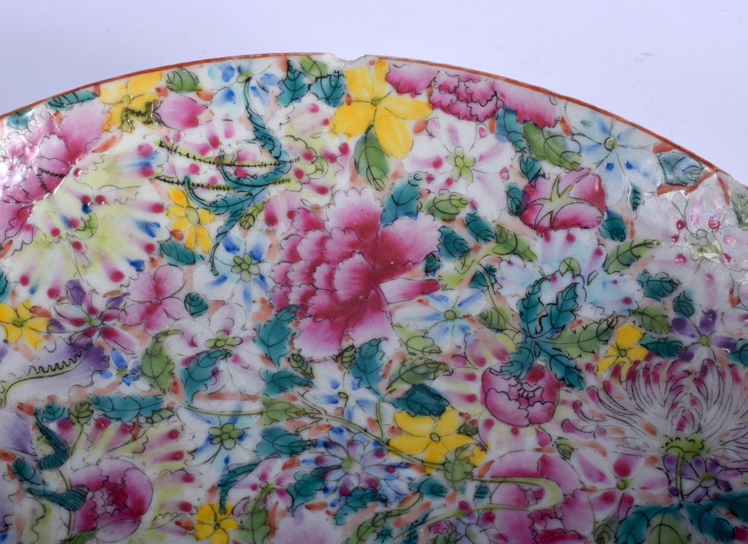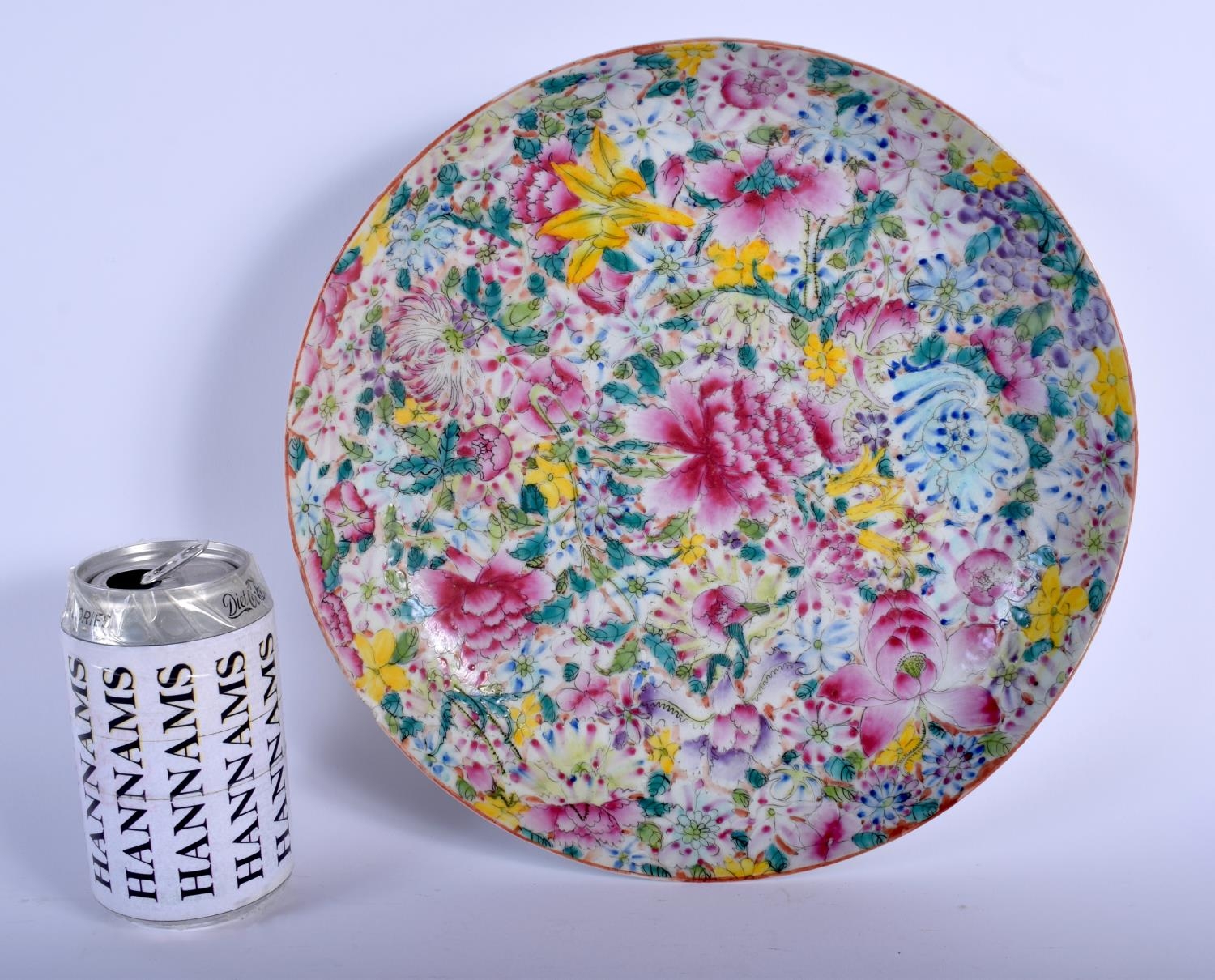 AN EARLY 20TH CENTURY CHINESE FAMILLE ROSE MILLIFIORE PORCELAIN DISH late Qing/Republic, painted with flowers. 27 cm diameter.