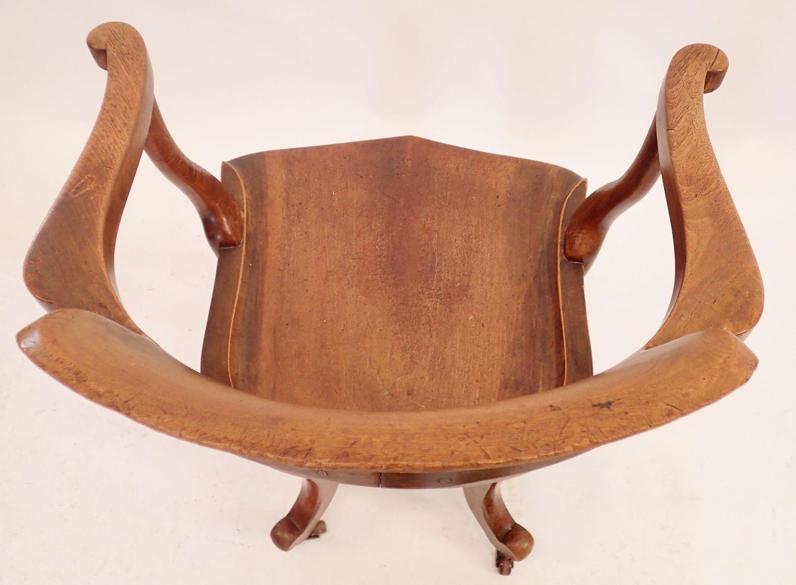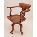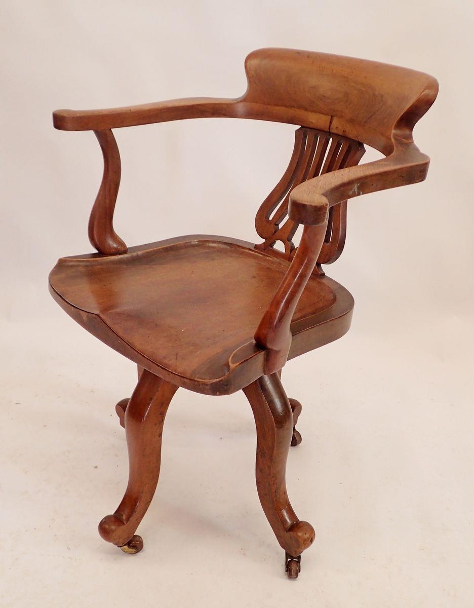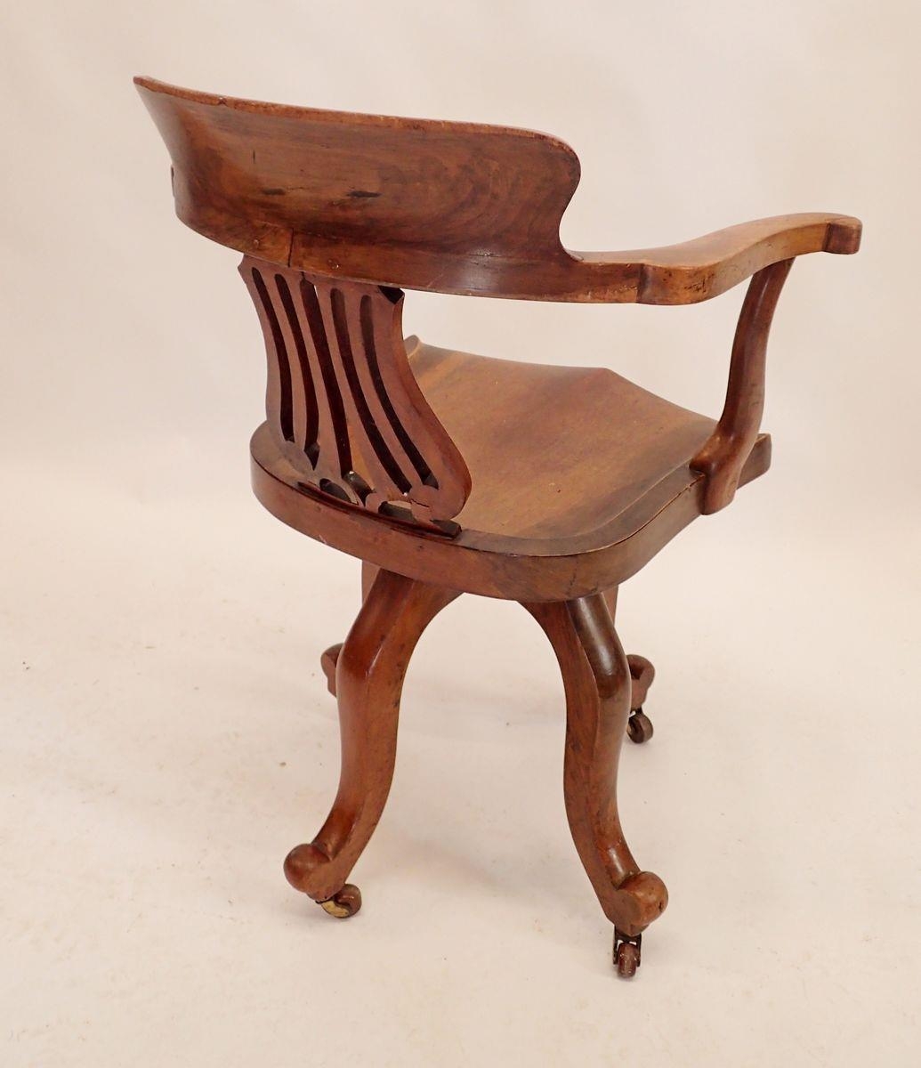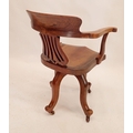 An Edwardian swivel mahogany desk chair with pierced vase splat