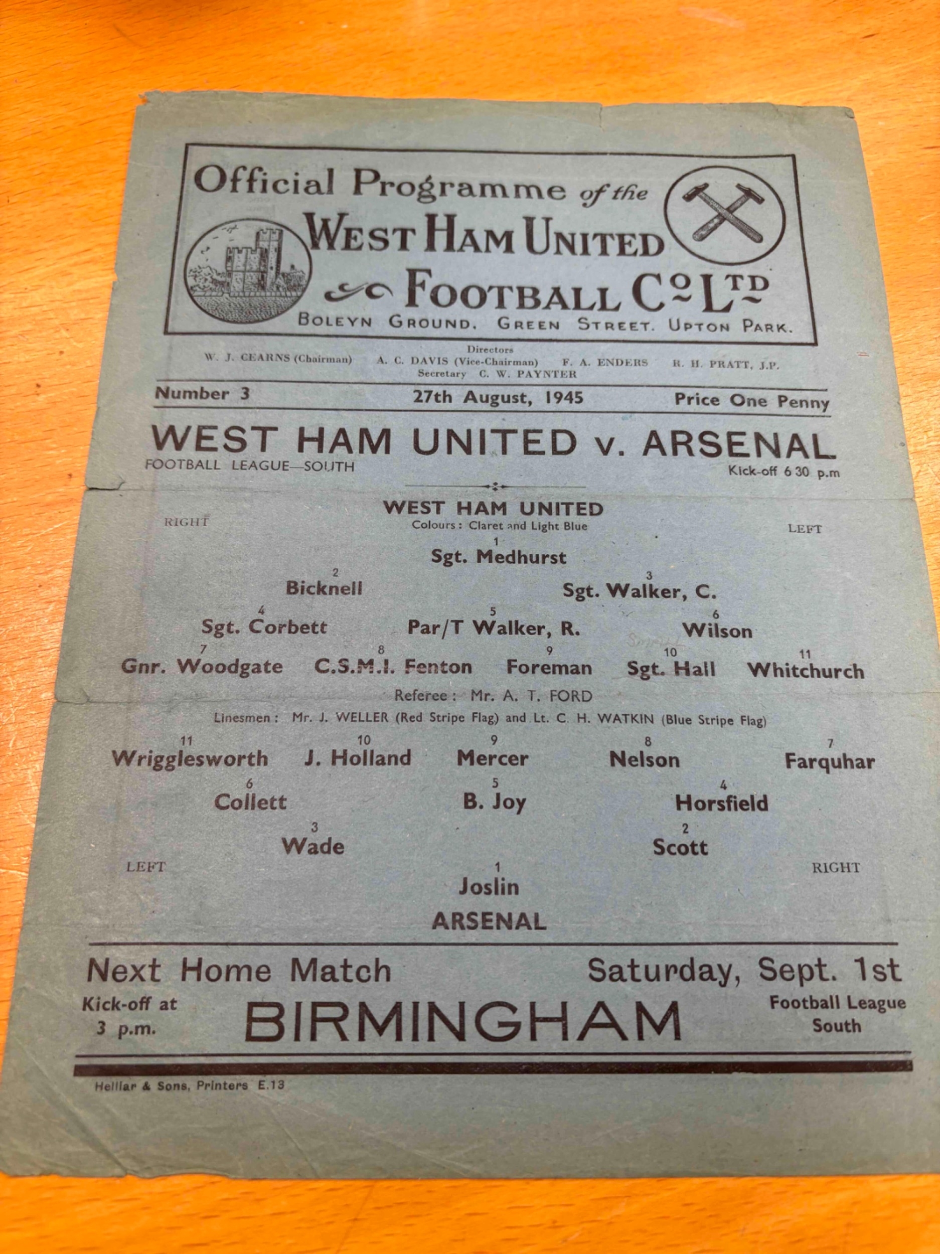 1945/46 West Ham United v Arsenal, S/S slight tear. Good condition
