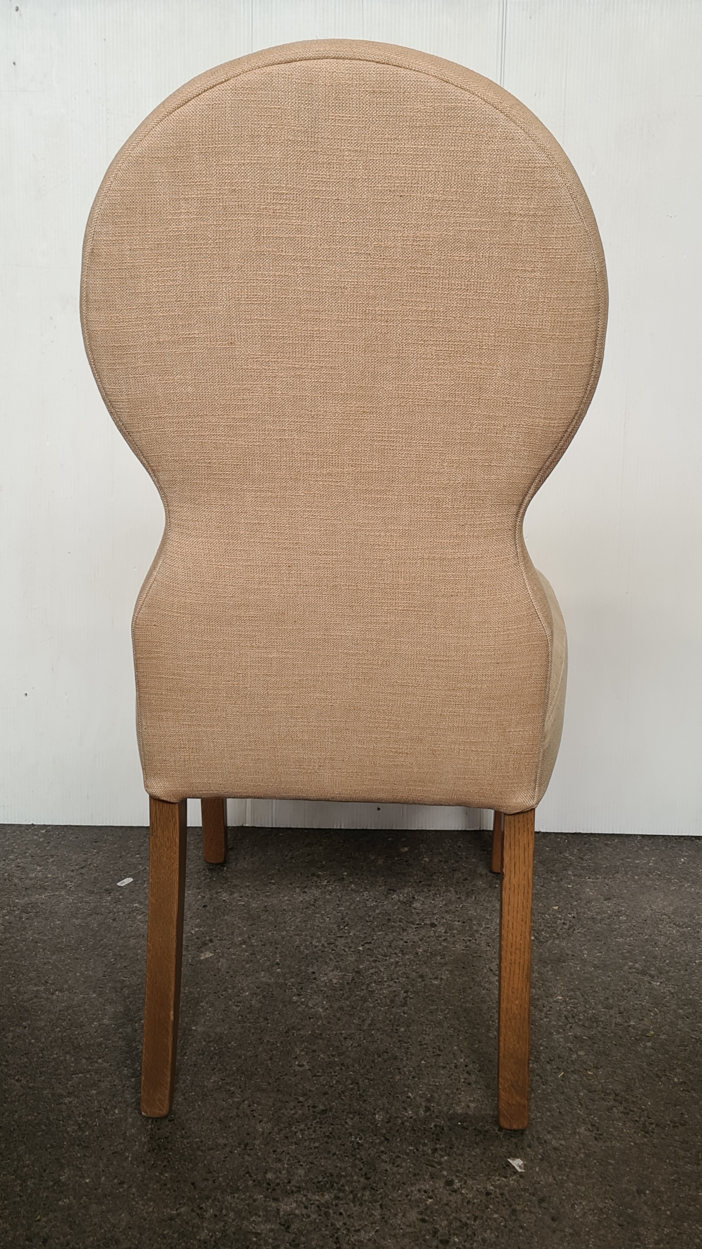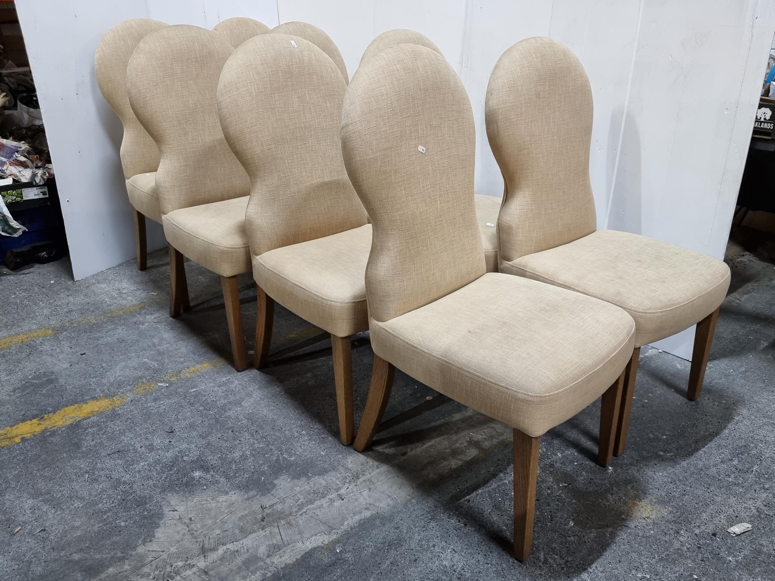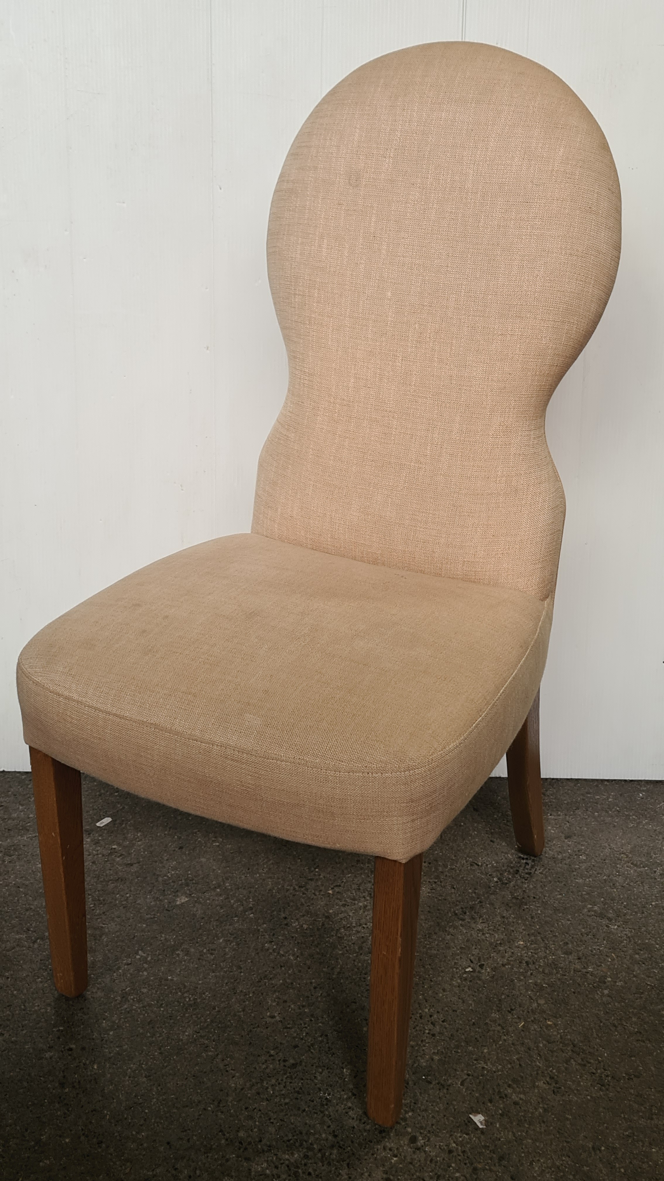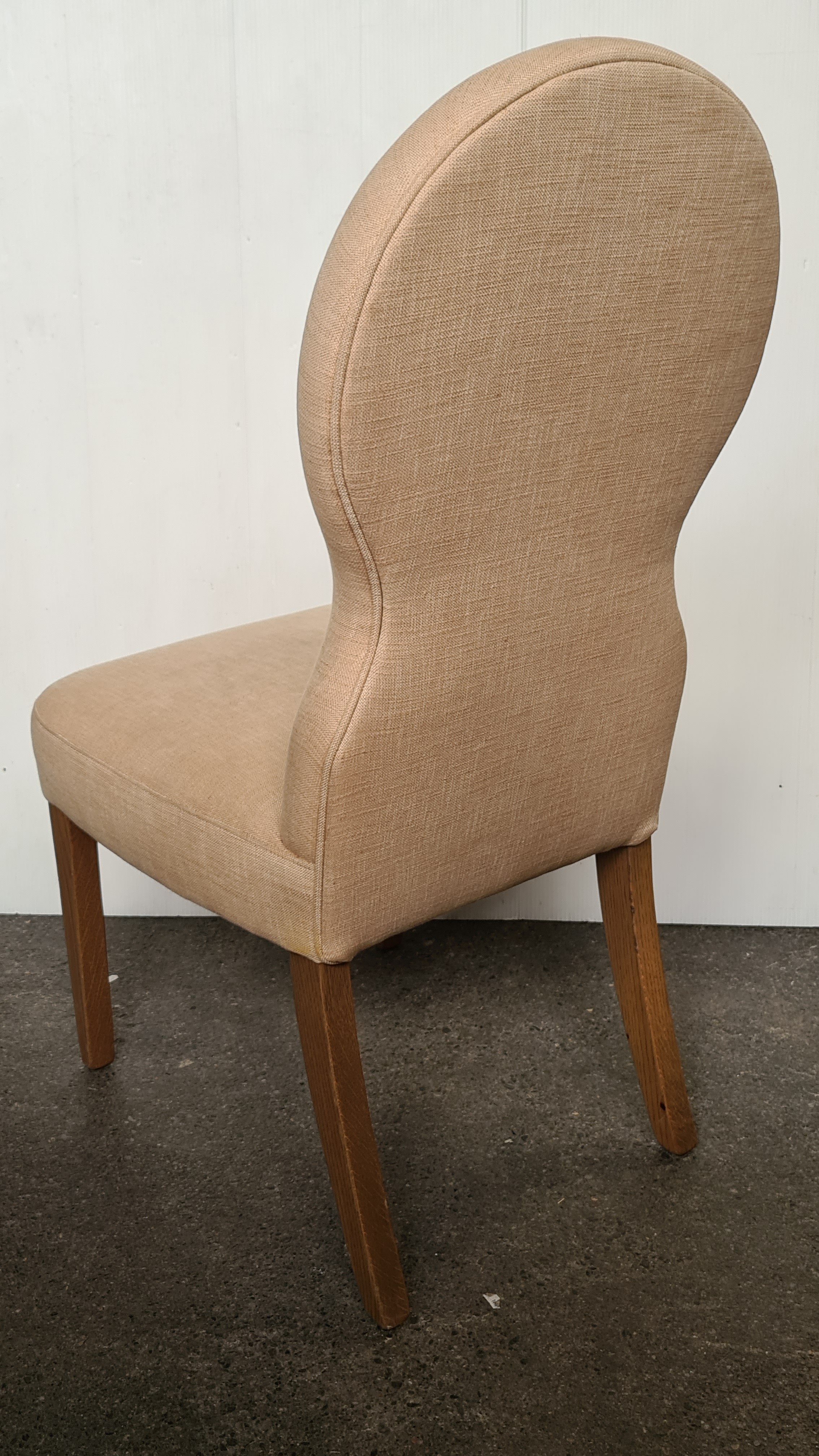 Star Lot : Eight Super cushioned spoon back dining chairs upholstered in a good quality sand coloured fabric. These chairs were from a fabulous house in The K club in Kildare. Very high quality. Eight of them.