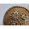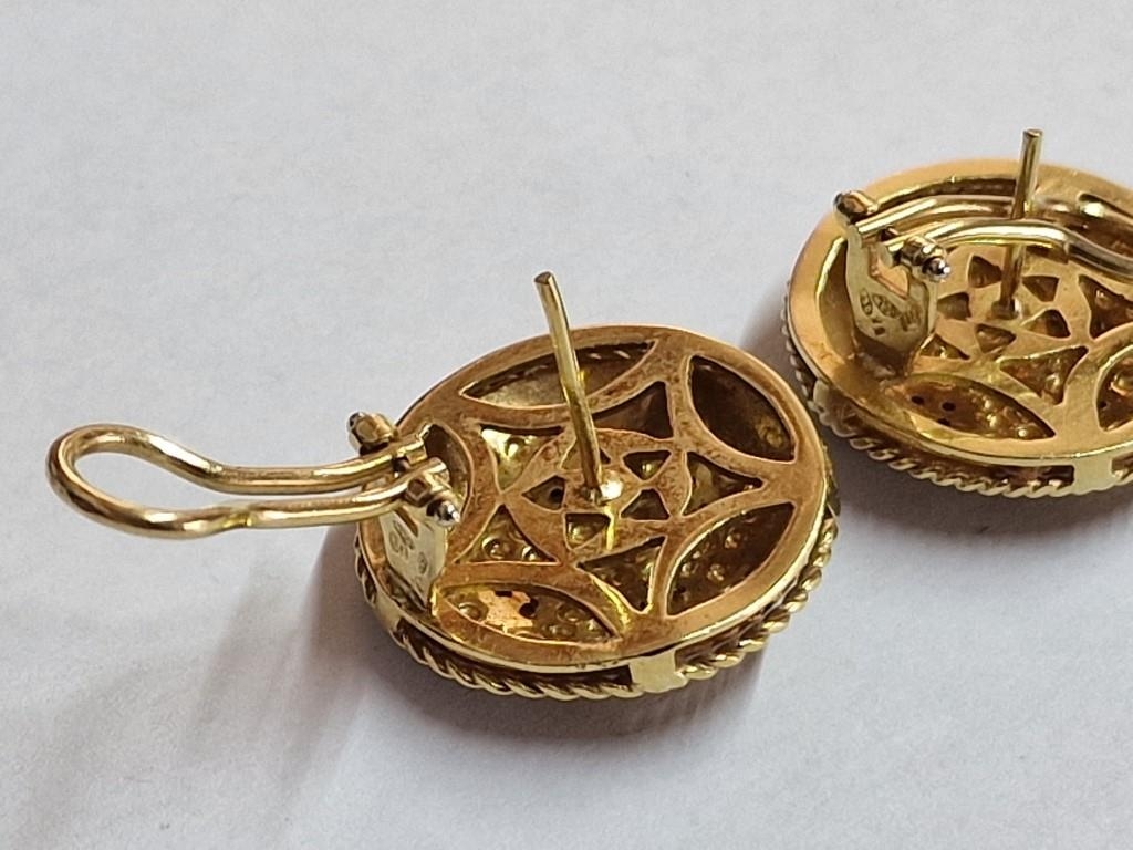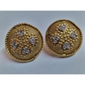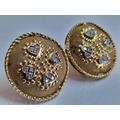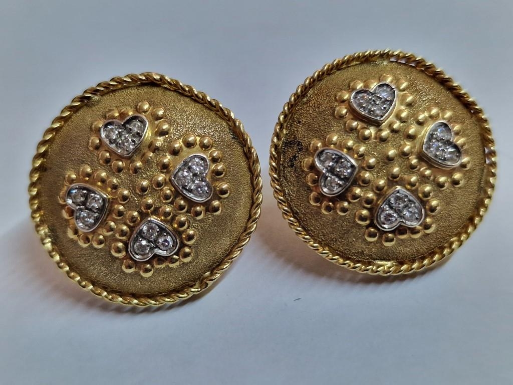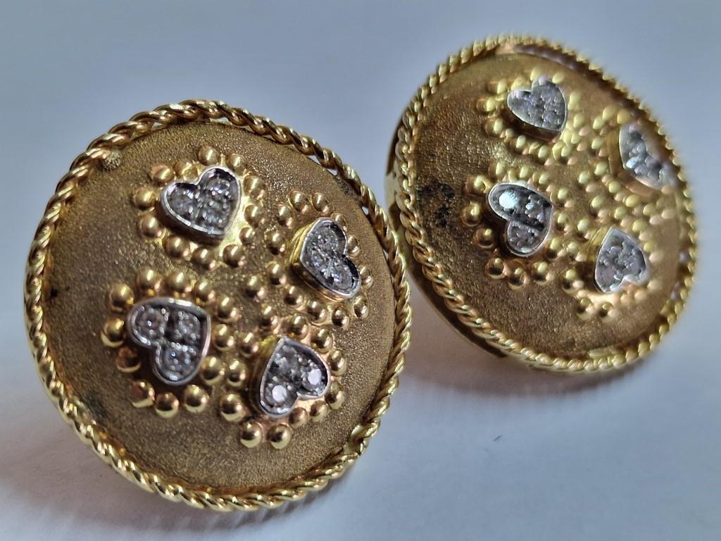 Pair of 18ct Gold Round Concave Earrings, Each Set with 4 x White Gold Heart Shapes & 12 Diamonds, with Rope Effect Rim, (Approx. Ø: 22mm, Total Weight 12.9g)