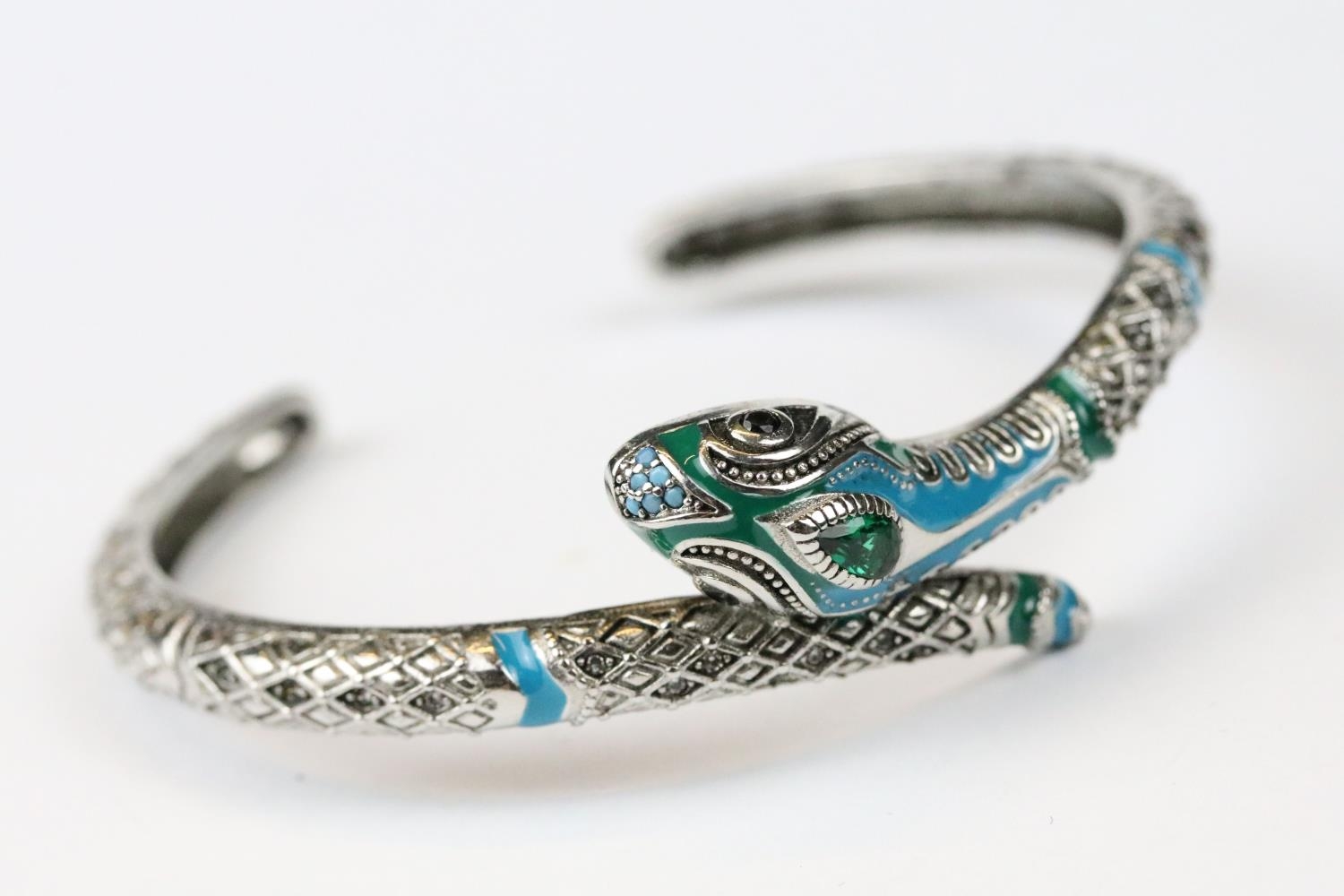 A 925 sterling silver bangle in the form of a snake, marked 925 to the verso.