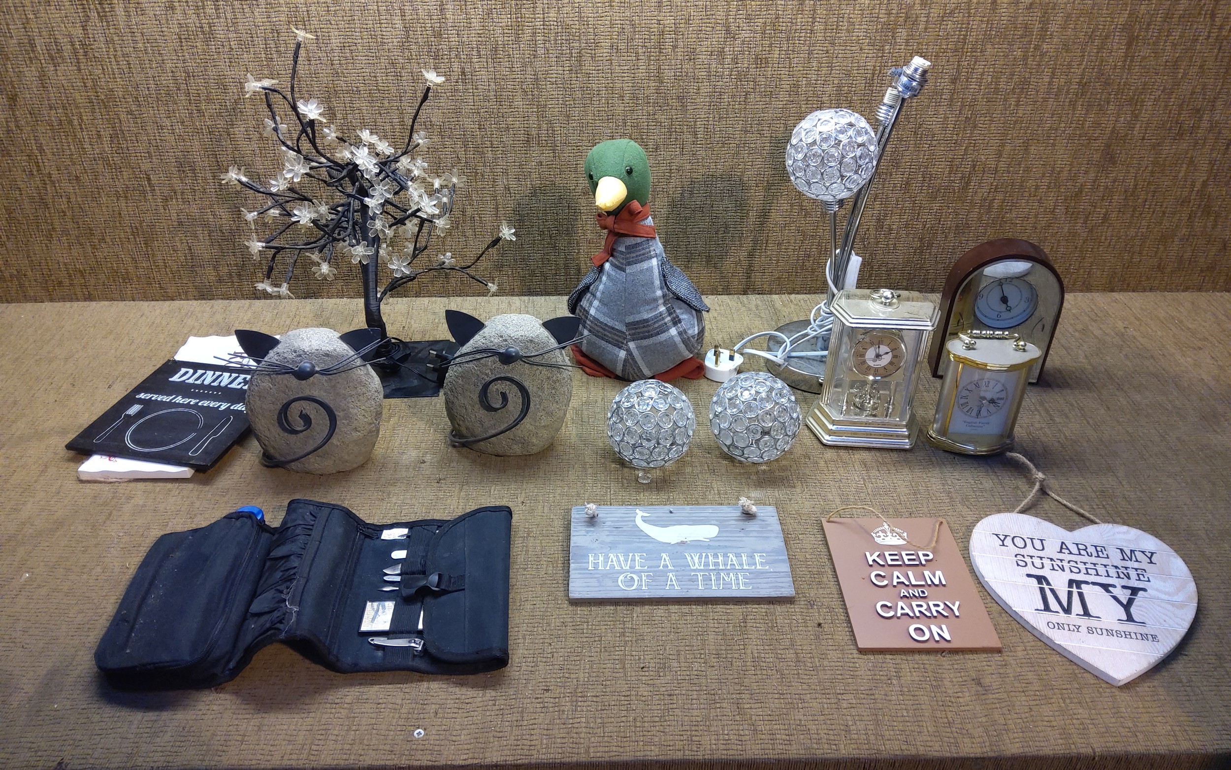 Collection of household lamps and ornamental items.