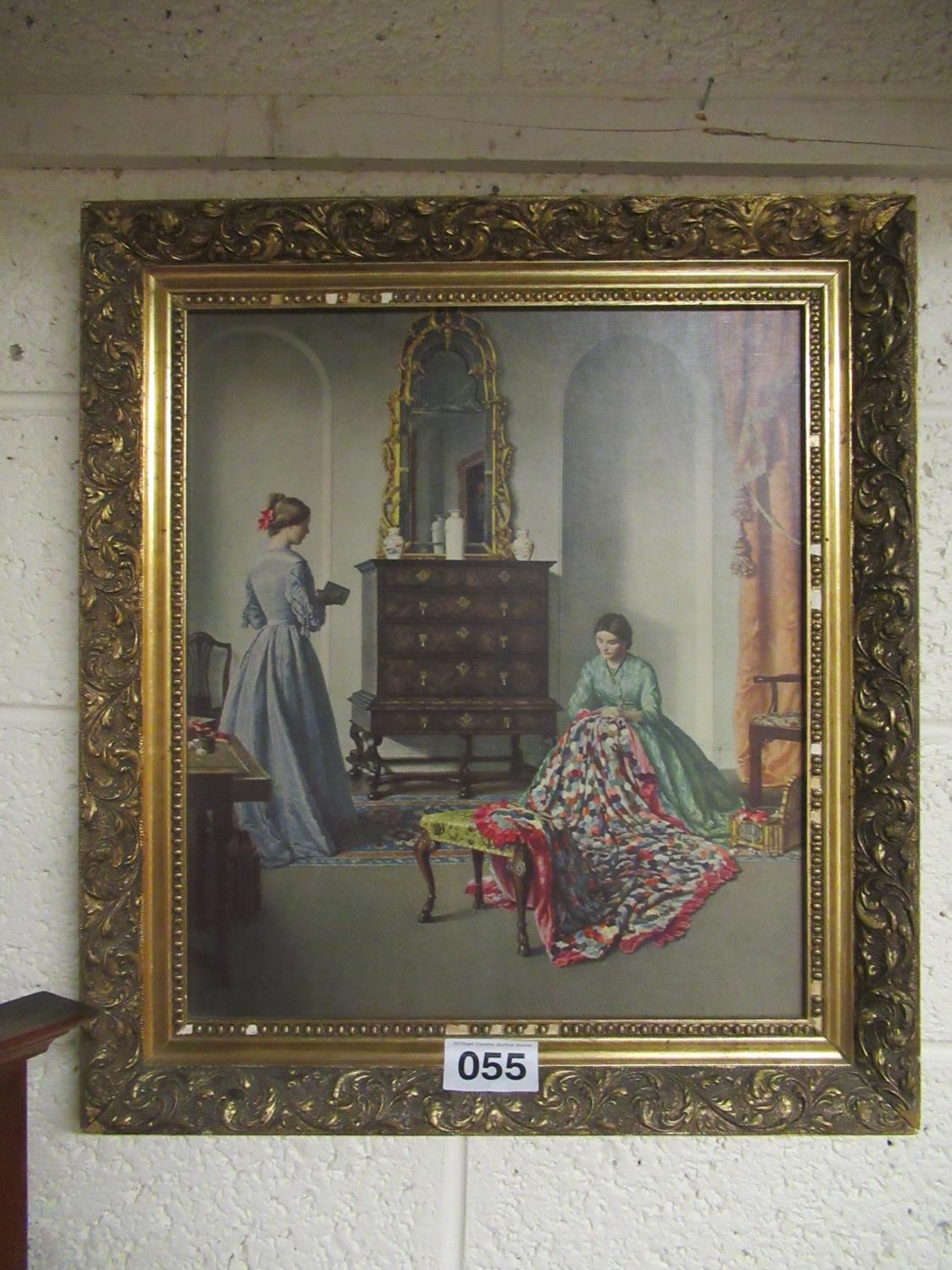 Coloured print in gilt frame. 56cm x 62cm.