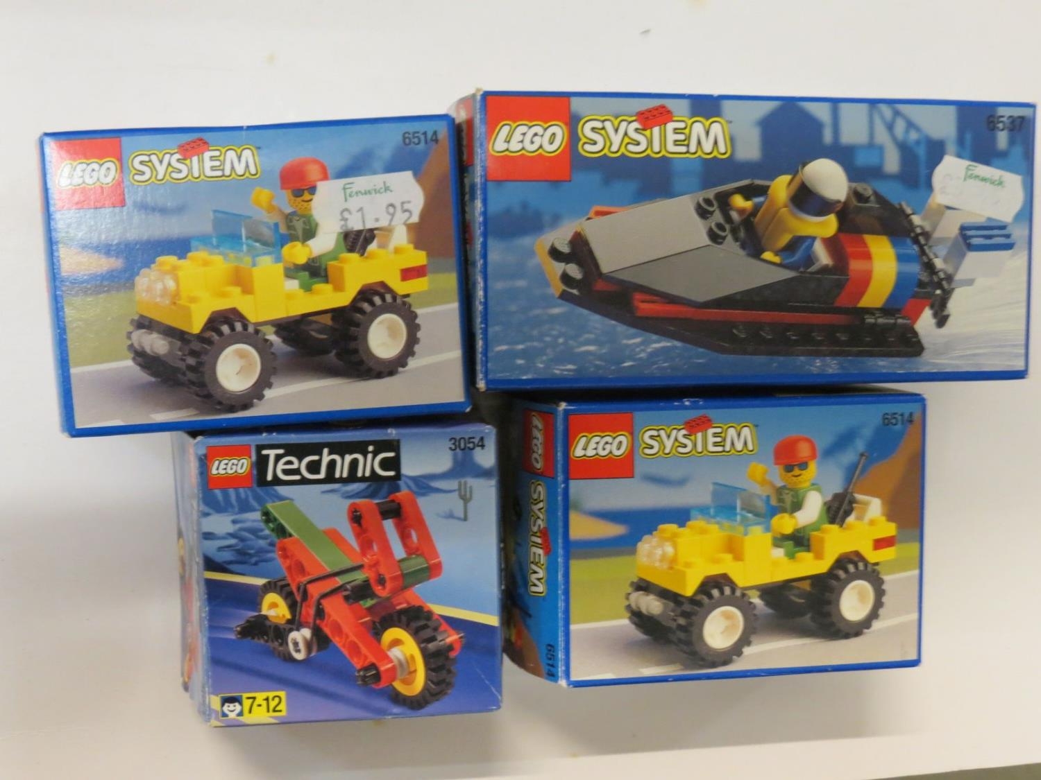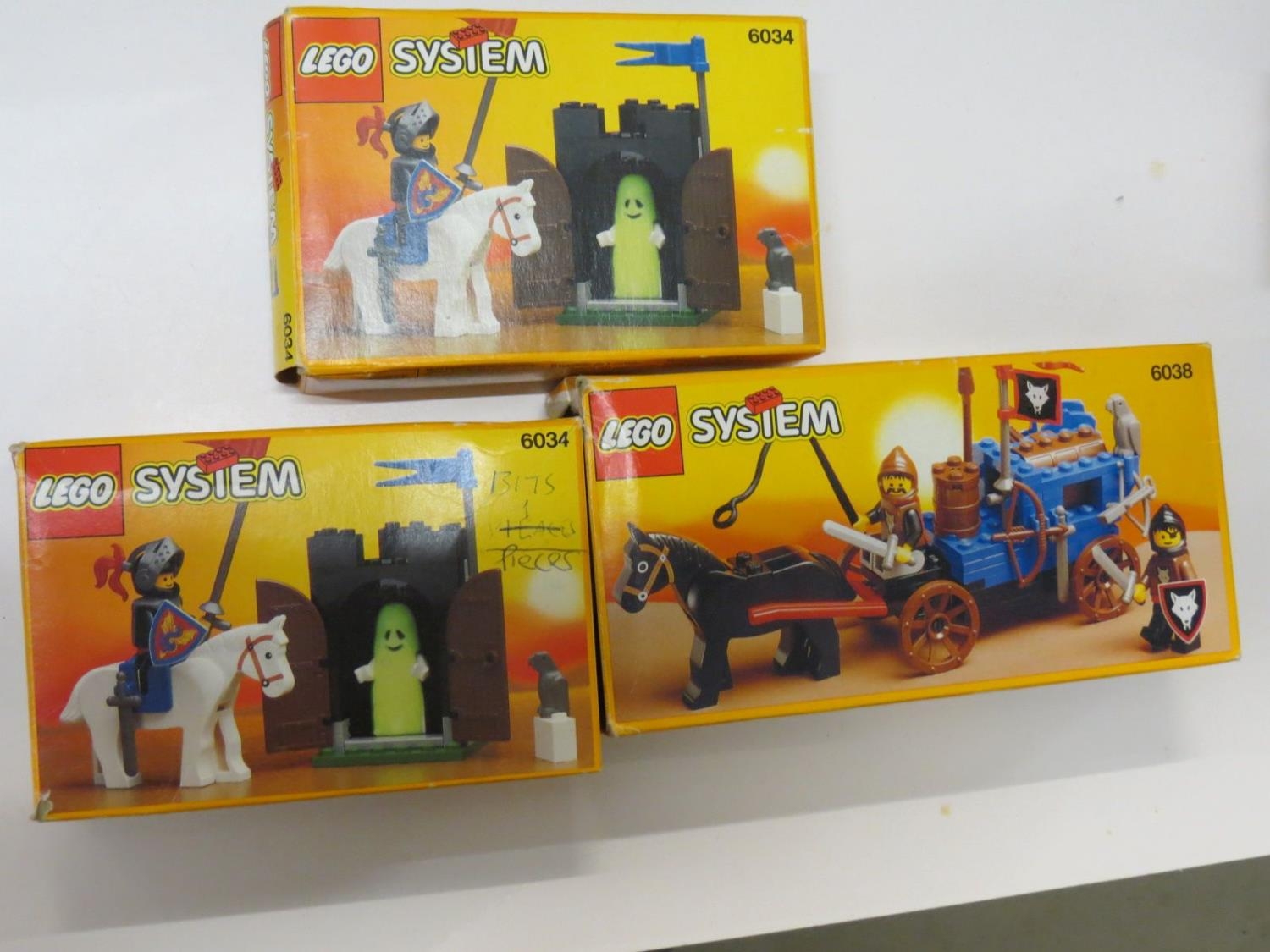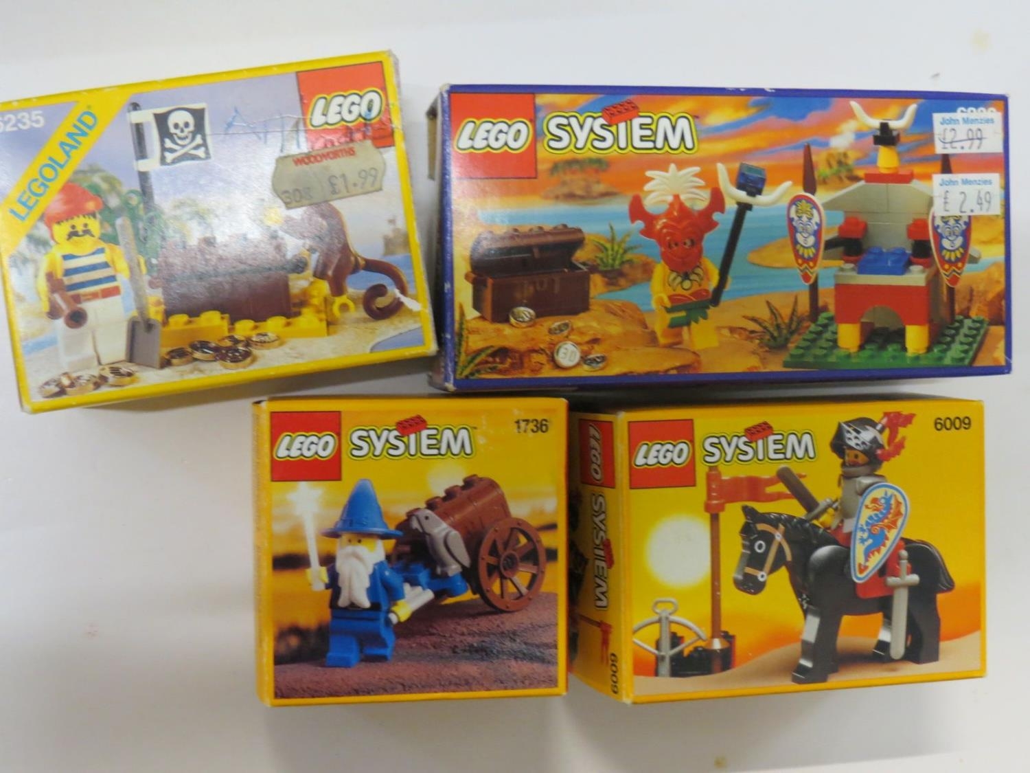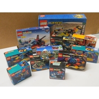 11 x Boxed Lego sets to include 1736 Wizard's Cart, 3054 Technic Motorcycle, 6009 Black Knight, 2 x 6034 Black Monarch's Ghosts, 6038 Wolfpack Renegades, 6235 Buried Treasure, 6236 King Kahuka, 2 x 6514 Trail Ranger & 6537 Hydro Racer. All appearing complete but unchecked.