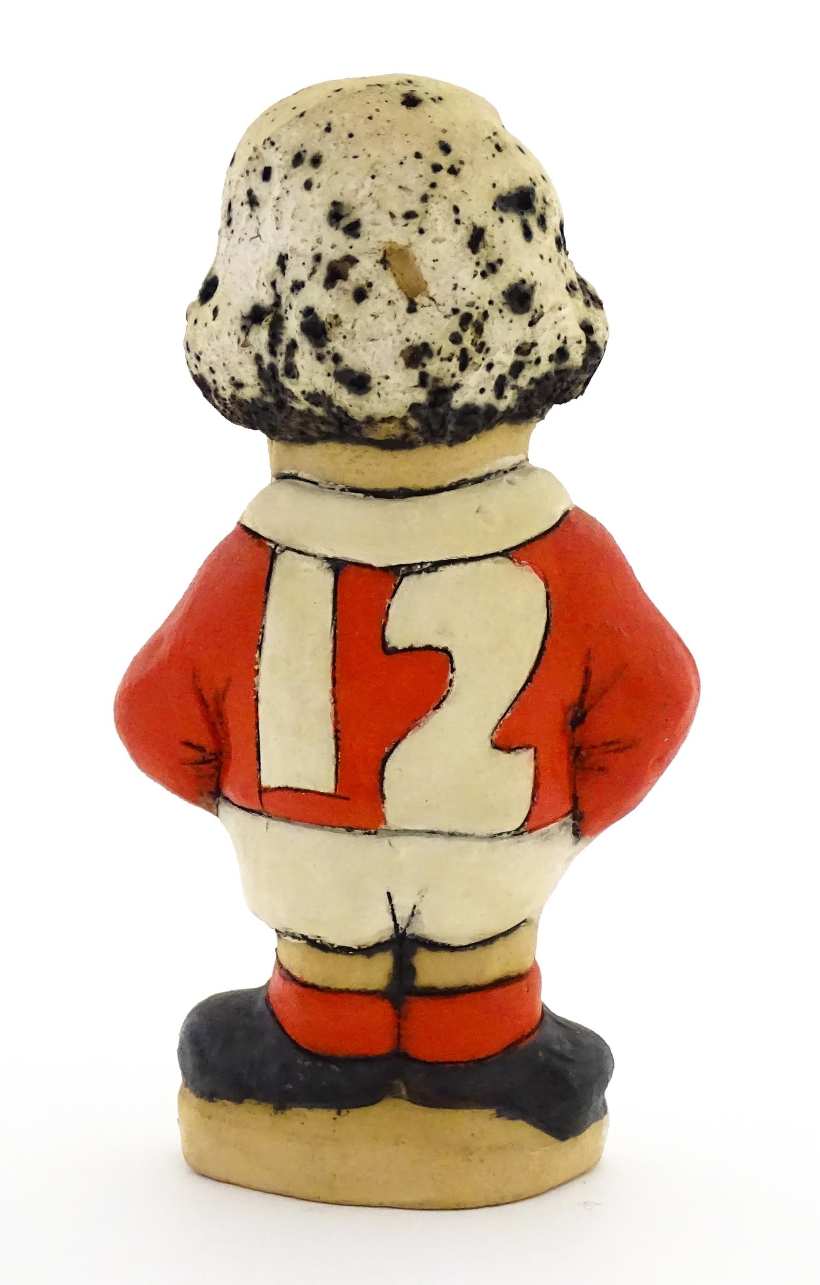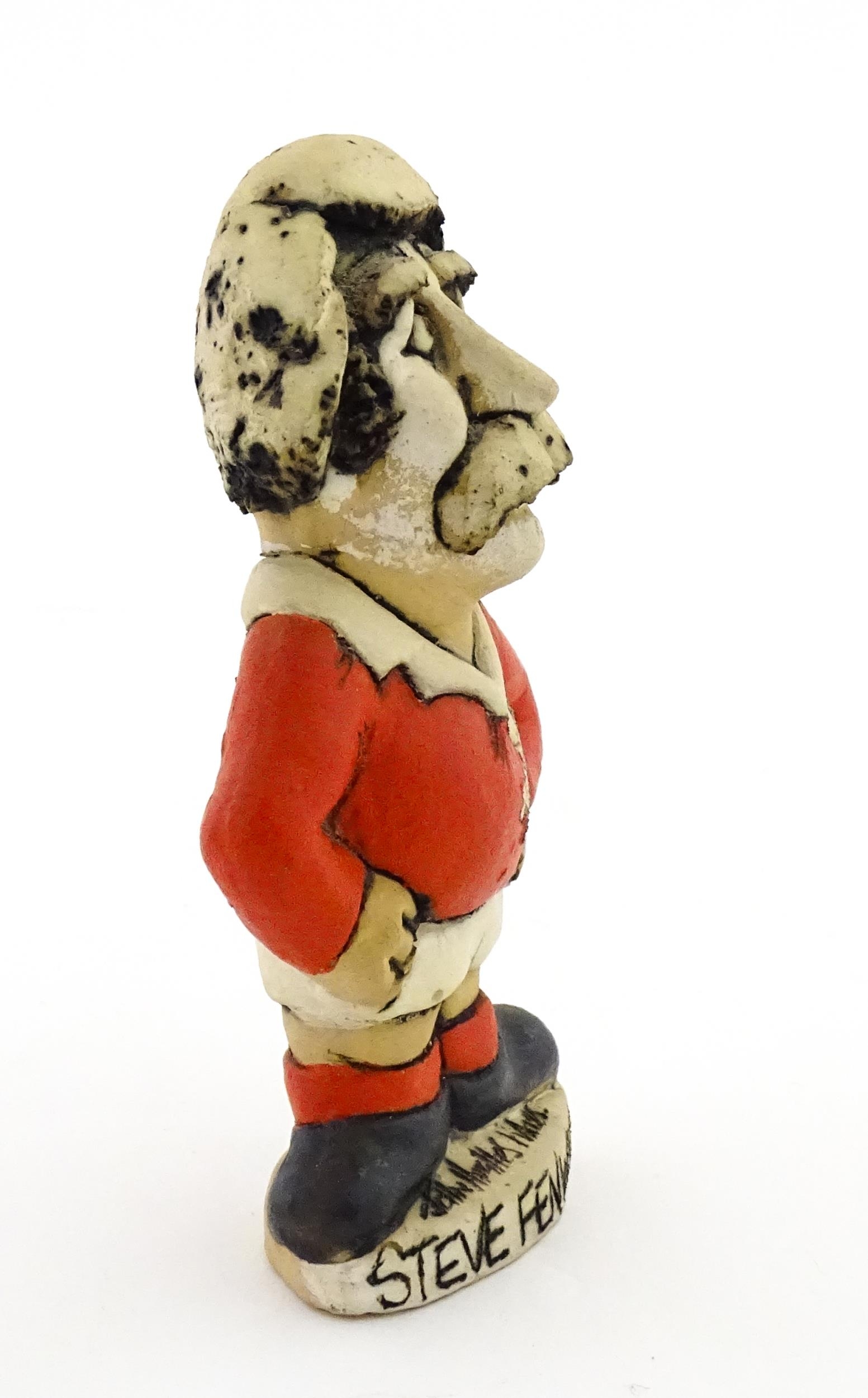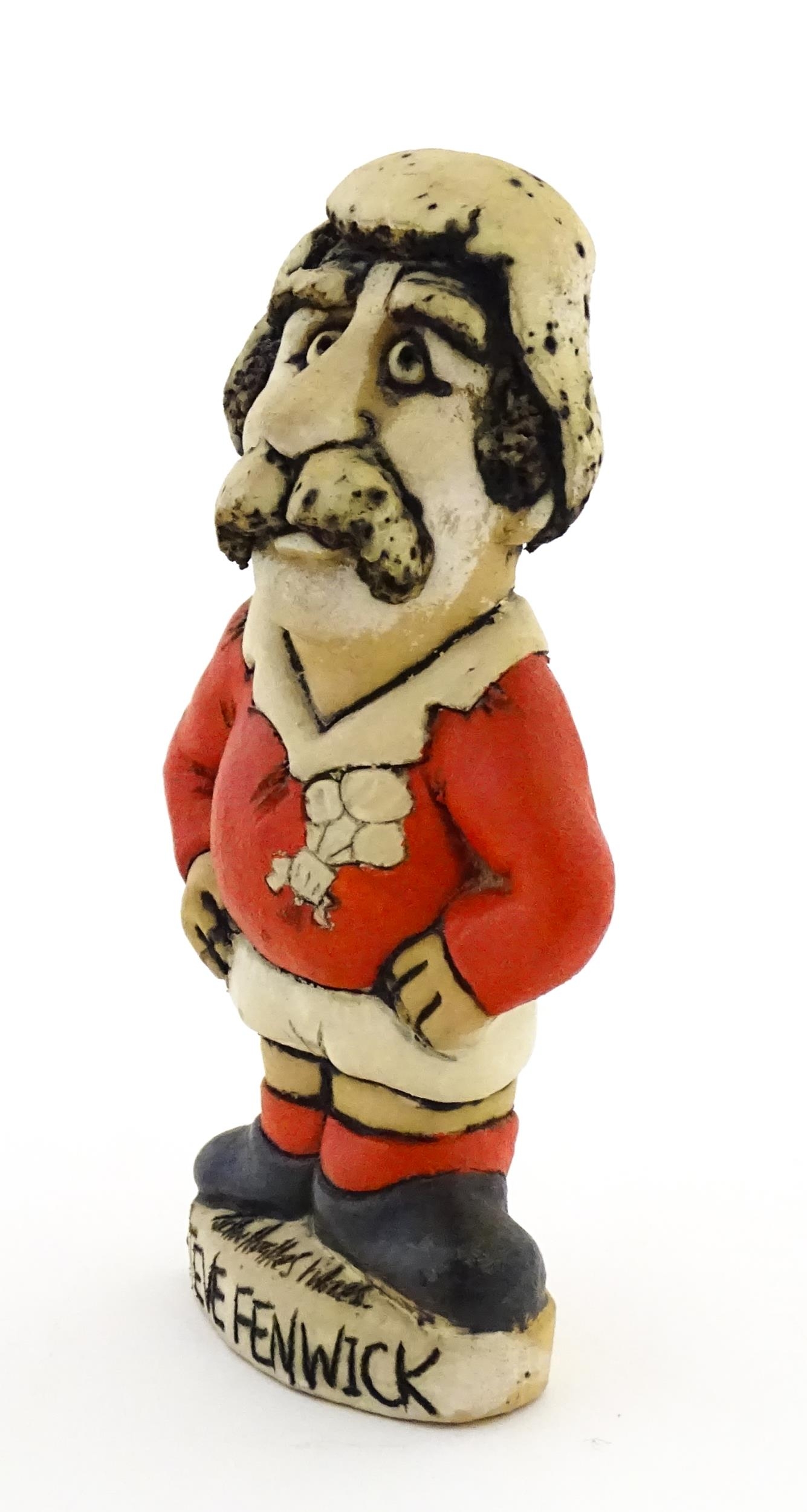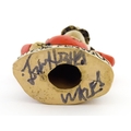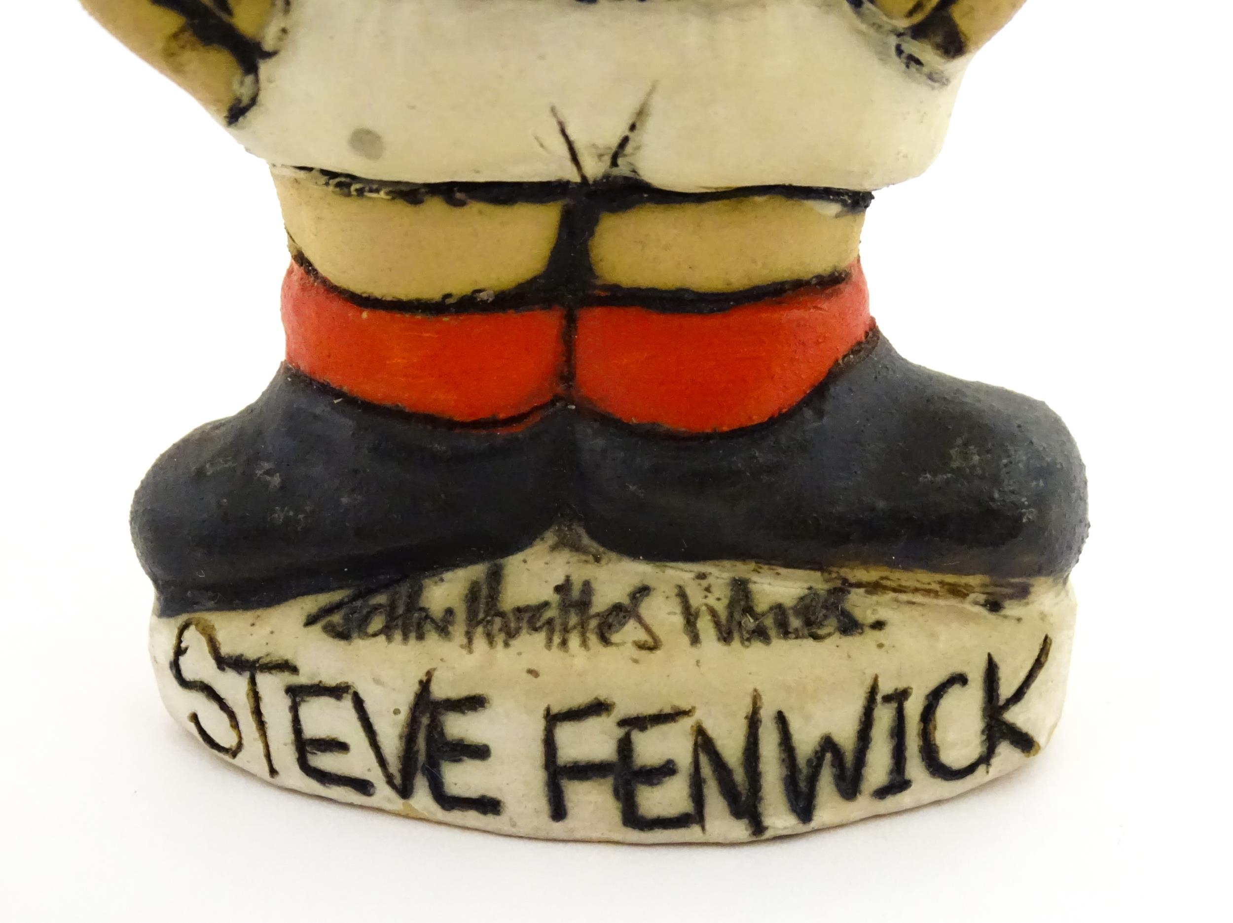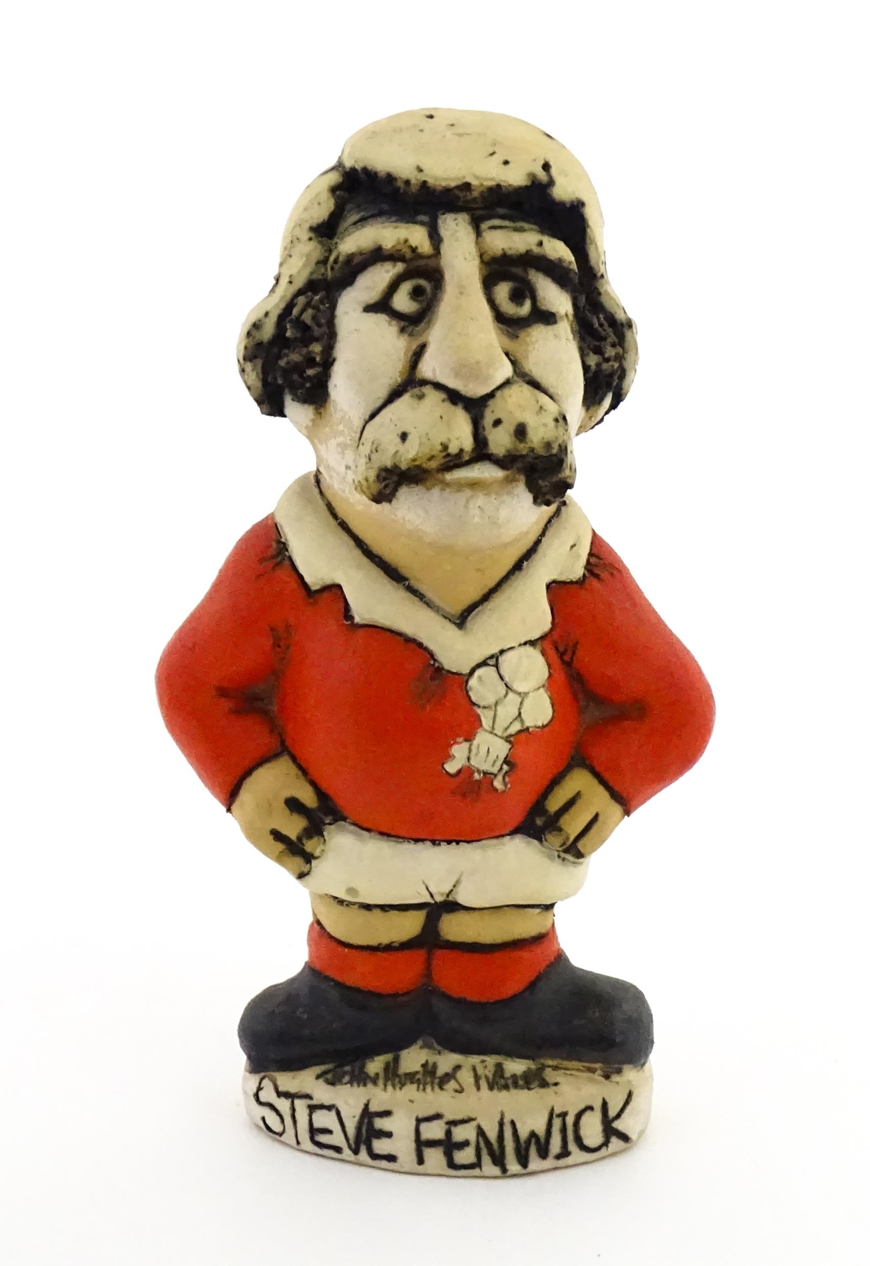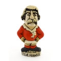 A John Hughes pottery Grogg of Steve Fenwick in a Welsh red rugby jersey. Signed under. Approx. 6" high